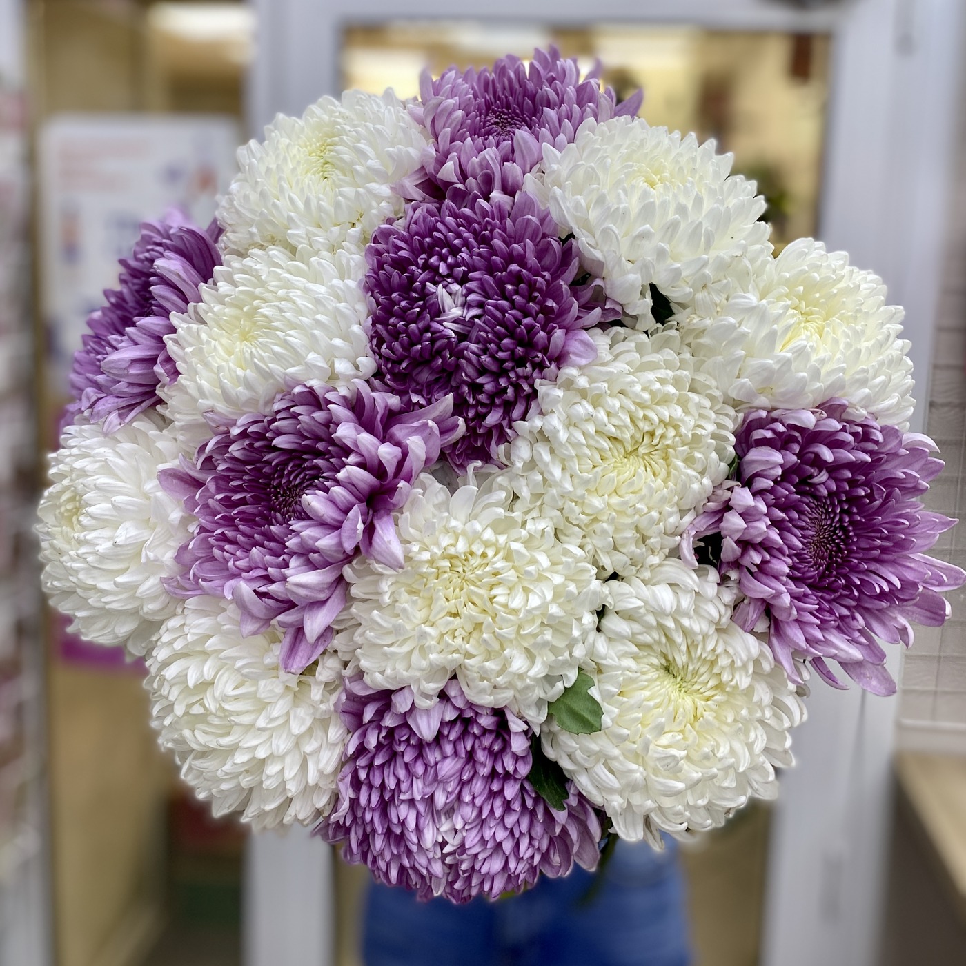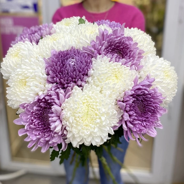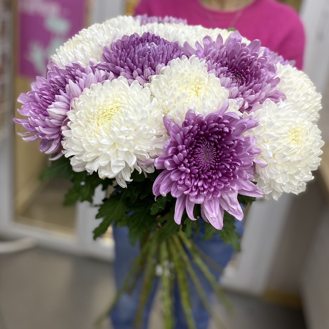 Букет хризантем - классический вариант подарка к торжественному событию или без повода.