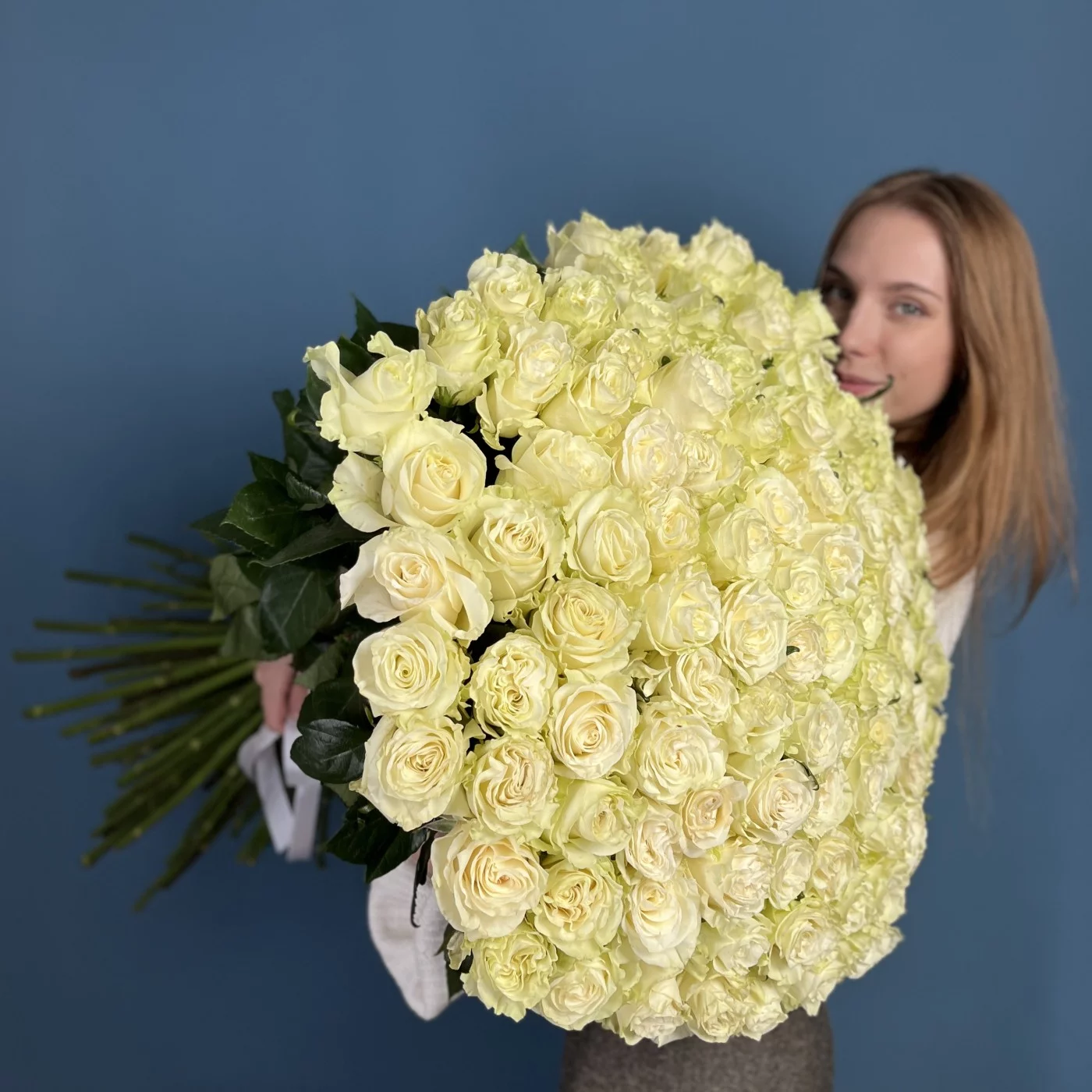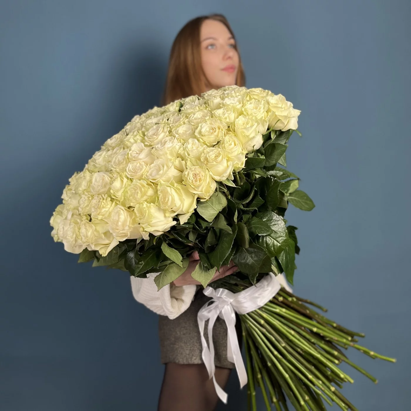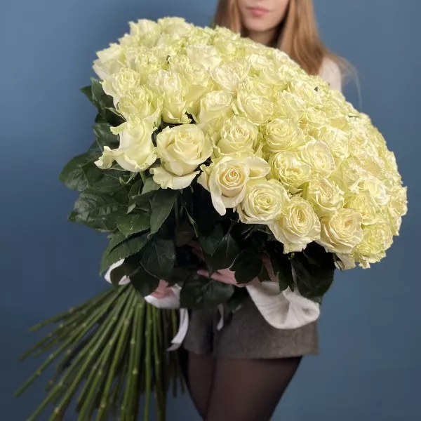 Букет из 101 белой розы Мондиаль высотой 80 см — это впечатляющее и роскошное цветочное произведение, которое невозможно не заметить. Белые розы символизируют чистоту, невинность и вечную любовь, что делает этот букет идеальным подарком для множеств случаев, от свадеб до юбилеев и романтических признаний.