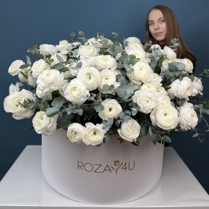 101 белый ранункулюс в большой коробке