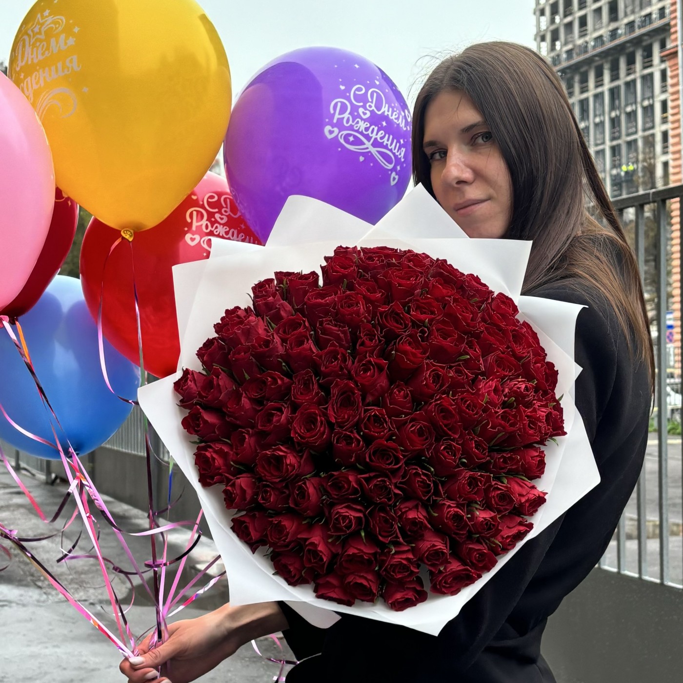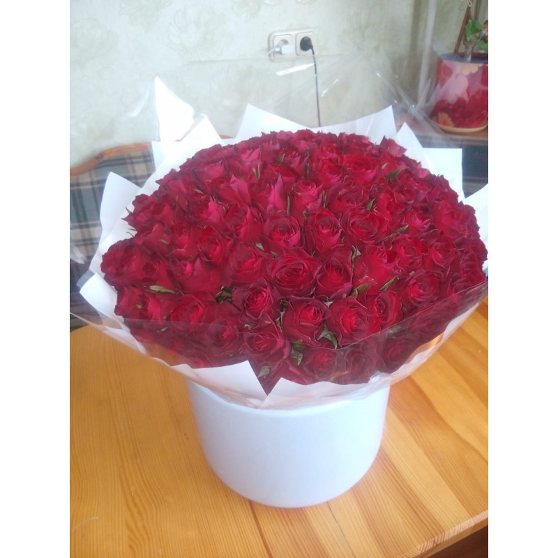 Любая женщина будет в восторге от 101 красной розы и испытает незабываемые эмоции. Наши композиция из 101 красных и свежих роз, будет долго радовать Вашу любимую и напоминать о Вас, как о самом заботливом, любящем и щедром мужчине.