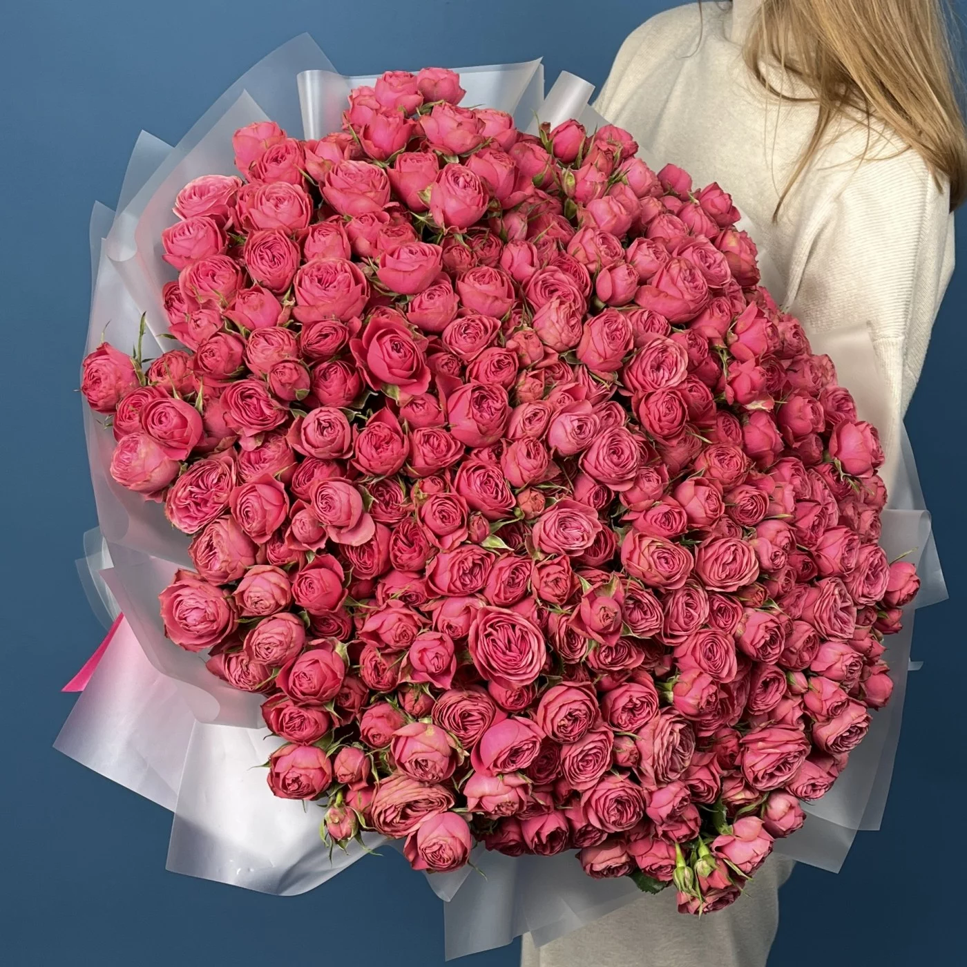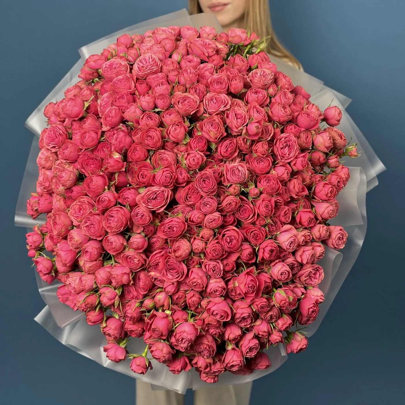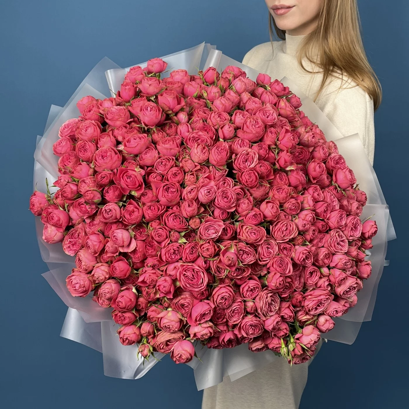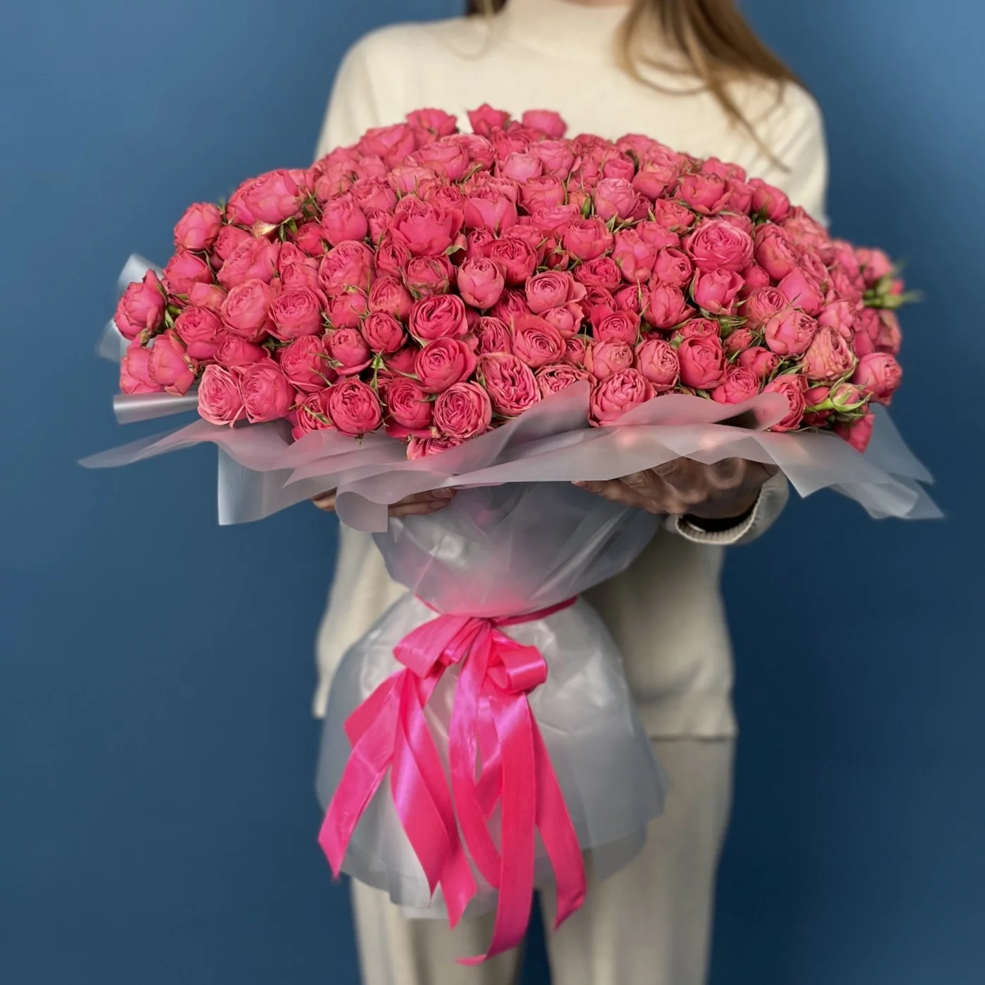 Потрясающий, роскошный букет из 101 пионовидной малиновой розы Гранд Трендсеттер высотой 50 см, который поражает своей масштабностью и изящностью. Насыщенный малиновый оттенок и густая пышная форма каждой розы создают впечатление грандиозности и элегантности. Этот букет является великолепным символом страсти, внимательности и глубокой любви — идеальный выбор для самых важных и торжественных событий, оставляющий неизгладимое впечатление.