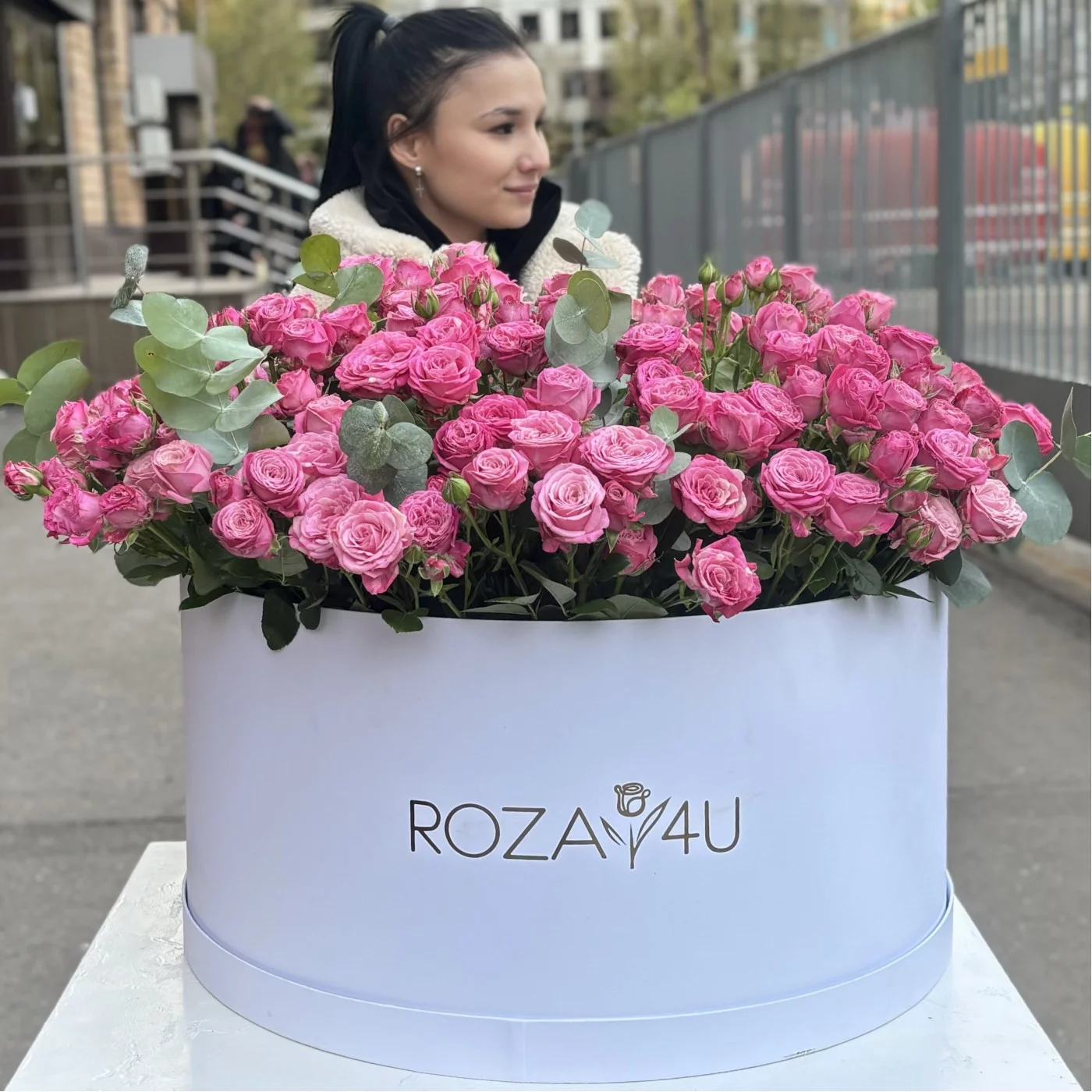 101 кустовая пионовидная роза Леди Бомбастик в коробке с эвкалиптом— это великолепный и роскошный подарок, который идеально подходит для особых случаев. Эти розы отличаются ярким цветом и изысканным ароматом, что делает их очень популярными на праздниках и торжественных мероприятиях.