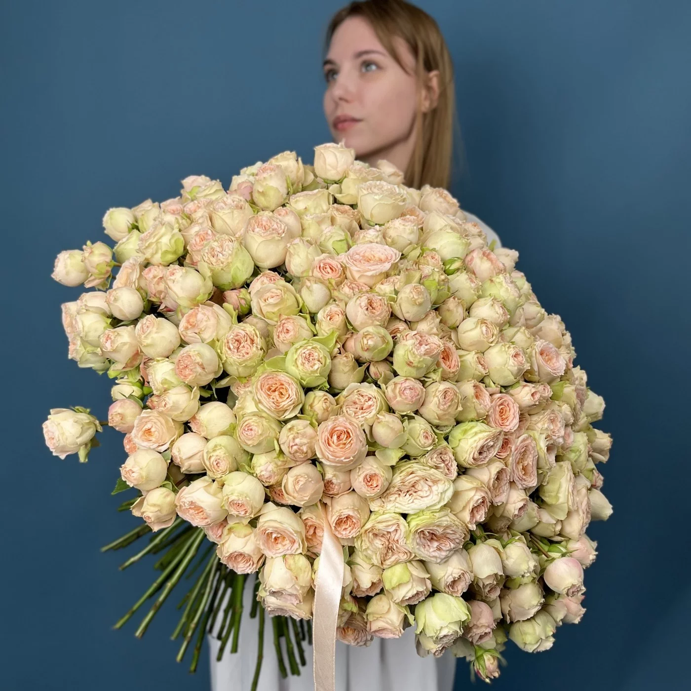 Композиция из 101 кустовой пионовидной розы Павлова высотой 50 см, аккуратно размещённых в стильной корзине, — это истинное воплощение роскоши, нежности и утончённой элегантности. Мягкие персиково-зелёные оттенки лепестков создают ощущение лёгкости и свежести, а пышные бутоны формируют гармоничное облако изысканной красоты. Каждая роза раскрывается идеально, придавая композиции глубину и объем, а корзина делает образ завершённым и безупречным. Этот букет — символ восхищения, благодарности и искренних чувств, он станет идеальным подарком для любимой, невесты, мамы или особенного человека, которому хочется подарить радость и восхищение. Подойдёт для свадьбы, юбилея, признания в любви или любого торжества, когда слова не нужны. Мы осуществляем доставку по Москве и области круглосуточно, гарантируем свежесть и отличное качество цветов. Наши клиенты отмечают лучшие цены и отличные отзывы о нас во всех поисковиках — ведь истинная красота всегда вызывает восторг.