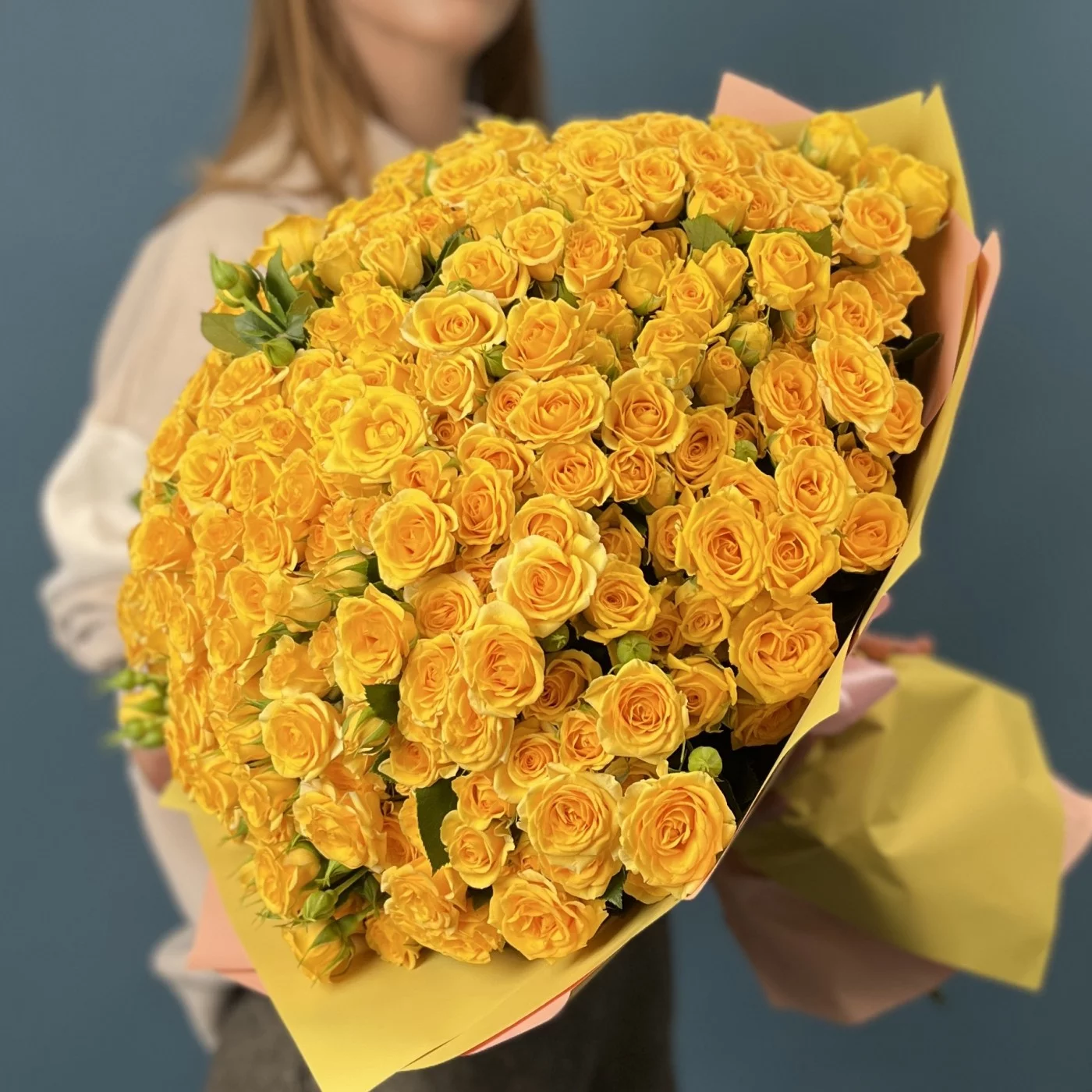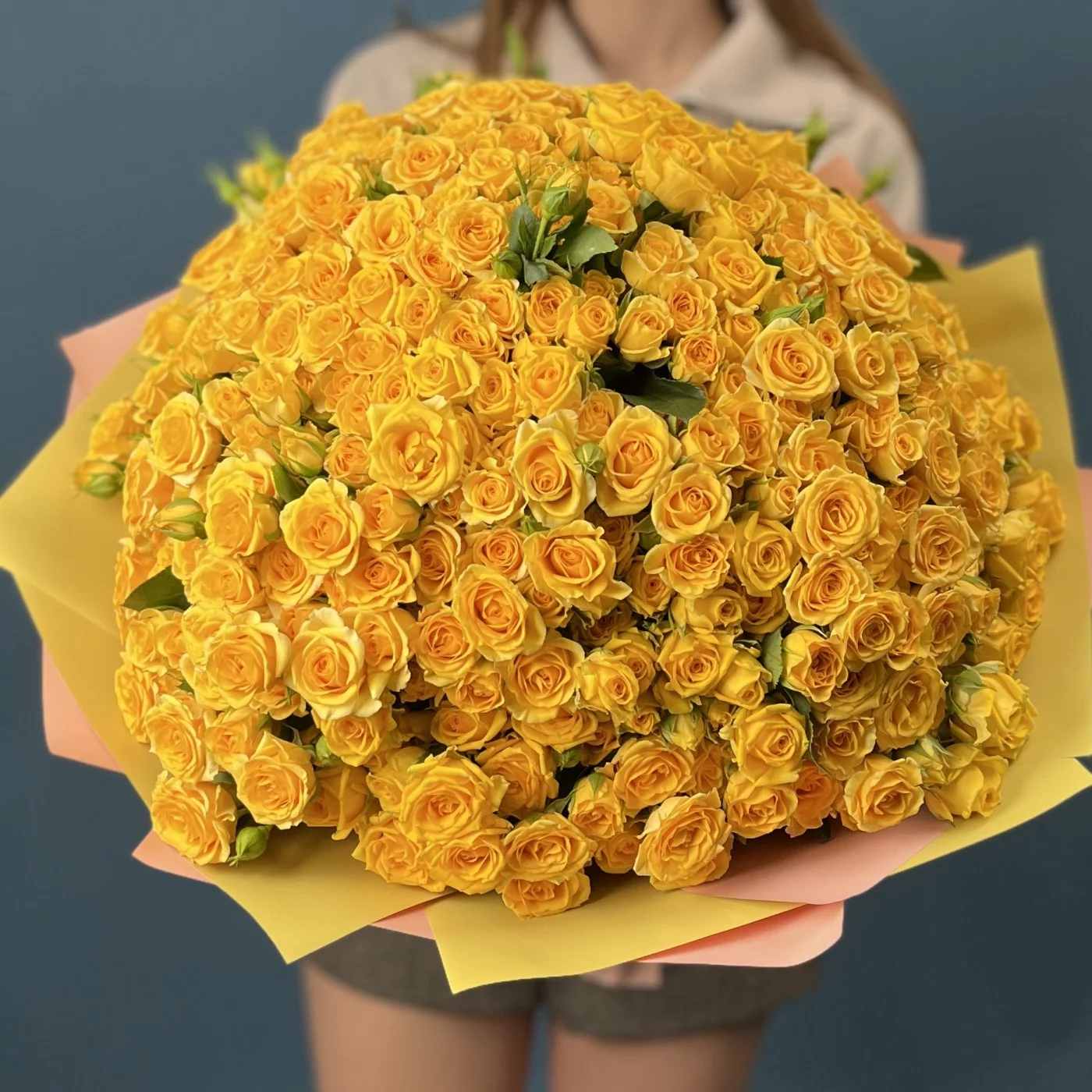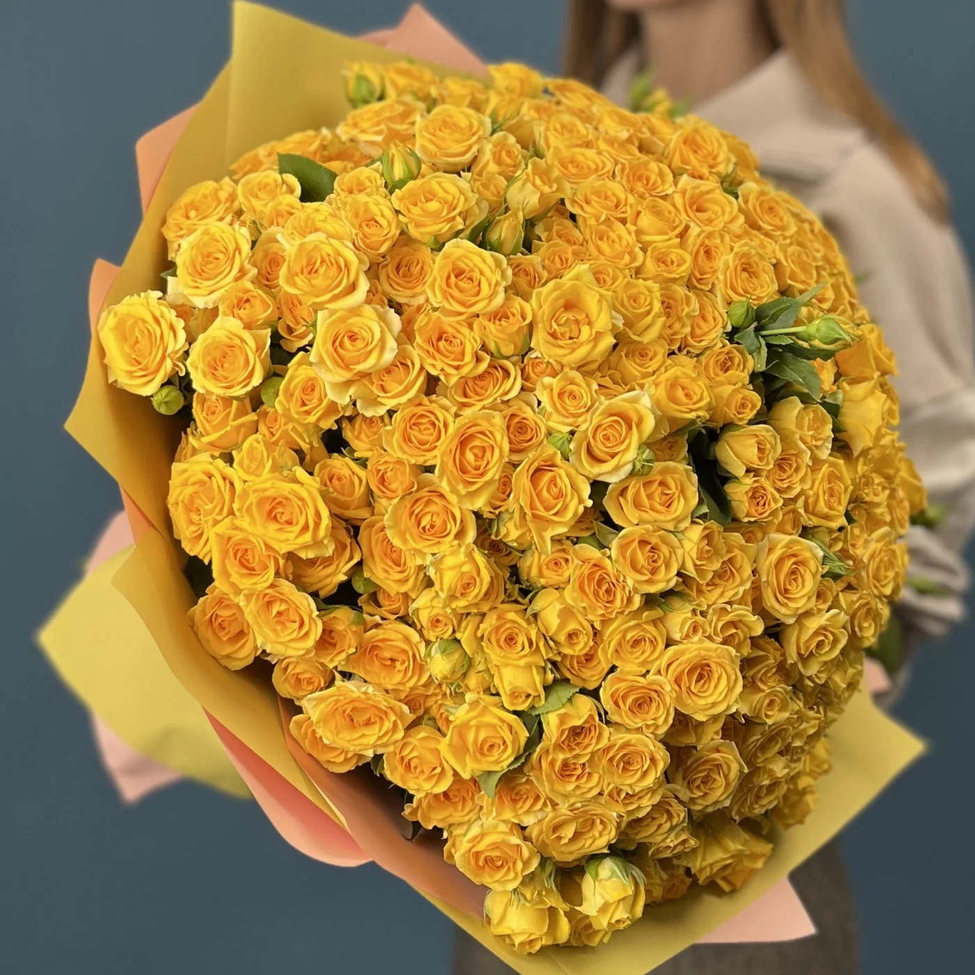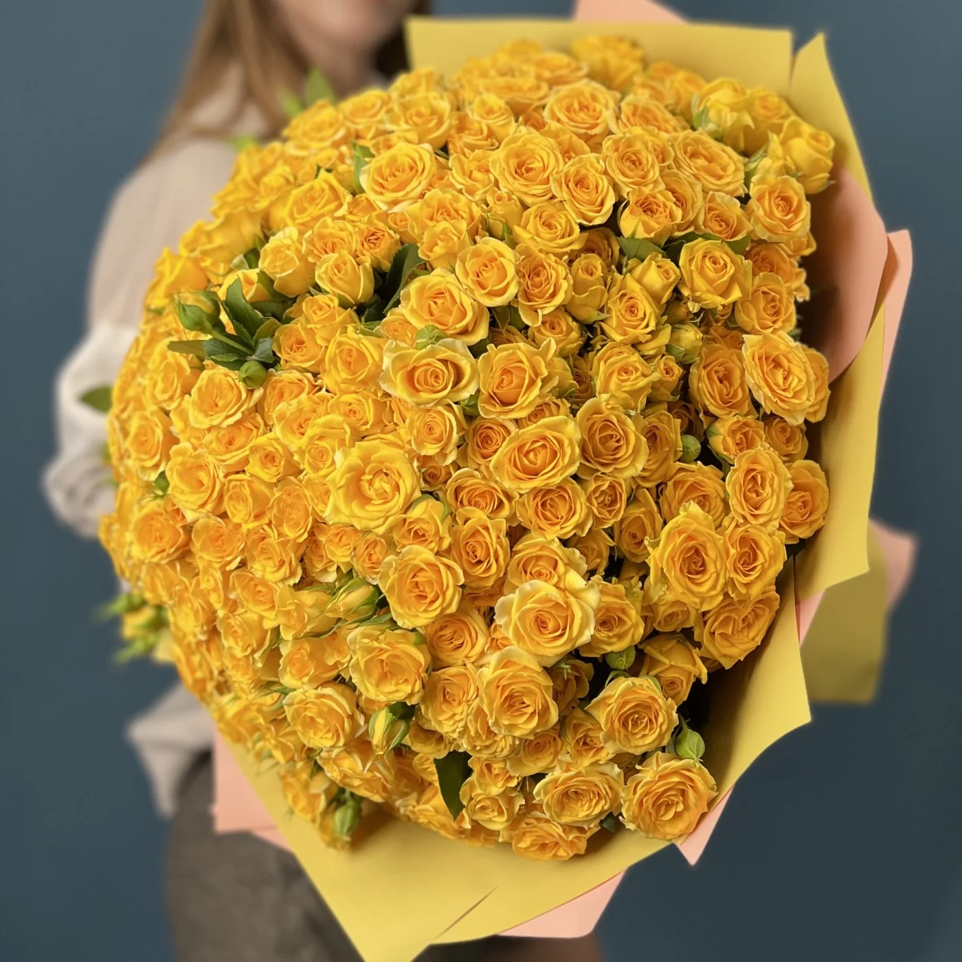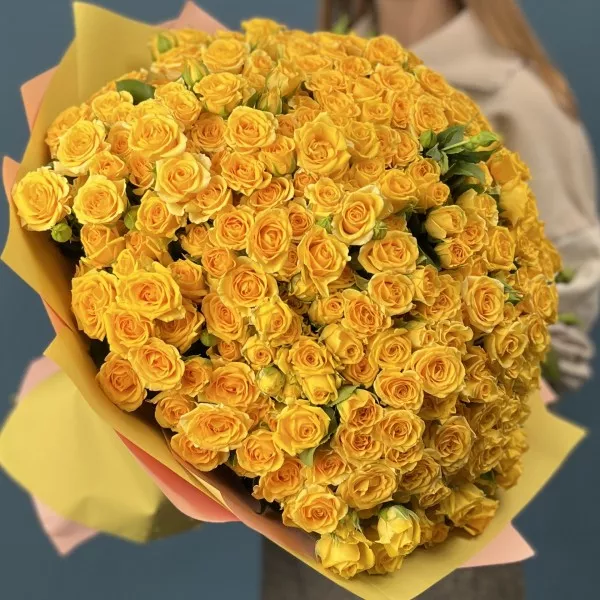 Потрясающий букет из 101 кустовой розы сорта Еллоу Бейби высотой 40 см — это яркое и эффектное оформление, которое подчеркнет торжественность любого события.