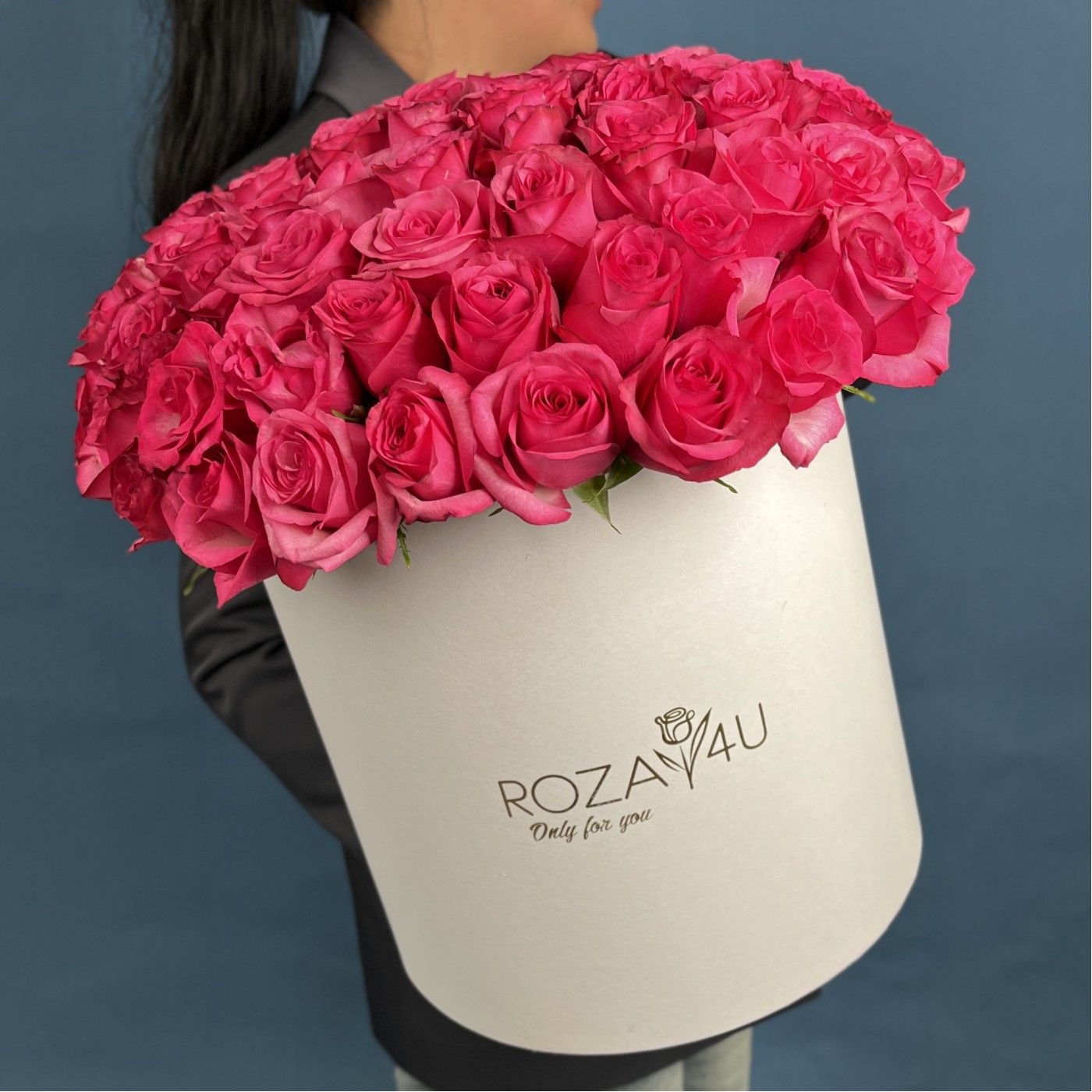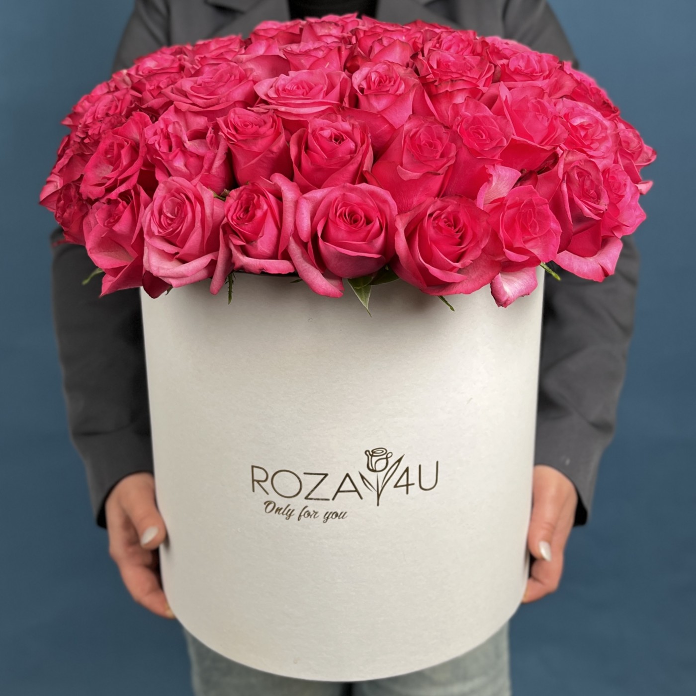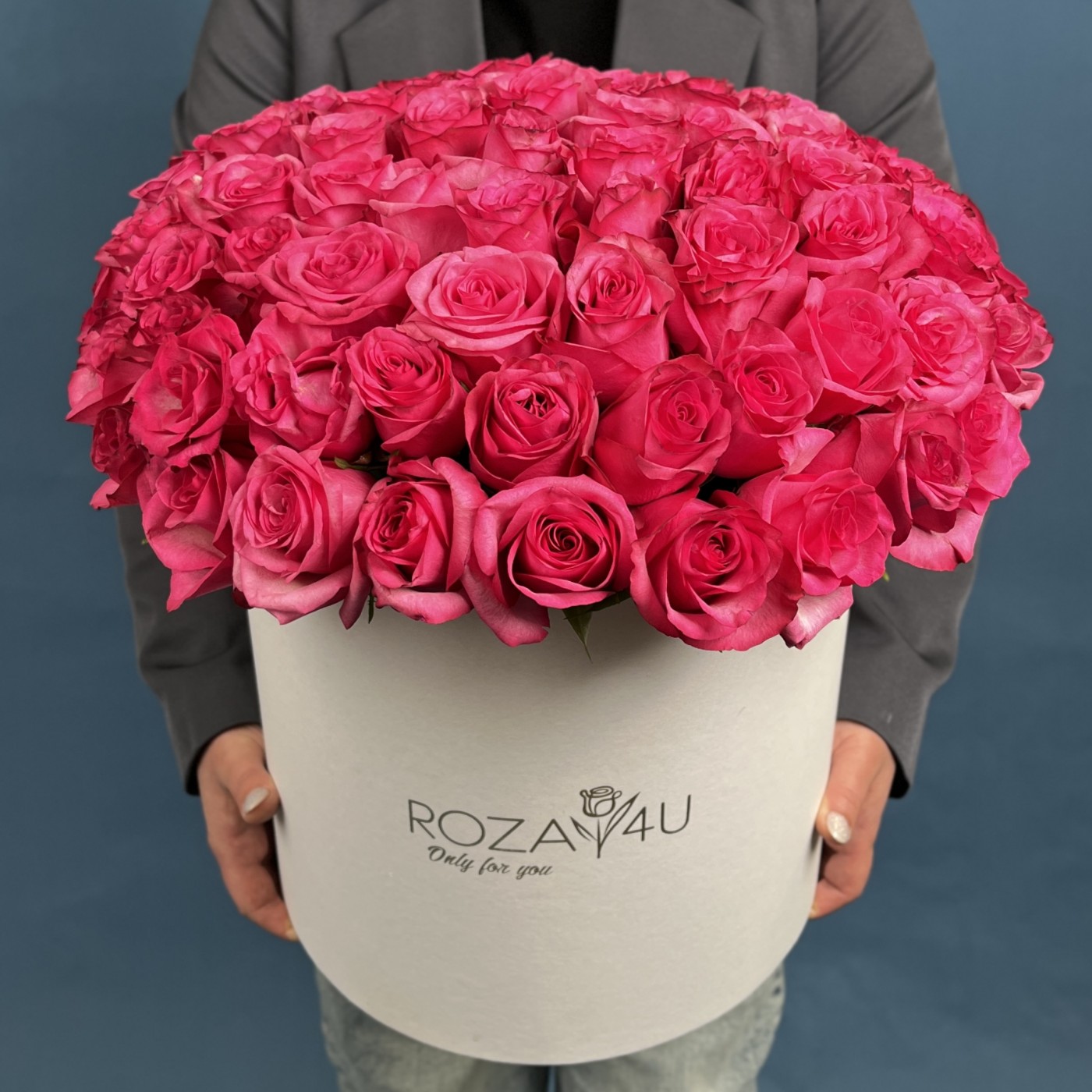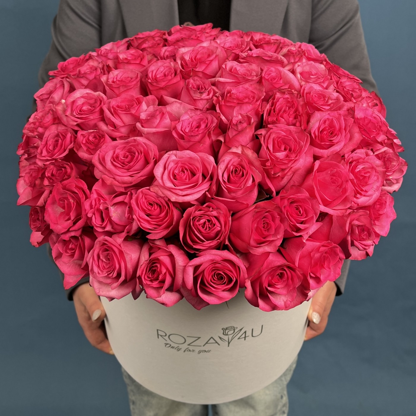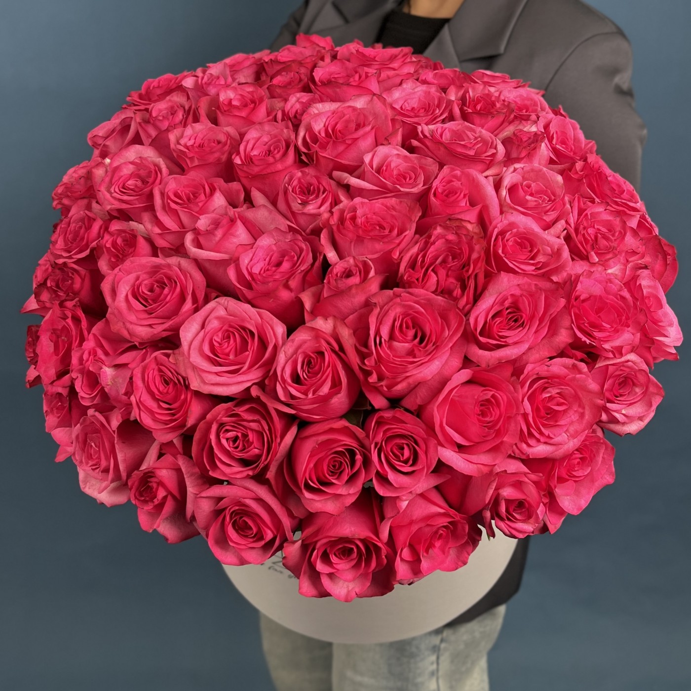 101 малиновая роза Палома Роял в коробке — это роскошный и выразительный подарок, который станет центром внимания на любом важном событии.