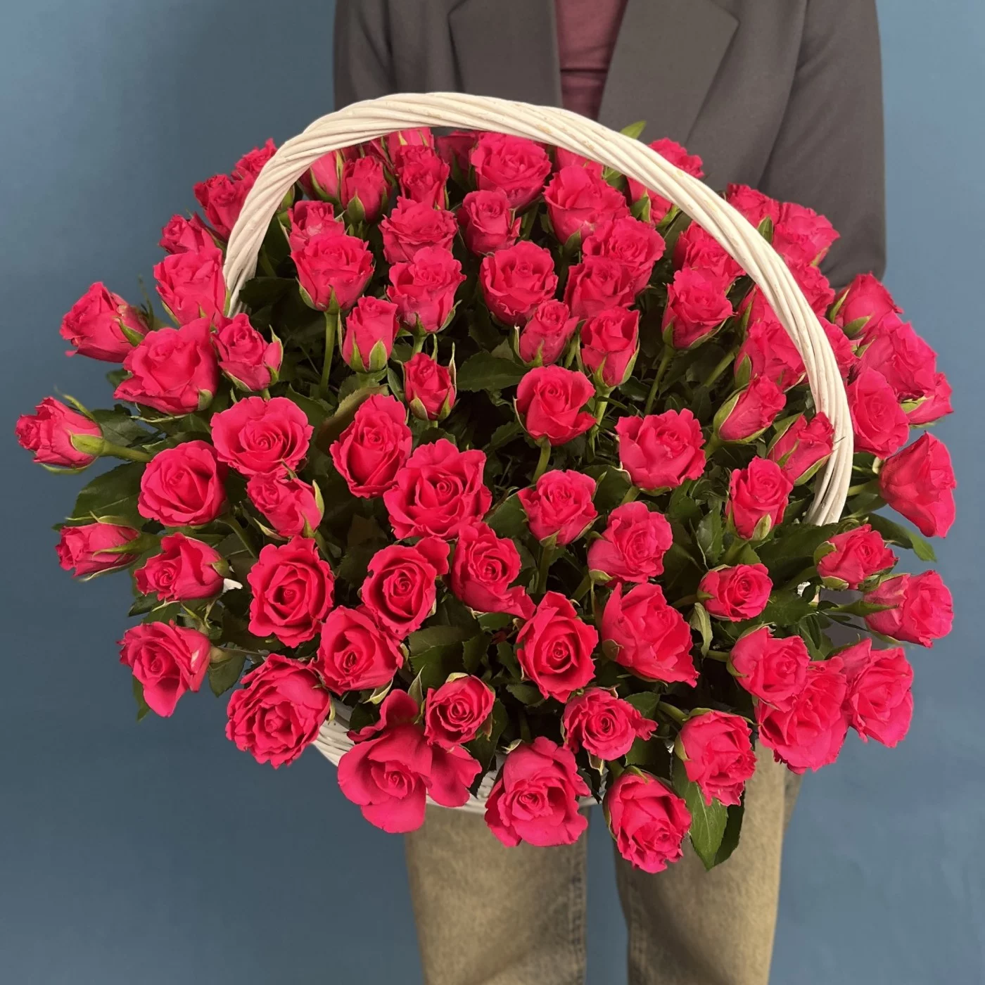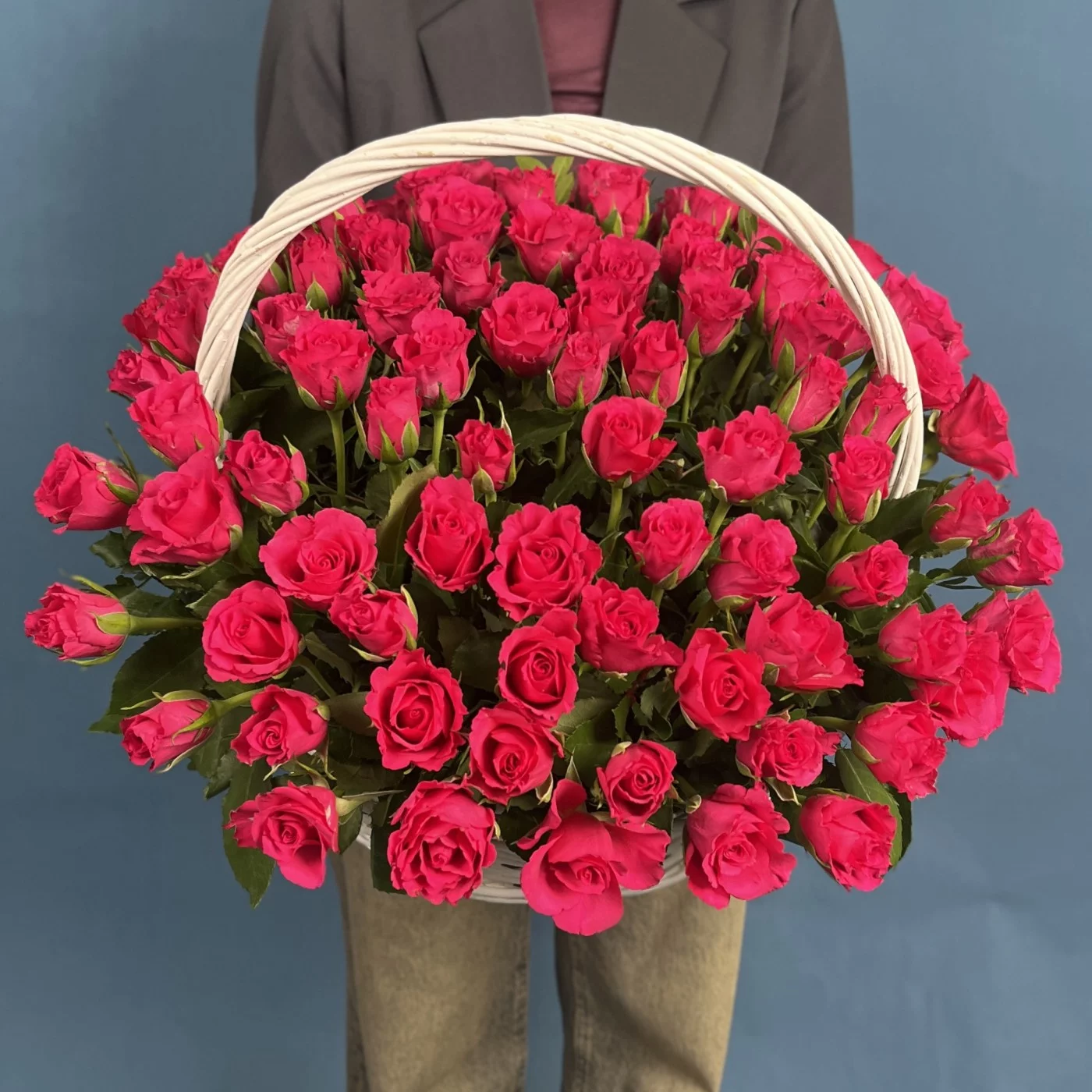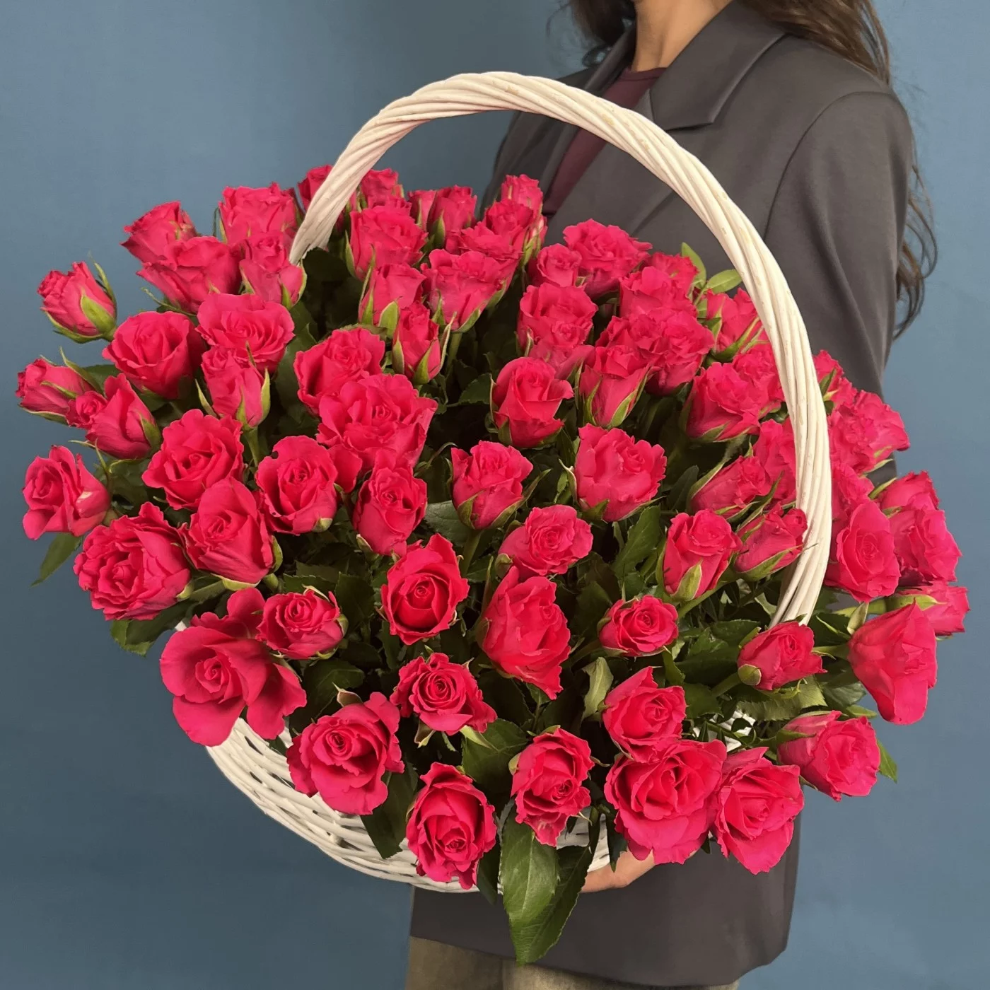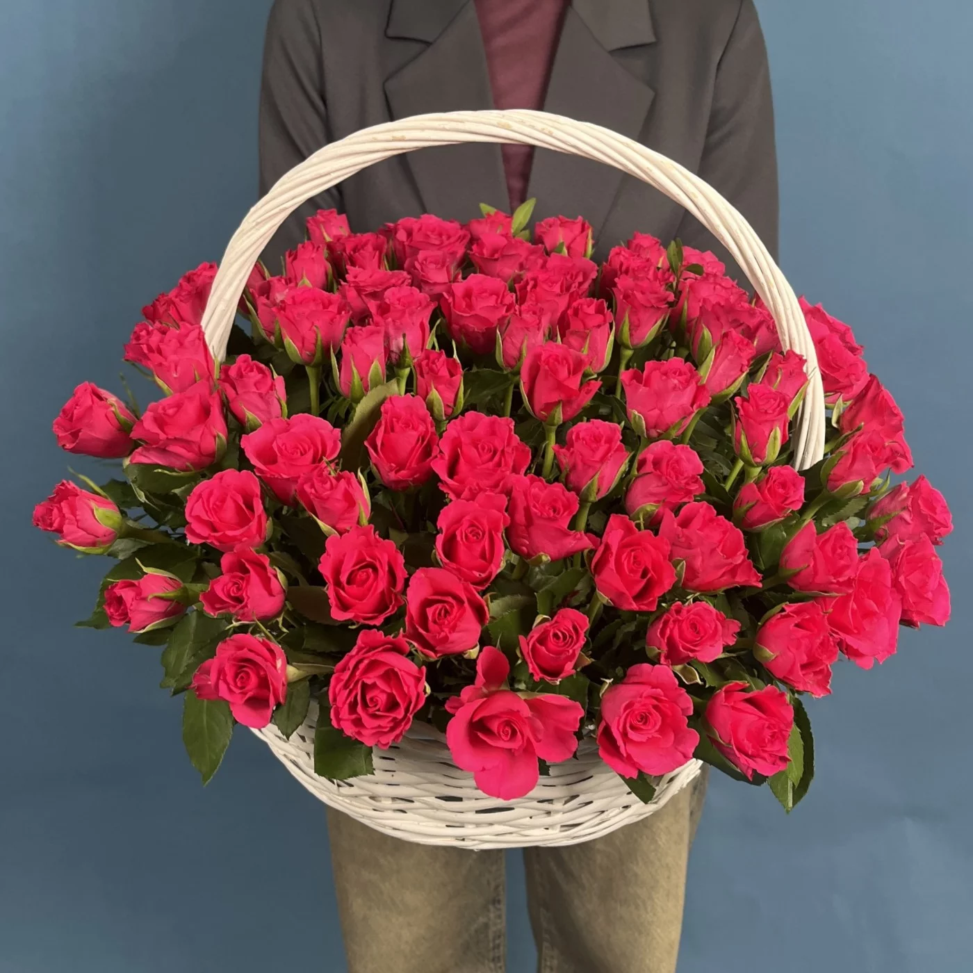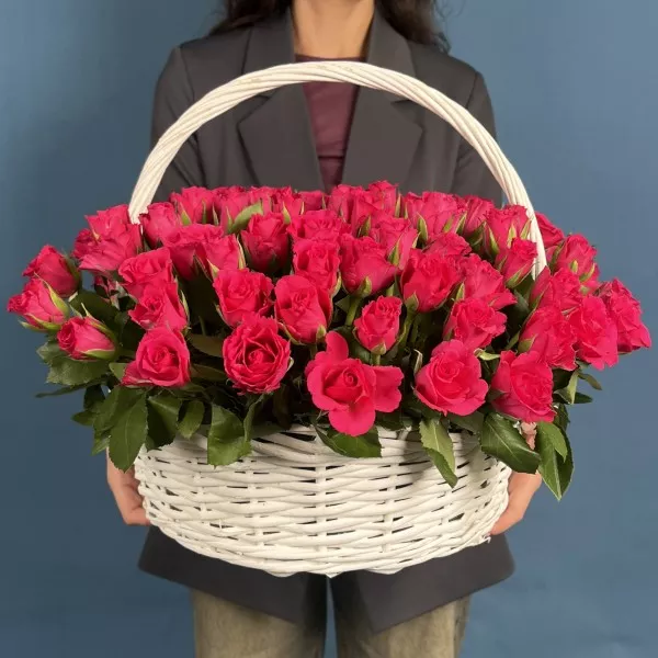 Композиция из 101 малиновой розы Вайлд Калипсо высотой 35 см в корзине — это яркое воплощение роскоши, энергии и впечатляющей красоты. Глубокий малиновый оттенок бутонов создаёт эффект живого свечения, а плотные, насыщенные лепестки придают композиции пышность и выразительность. В корзине розы смотрятся особенно гармонично: аккуратное размещение подчёркивает их природную силу и делает образ цельным и безупречным. Такая композиция производит сильное впечатление и дарит радость уже с первого взгляда. Она идеально подойдёт для любимой женщины, невесты, мамы или для особенного события, когда хочется произнести признание сердцем — на юбилее, свадьбе, дне рождения или важном торжестве. Мы осуществляем доставку по Москве и области круглосуточно, гарантируем свежесть и отличное качество цветов. У нас лучшие цены и превосходные отзывы покупателей во всех поисковиках, ведь каждый букет создаётся с мастерством и душой.