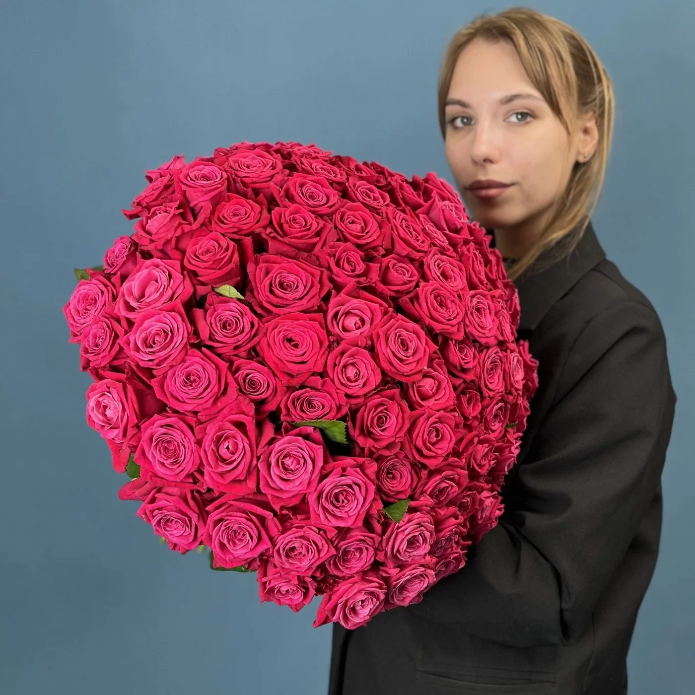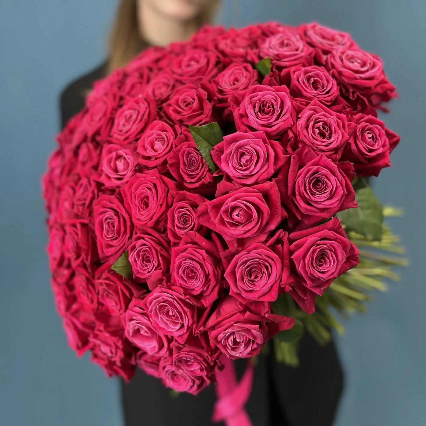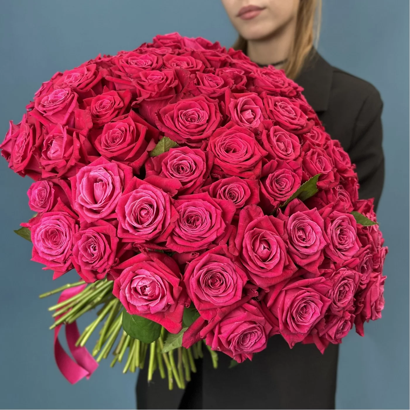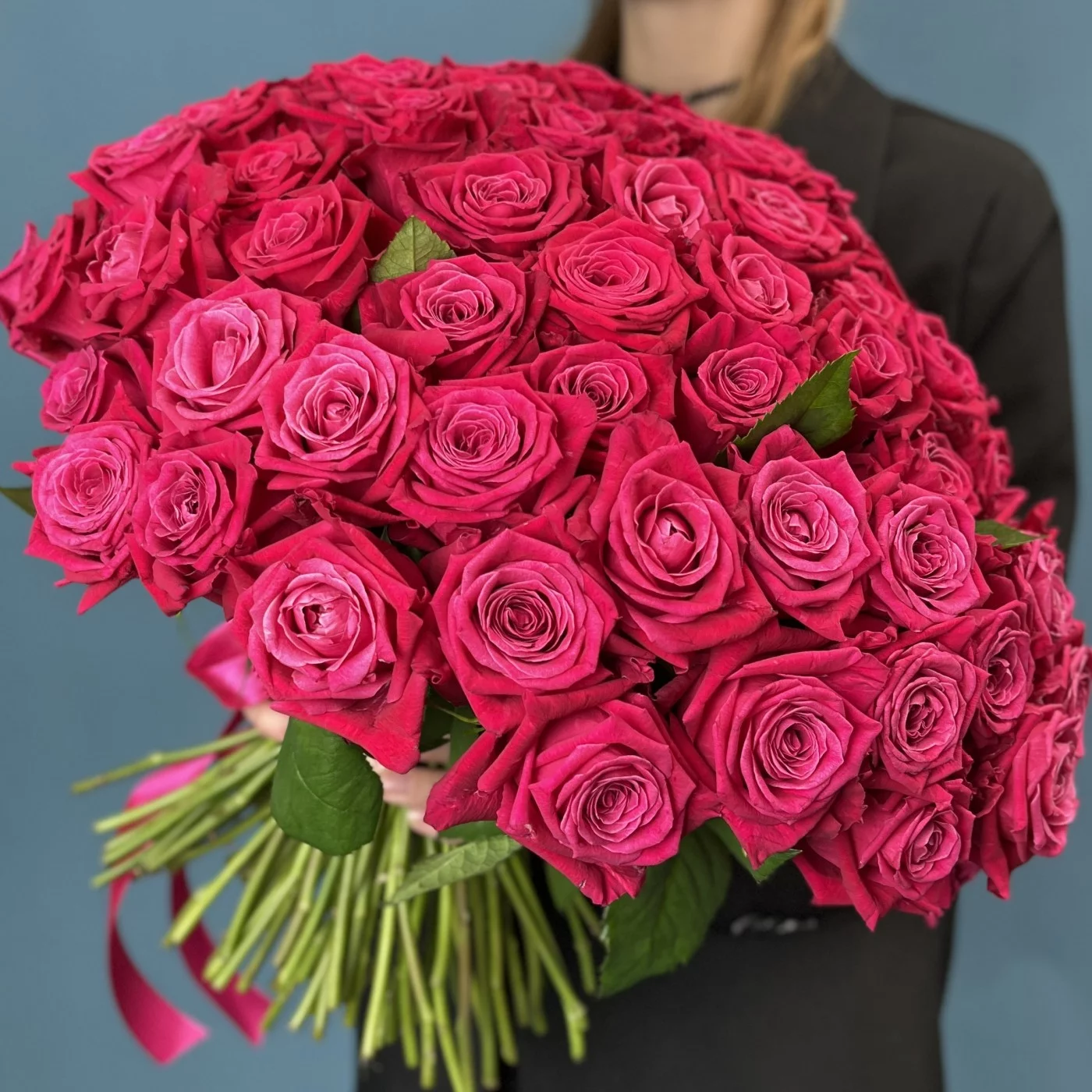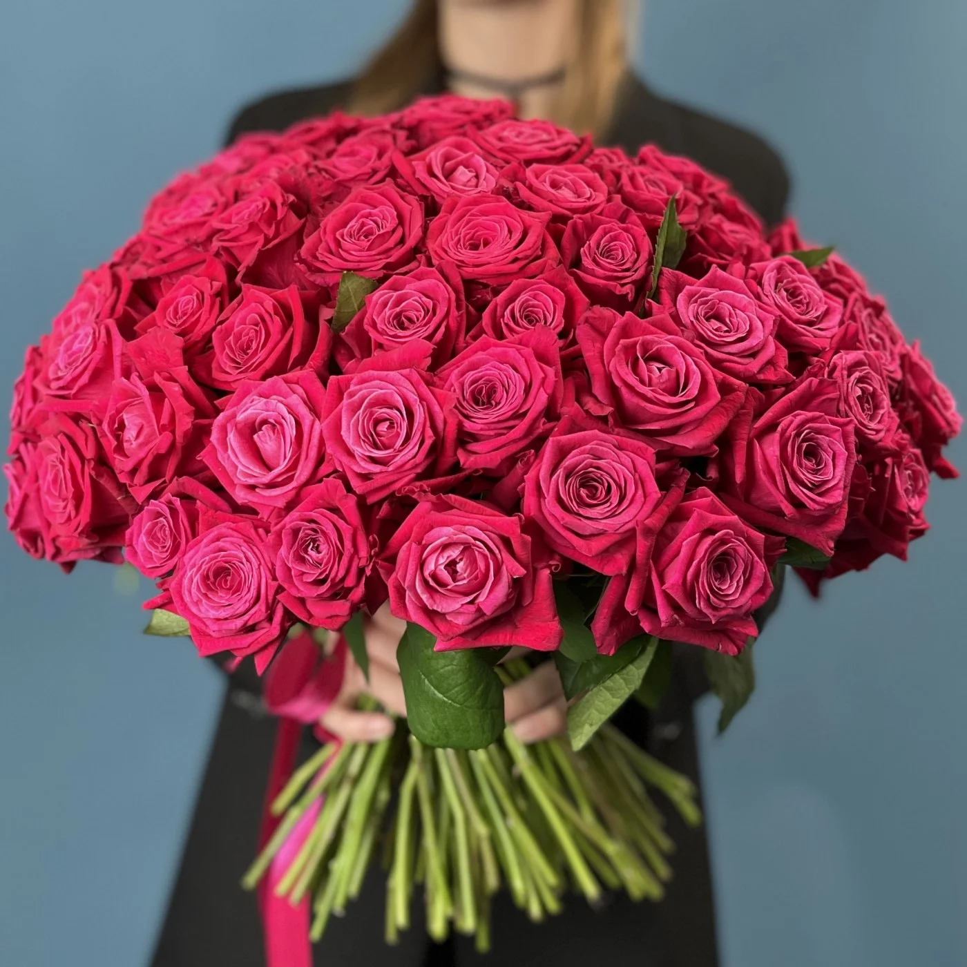 Букет из 101 малиновой розы Шангрила длиной 40 см — это идеальный способ выразить свои самые искренние чувства, сделать грандиозный подарок и оставить незабываемое впечатление в важные моменты жизни.