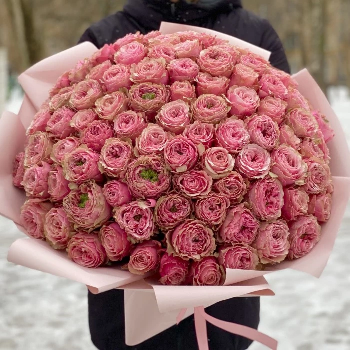 Шикарный букет из необыкновенных пионовидных роз сорта Белиз. Такой букет уместно преподнести на торжественное мероприятие или признаться в любви. Большой букет роз не оставит равнодушным никого. Дарите красивые и запоминающиеся букеты от Roza4u.