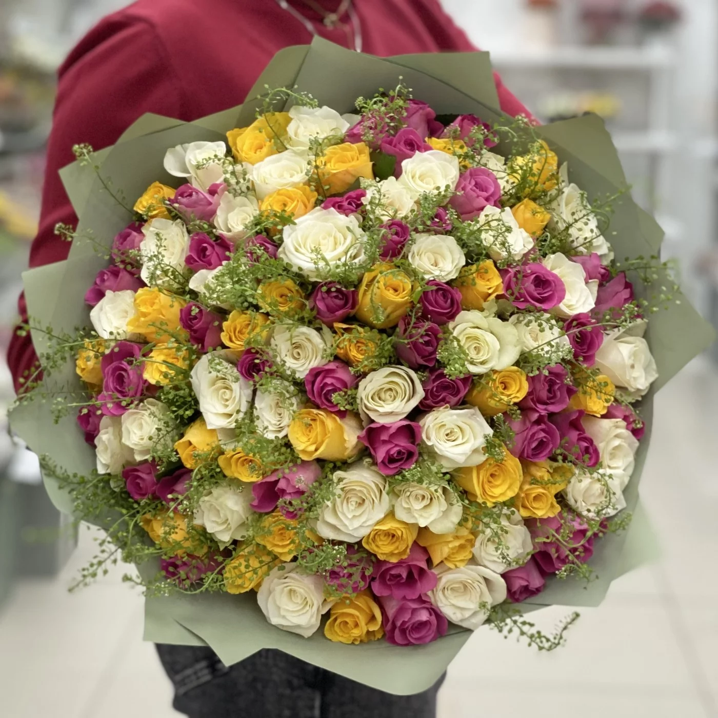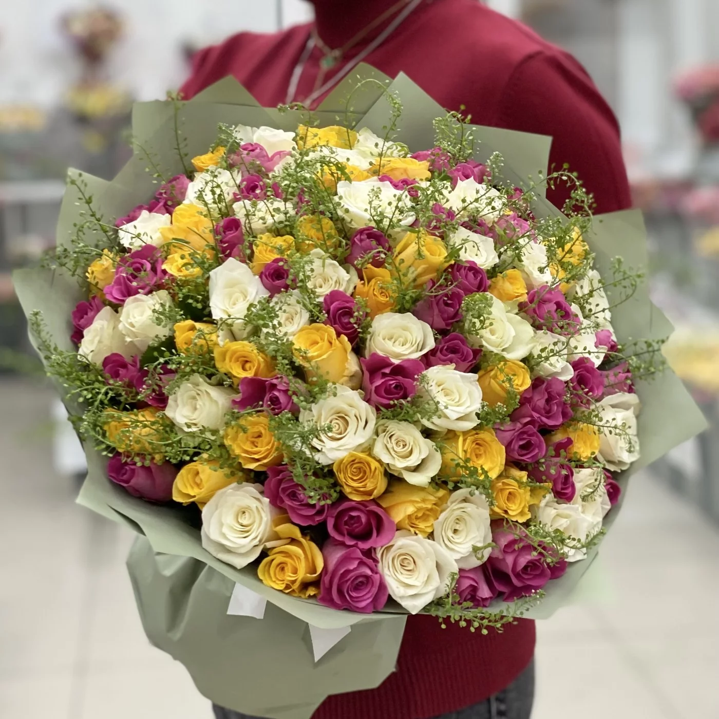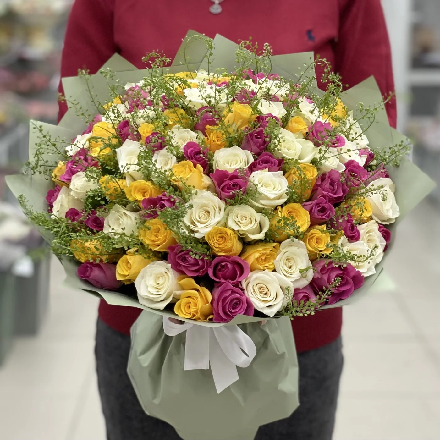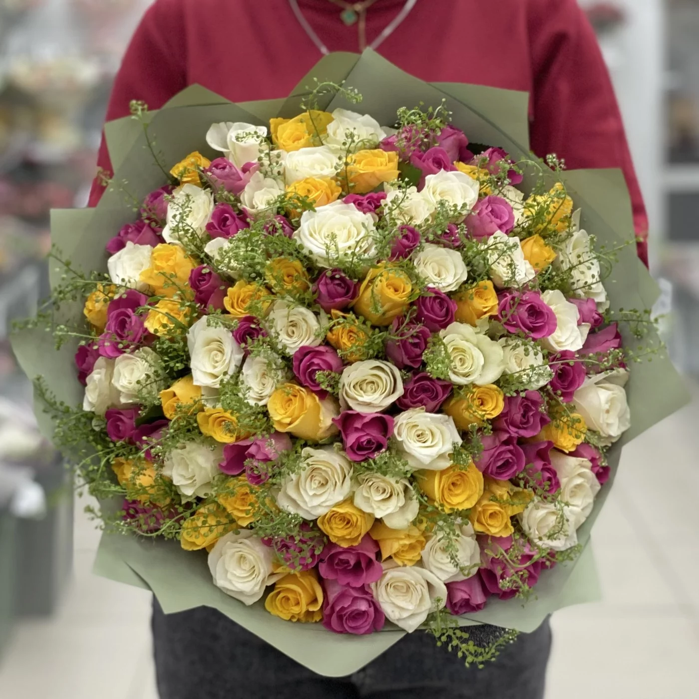 За три месяца мы доставили товар "101 роза весенний микс с гринбел" по следующим локациям: