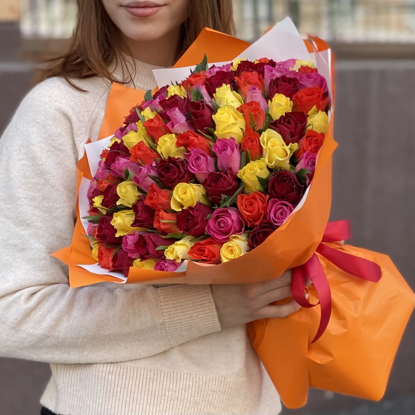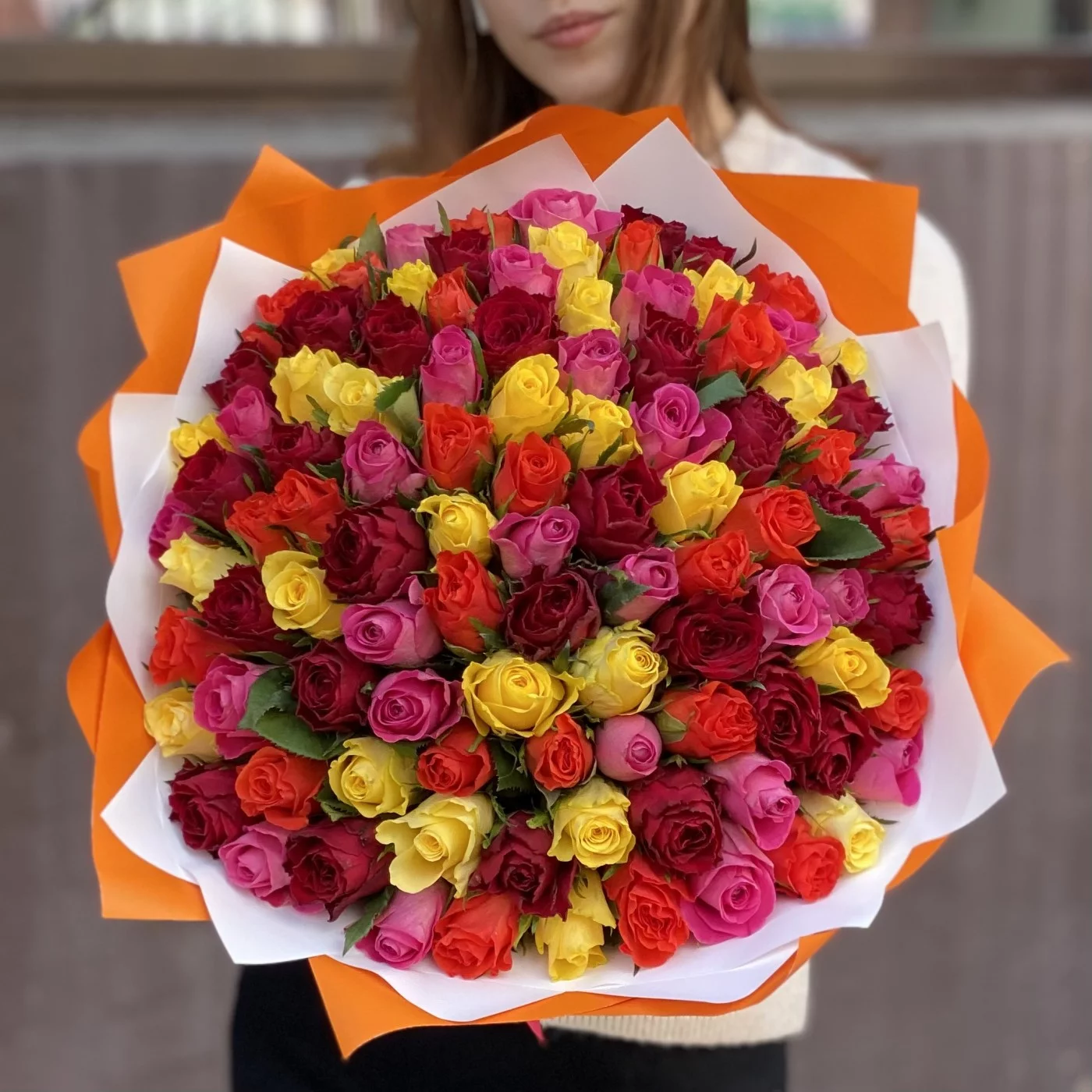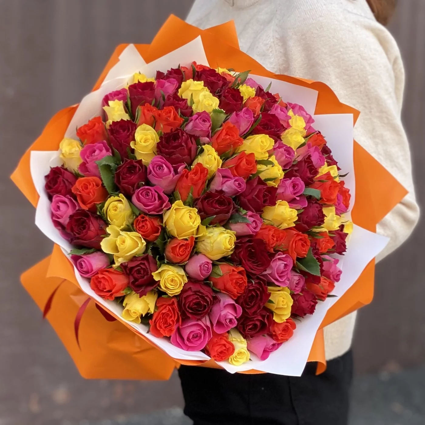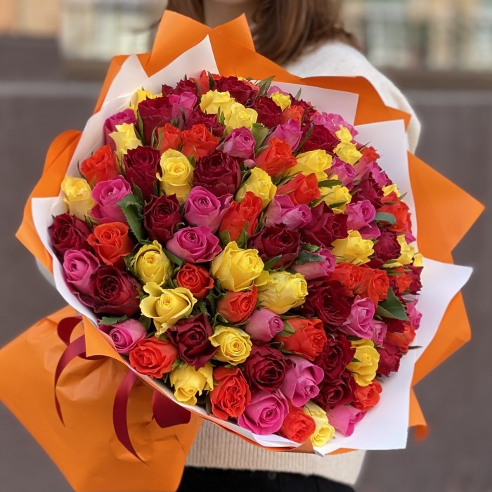101 роза Яркий микс