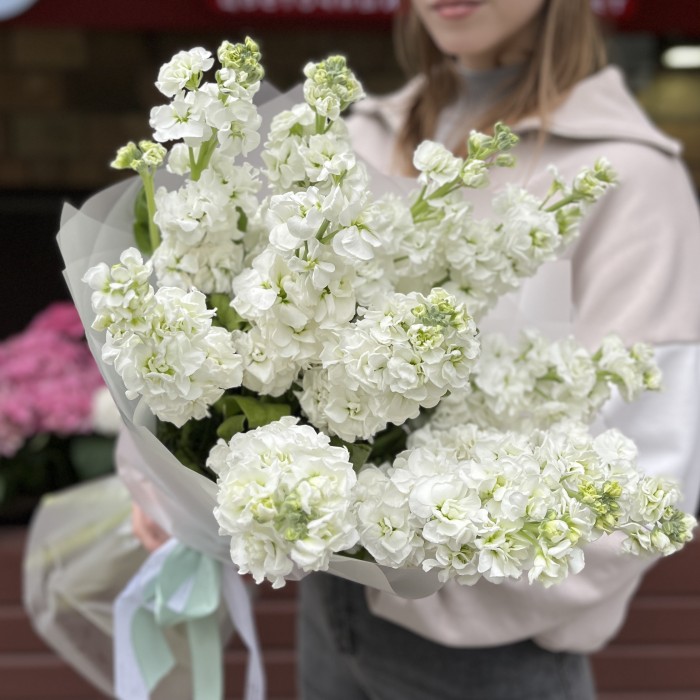 Букет из 11 ароматных белых маттиол — это изысканная и нежная композиция, которая наполнит пространство свежестью и утонченностью. Белые цветы создают ощущение чистоты и спокойствия, а их насыщенный аромат добавляет особую атмосферу уюта и романтики. Такой букет отлично подойдет для подарка, украшения интерьера или для создания гармоничной обстановки в доме. Его элегантность и аромат обязательно порадуют вас и ваших близких.