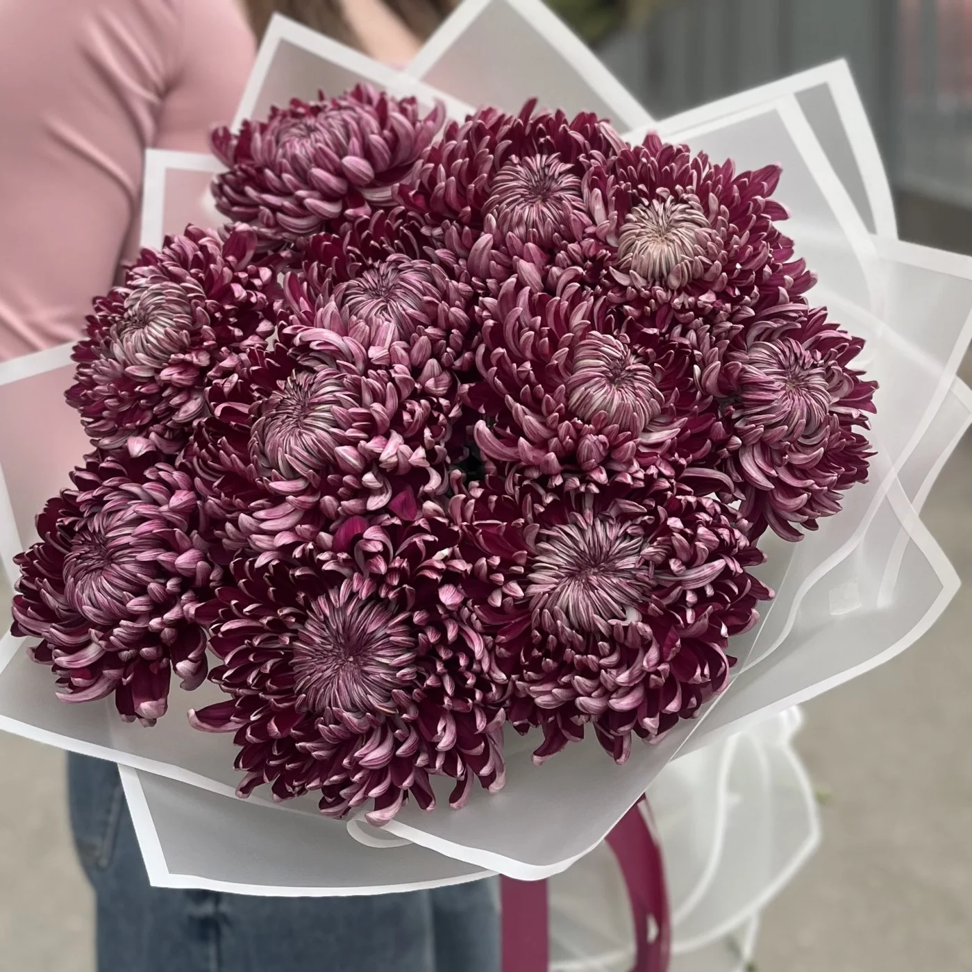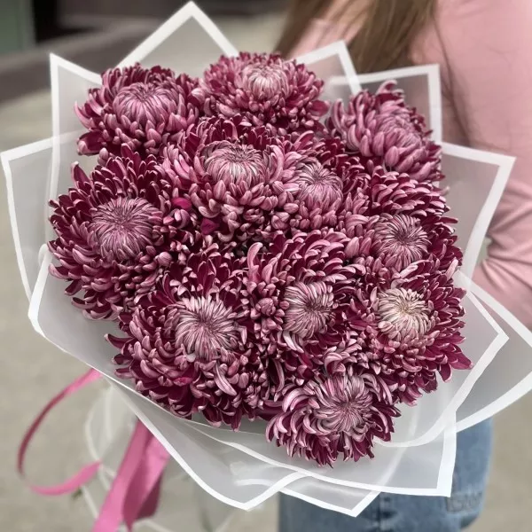 Букет из 11 крупных фиолетовых хризантем не оставит свою получательницу равнодушной.