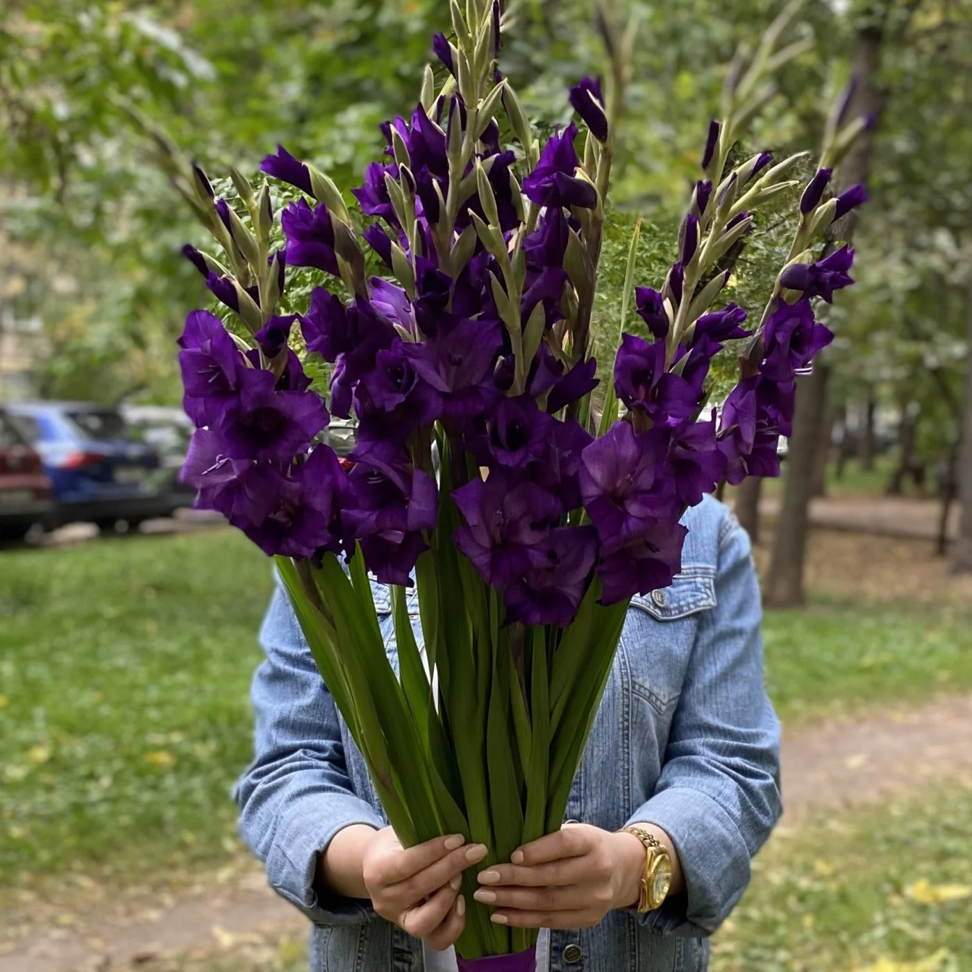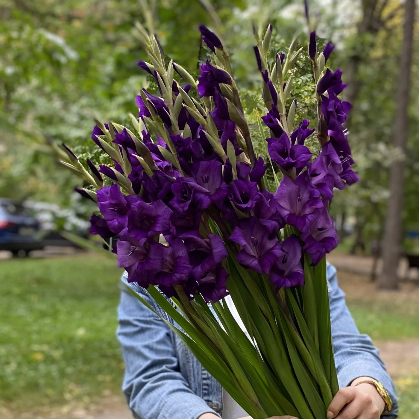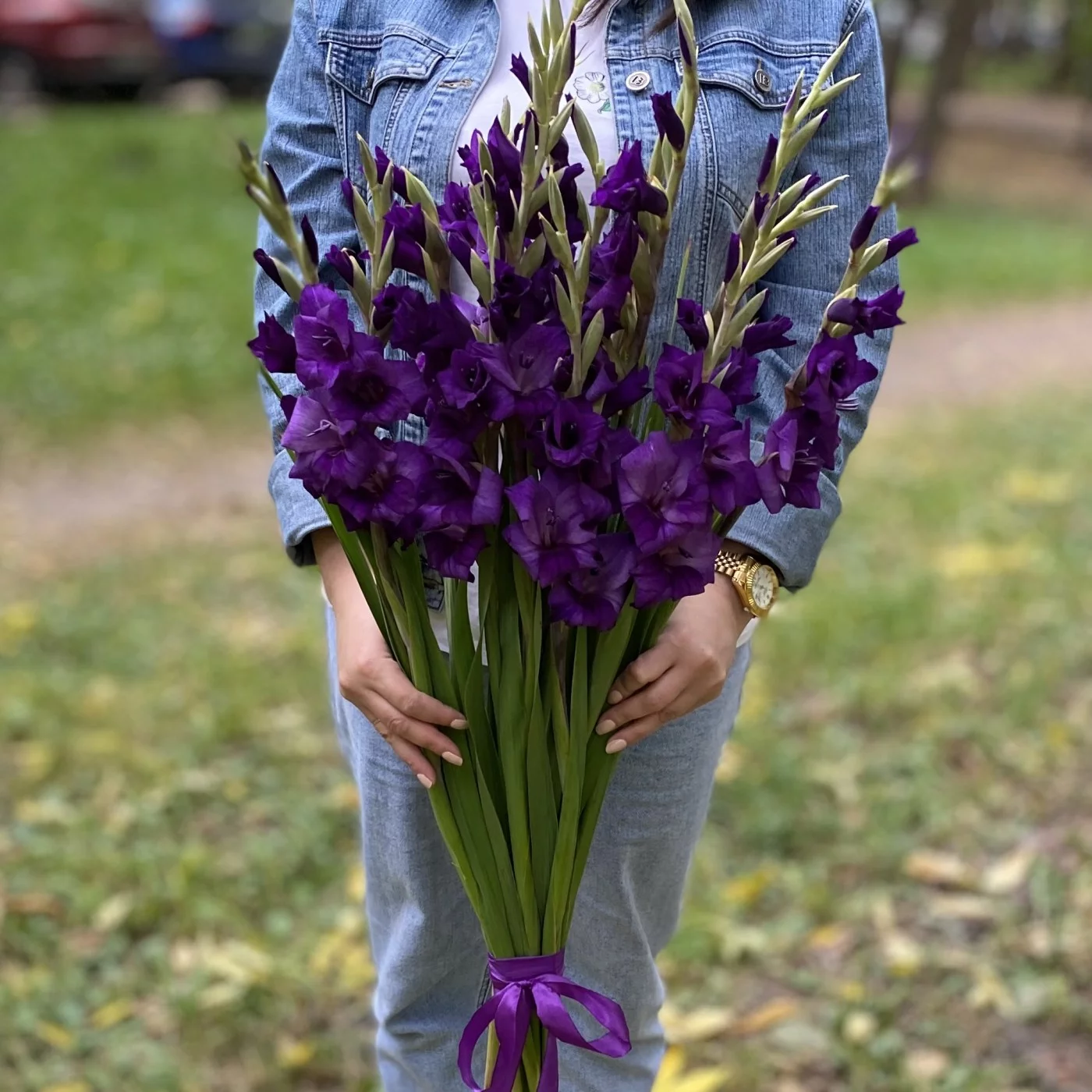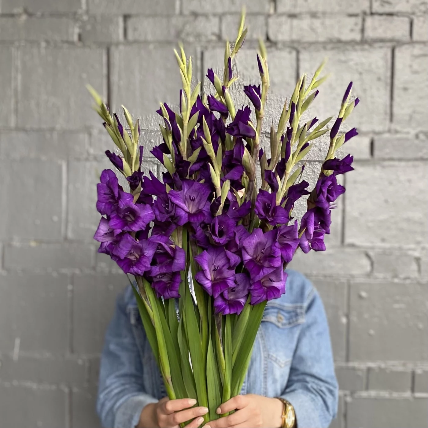 11 темно-фиолетовых гладиолусов