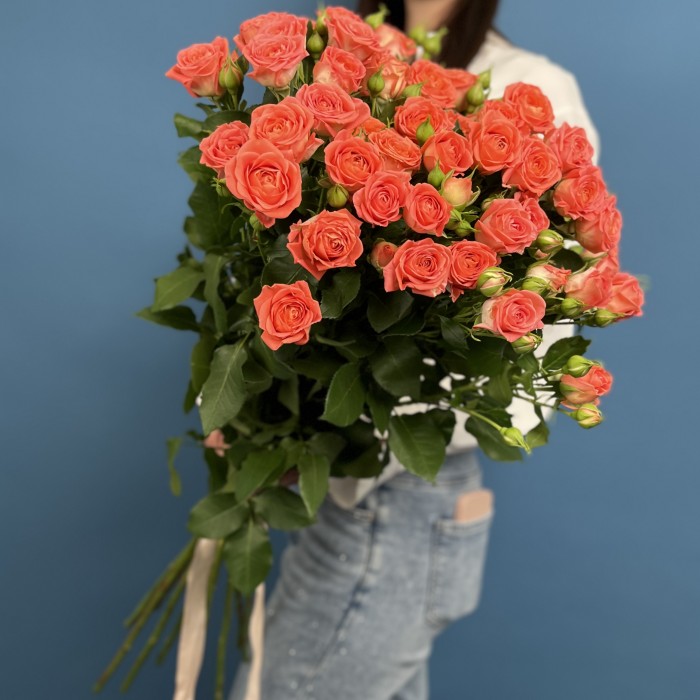 11 кустовых оранжевых роз Чарминг Бейб 80 см, идеален для романтических жестов, дружеских поздравлений или деловых подарков.