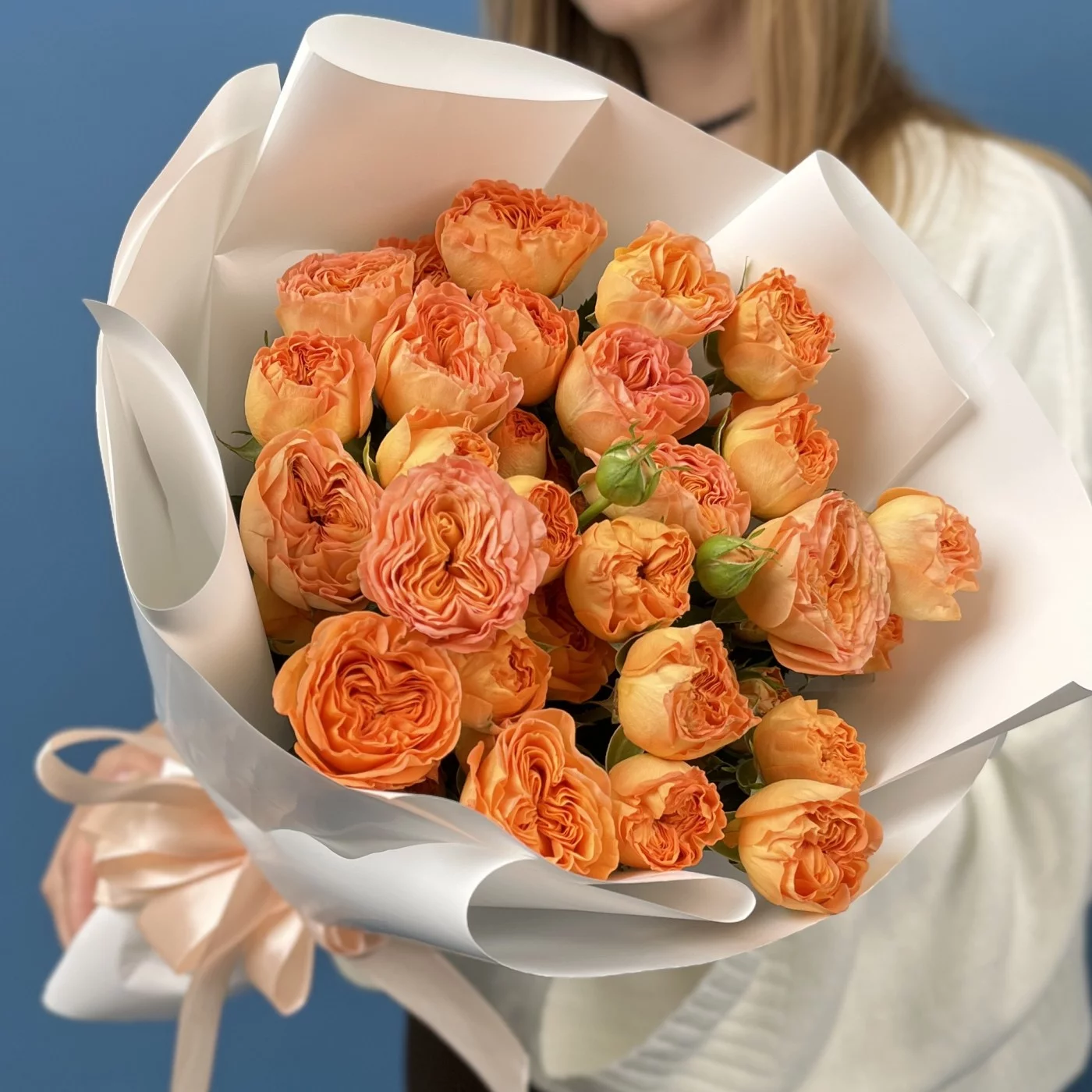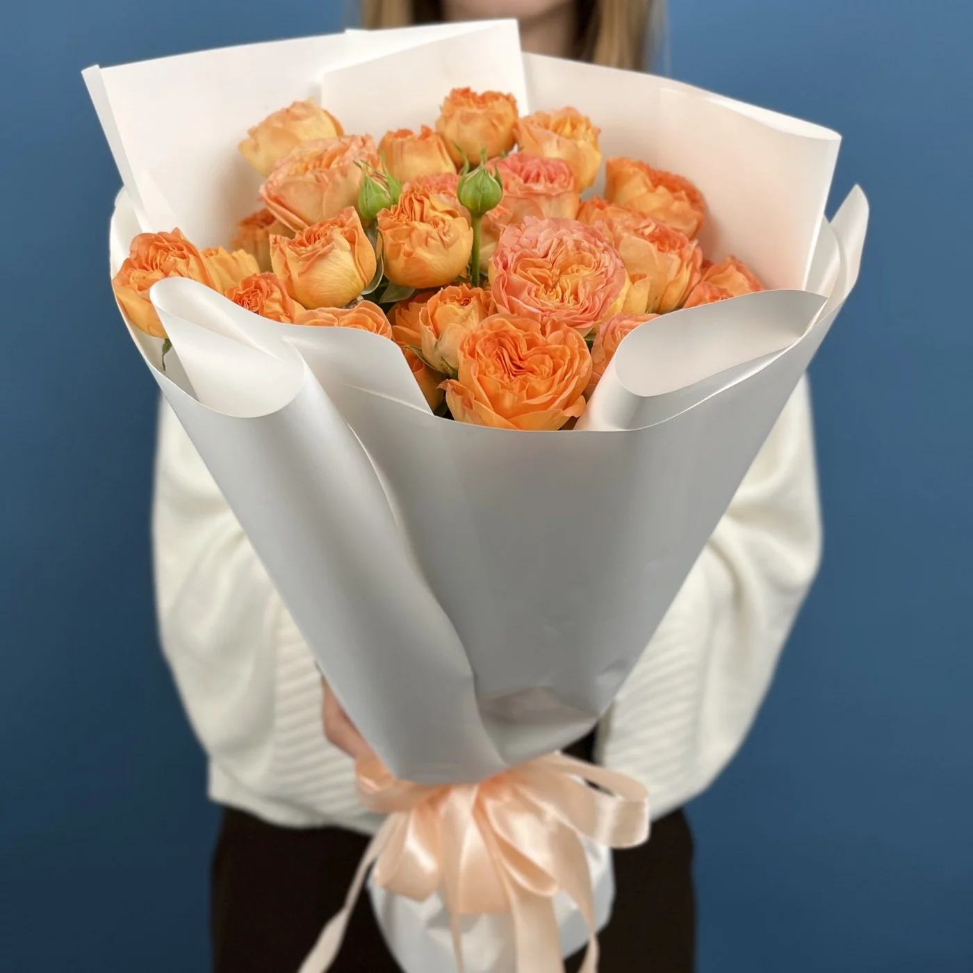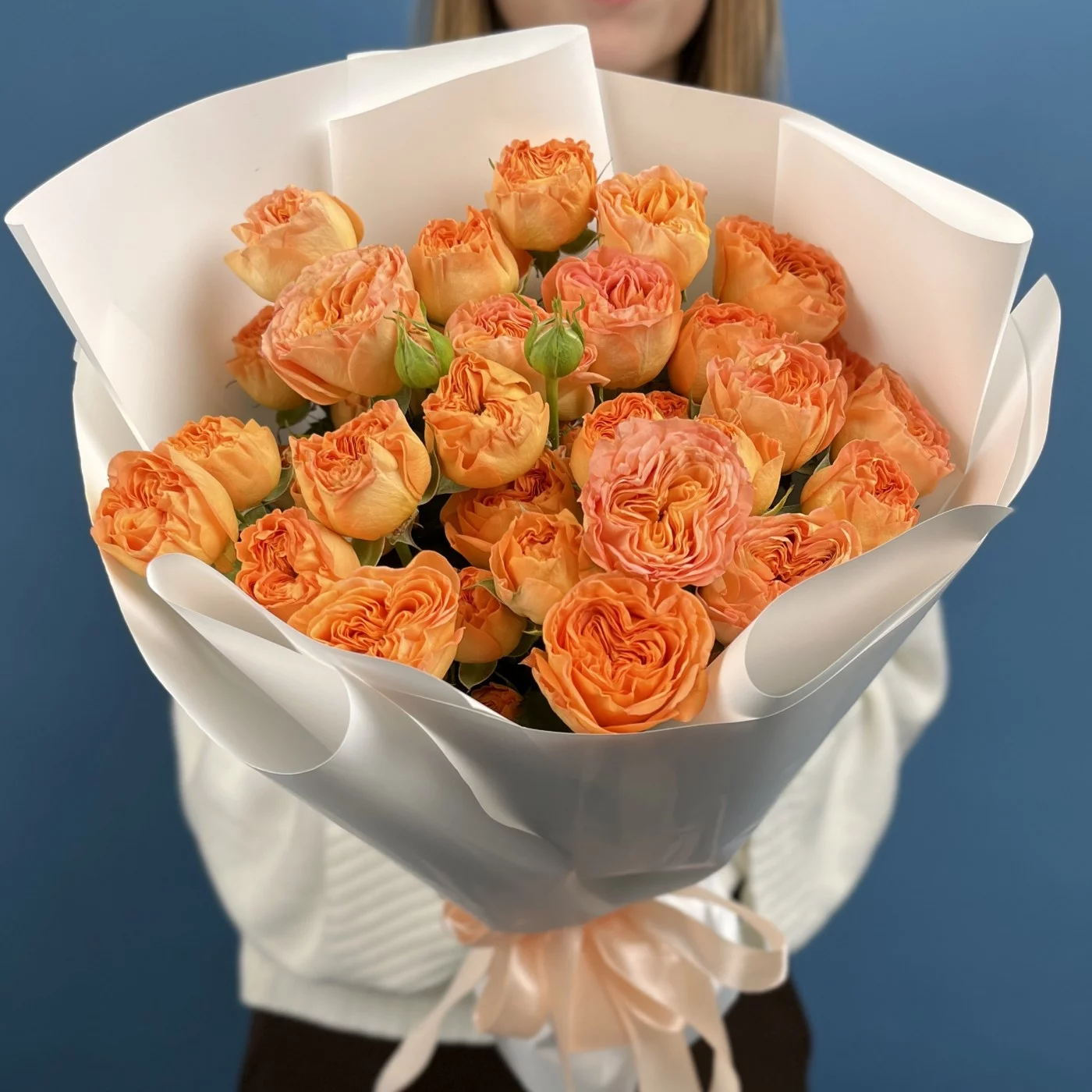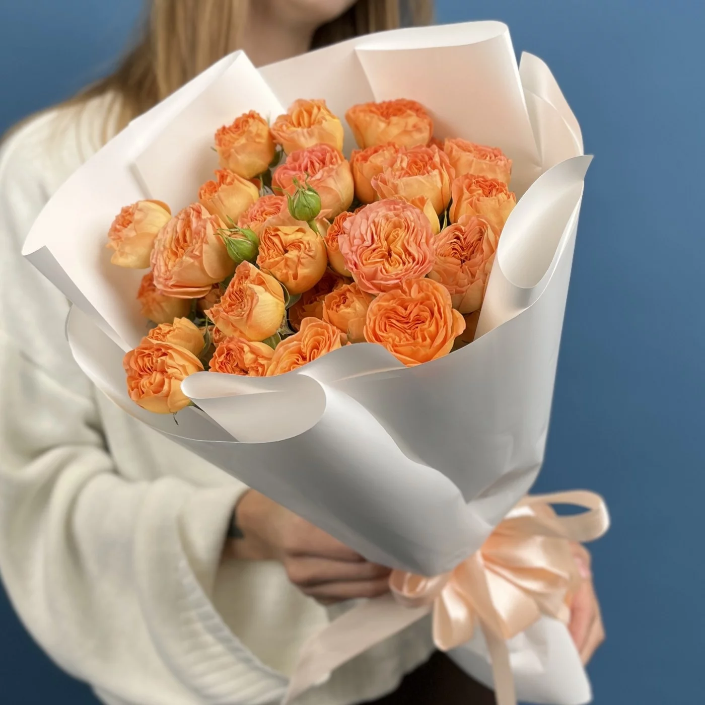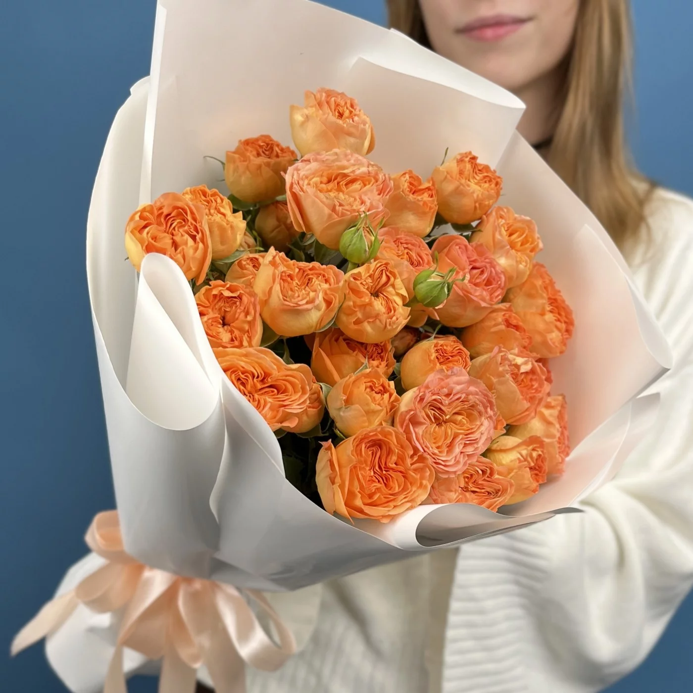 Этот букет из 11 кустовых пионовидных роз Оранж Трендсеттер высотой 50 см — символом страсти, творчества и оптимизма.
