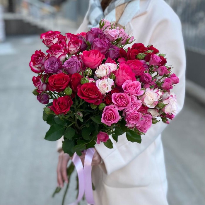 Букет из микса кустовых роз станет замечательным подарком любимому человеку.