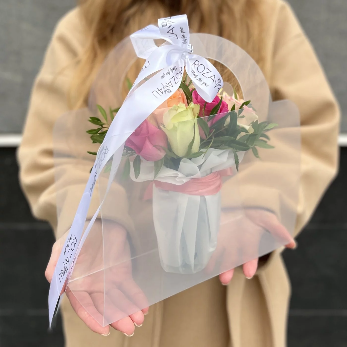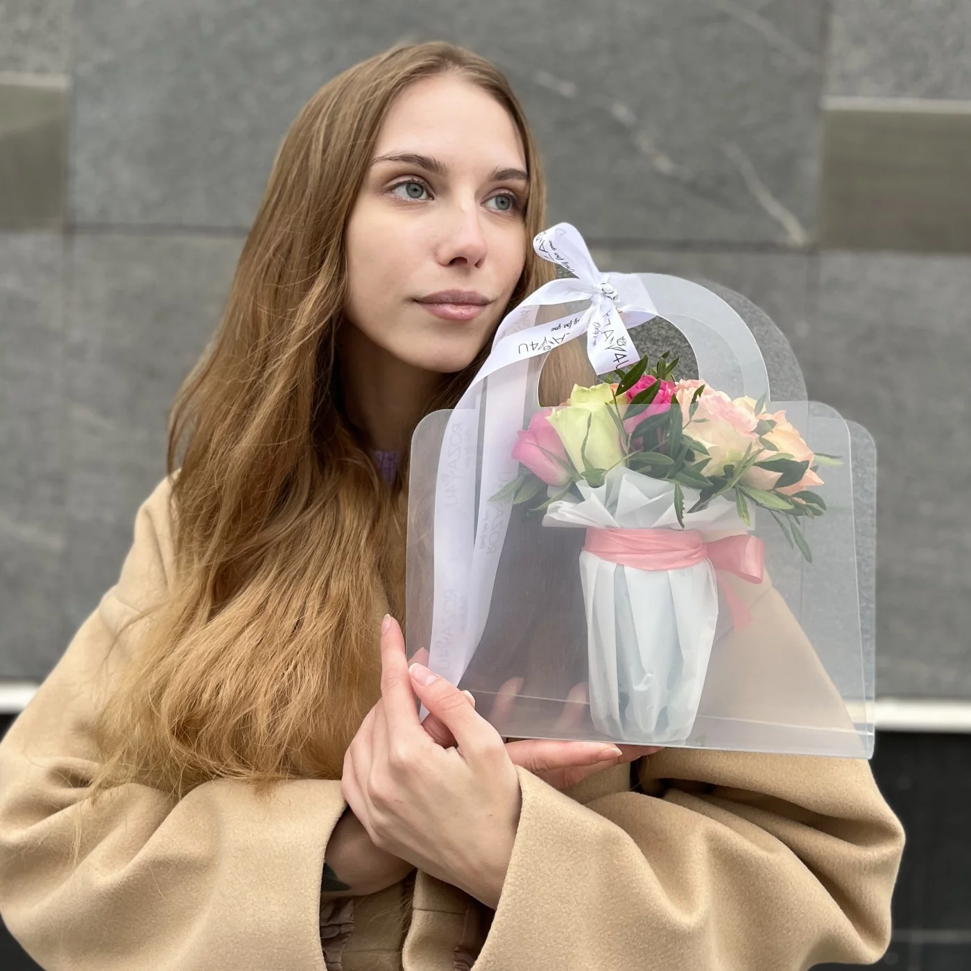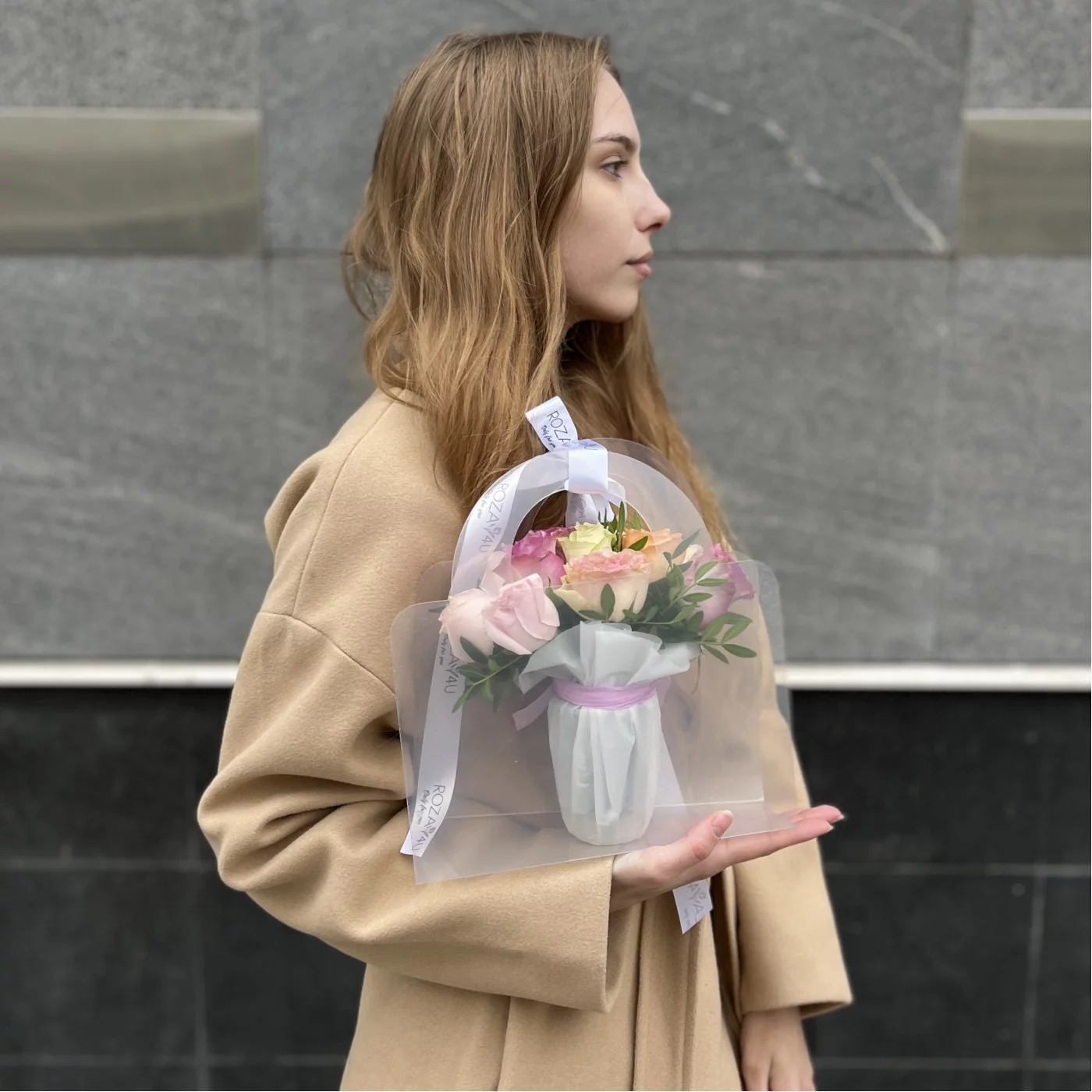 Нежная композиция в стильной сумочке MIX – это изысканный подарок, который сочетает нежность цветов и оригинальный дизайн. Идеально подходит для создания праздничного настроения и добавления свежести в интерьер.