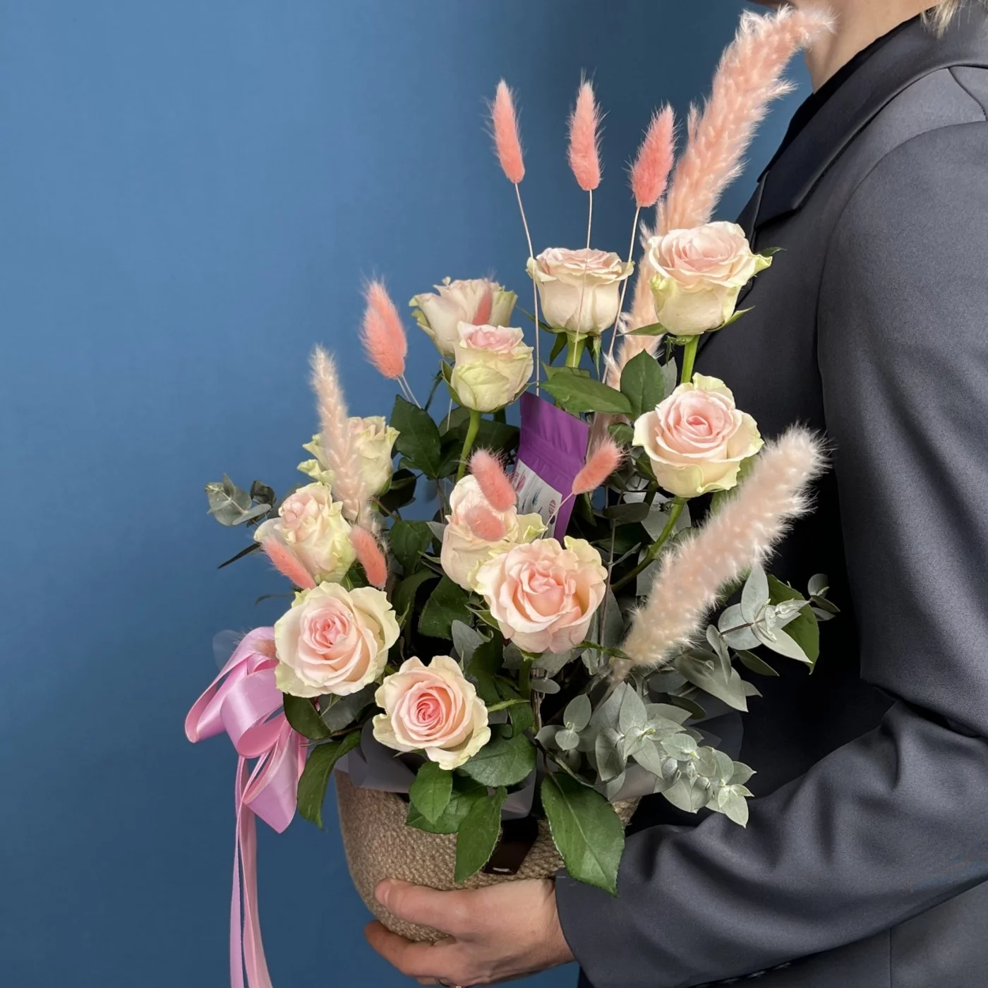 Композиция из 11 нежных роз с чаем «Любимой Бабуле» в кашпо — это идеальный подарок для любых праздников, дней рождения или просто как знак внимания и любви. Она создаст атмосферу уюта и тепла, показывая вашу заботу и благодарность.