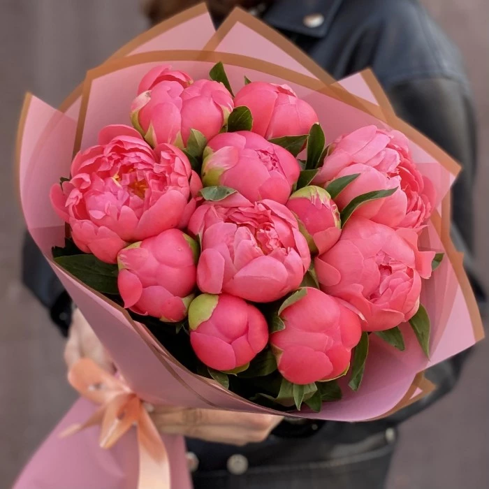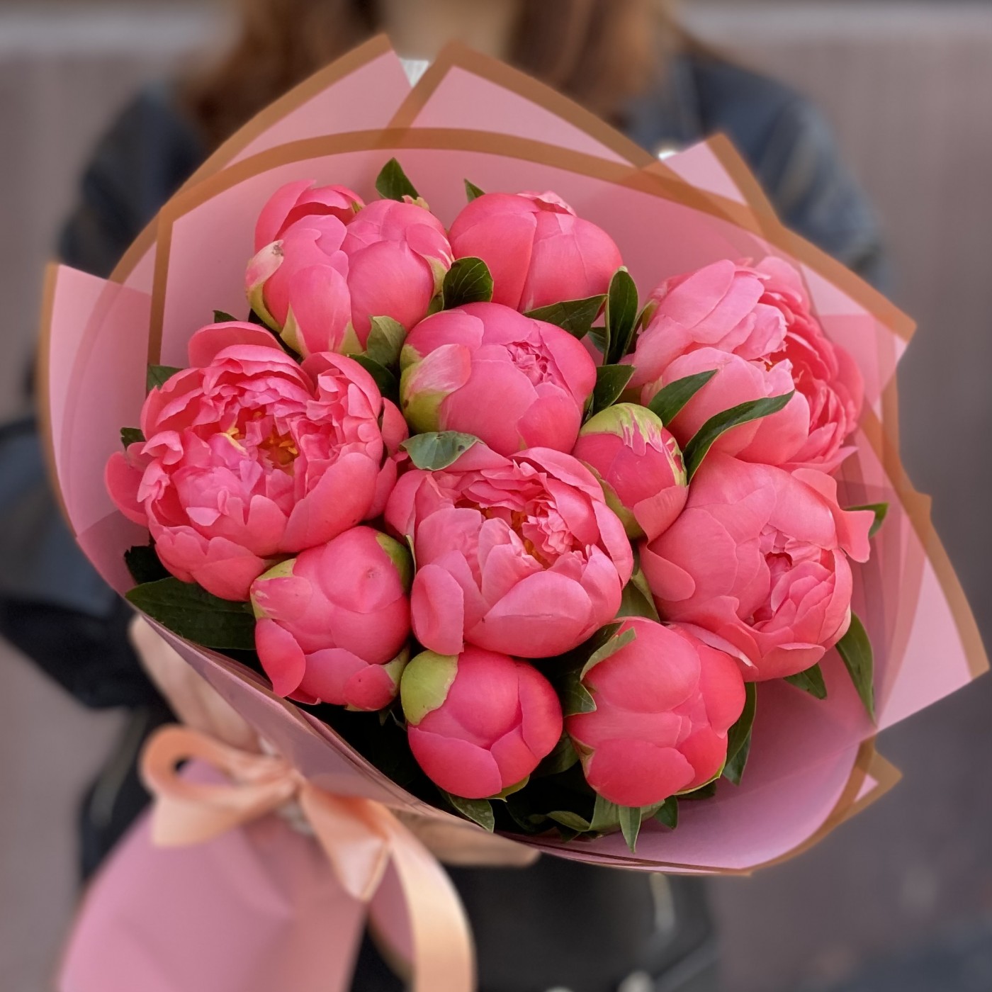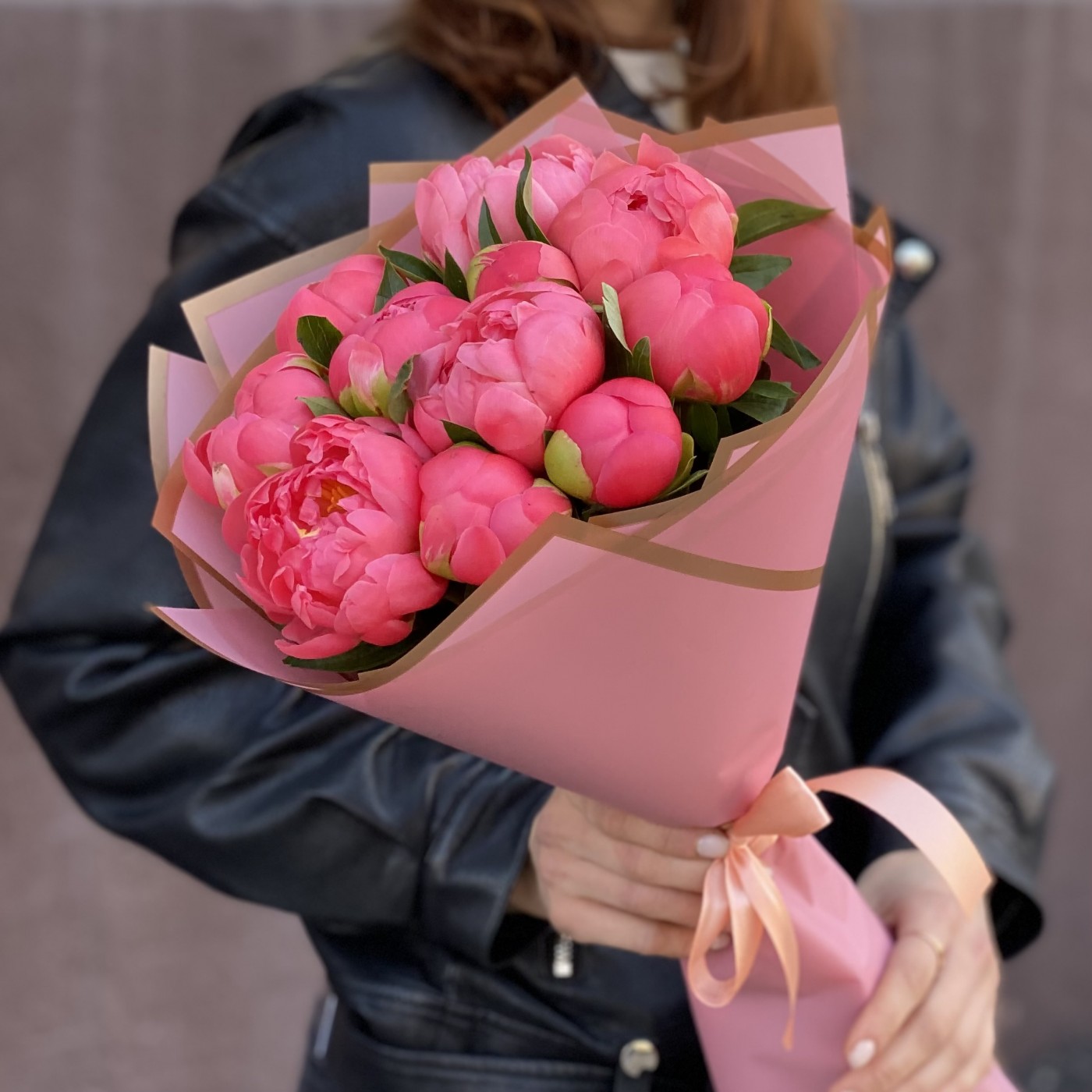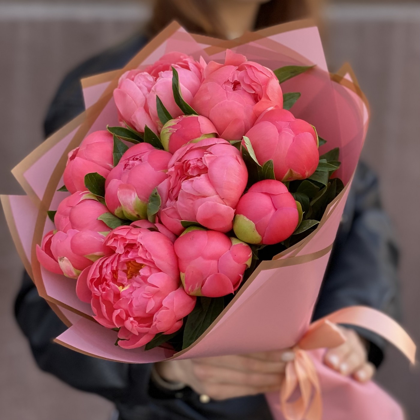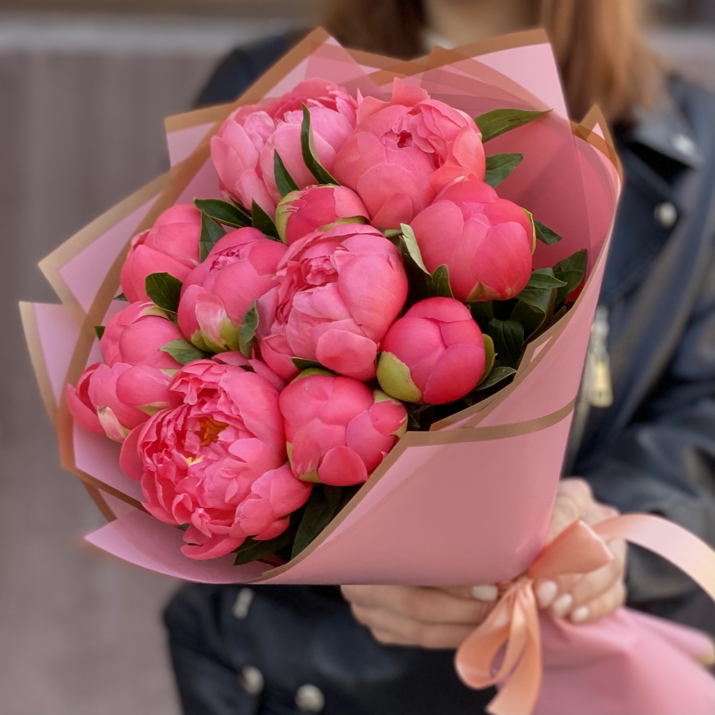 Прекрасный букет из ярких пионов. Порадует любую девушку!