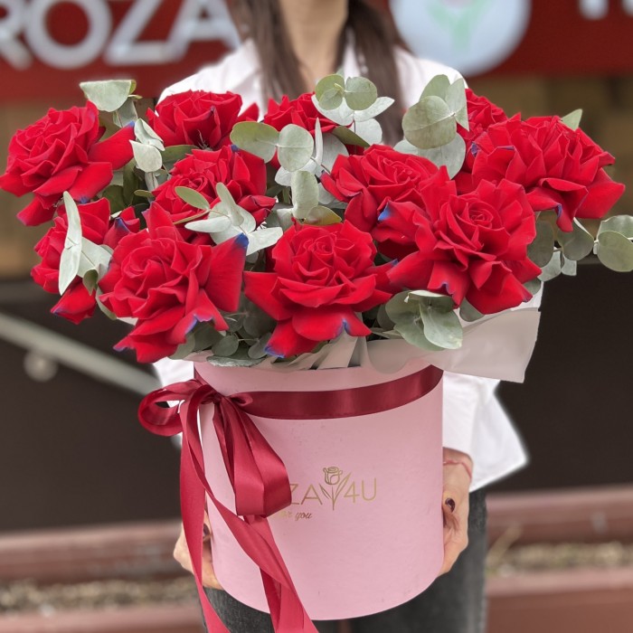 Коробка с 11 пышными красно-синими розами — это необычное и эффектное сочетание, которое сразу привлекает внимание и вызывает восхищение! Красные розы символизируют страсть, любовь и глубокие чувства, а синие розы — загадочность, мечты и уникальность.