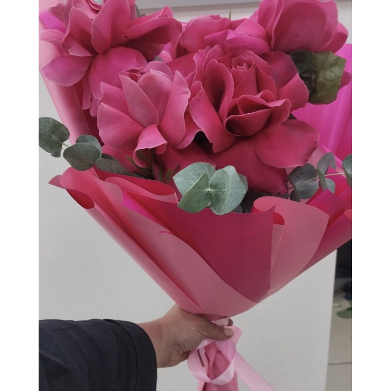Яркий малиновый цвет роз символизирует страсть, любовь и радость, что делает их идеальными для подарка на любой праздник или романтический жест.
