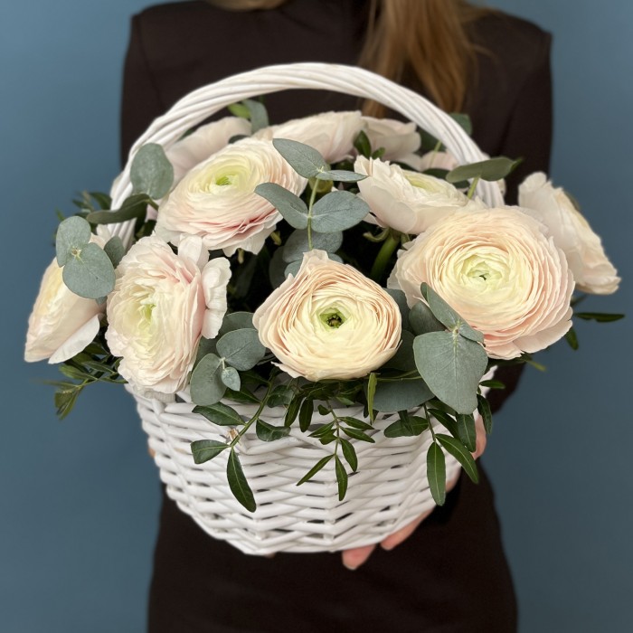 11 пышных ранункулюсов Ханой в корзине