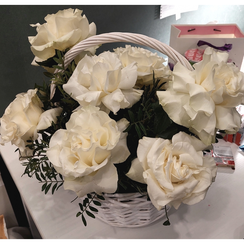 11 пышных роз Мондиаль в корзине станет прекрасным подарком для любого особого случая, добавляя атмосферу праздника и радости.