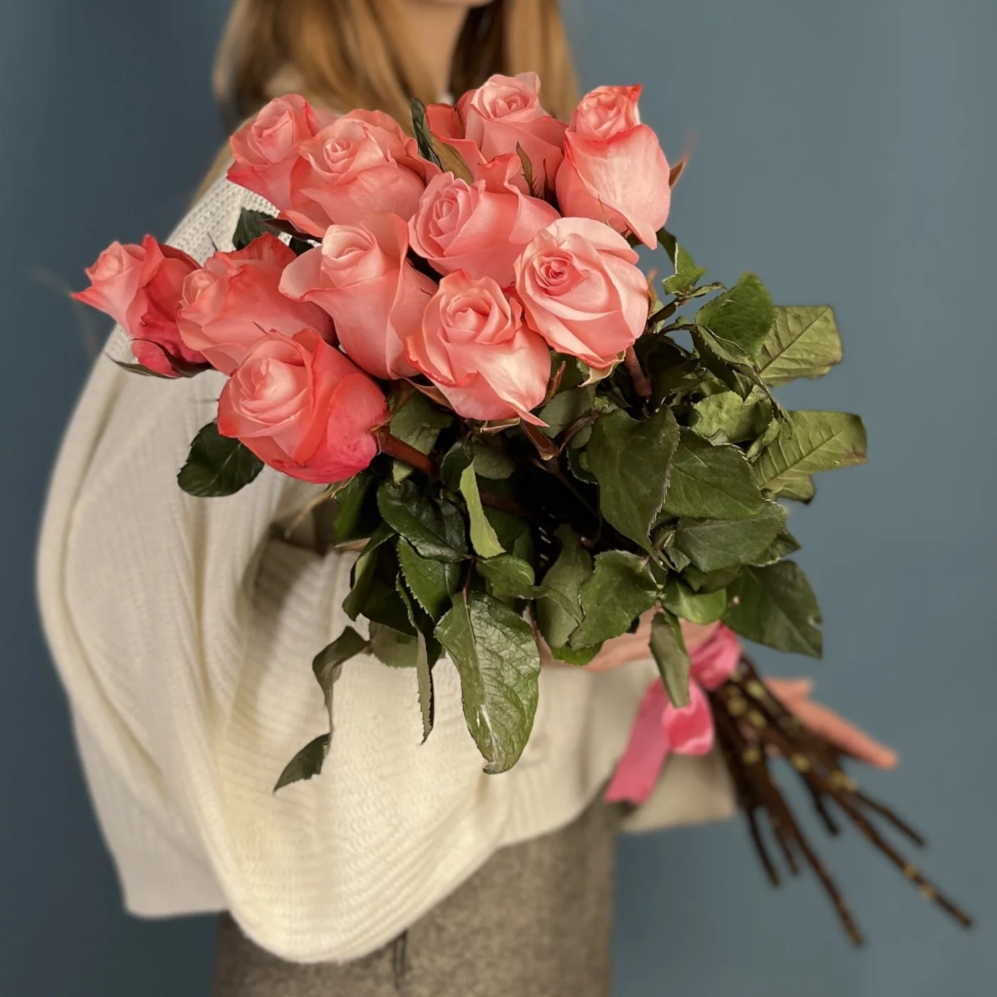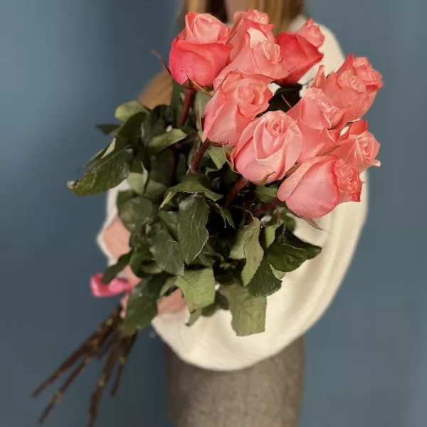 11 розовых роз Би Свит 80 см
