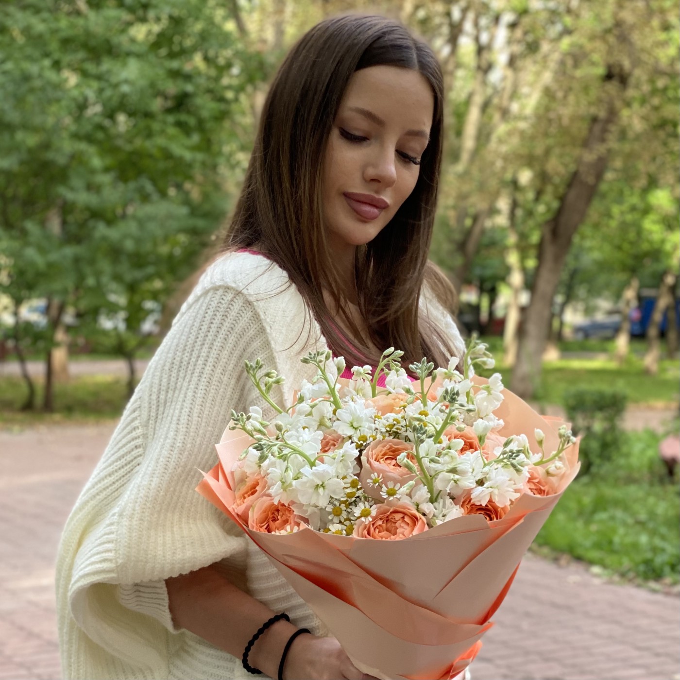 Вы можете заказать доставку букета по любому адресу в пределах Москвы и ближайшего Подмосковья. Курьер привезет цветы в лучшем виде и в точно оговоренное время.
