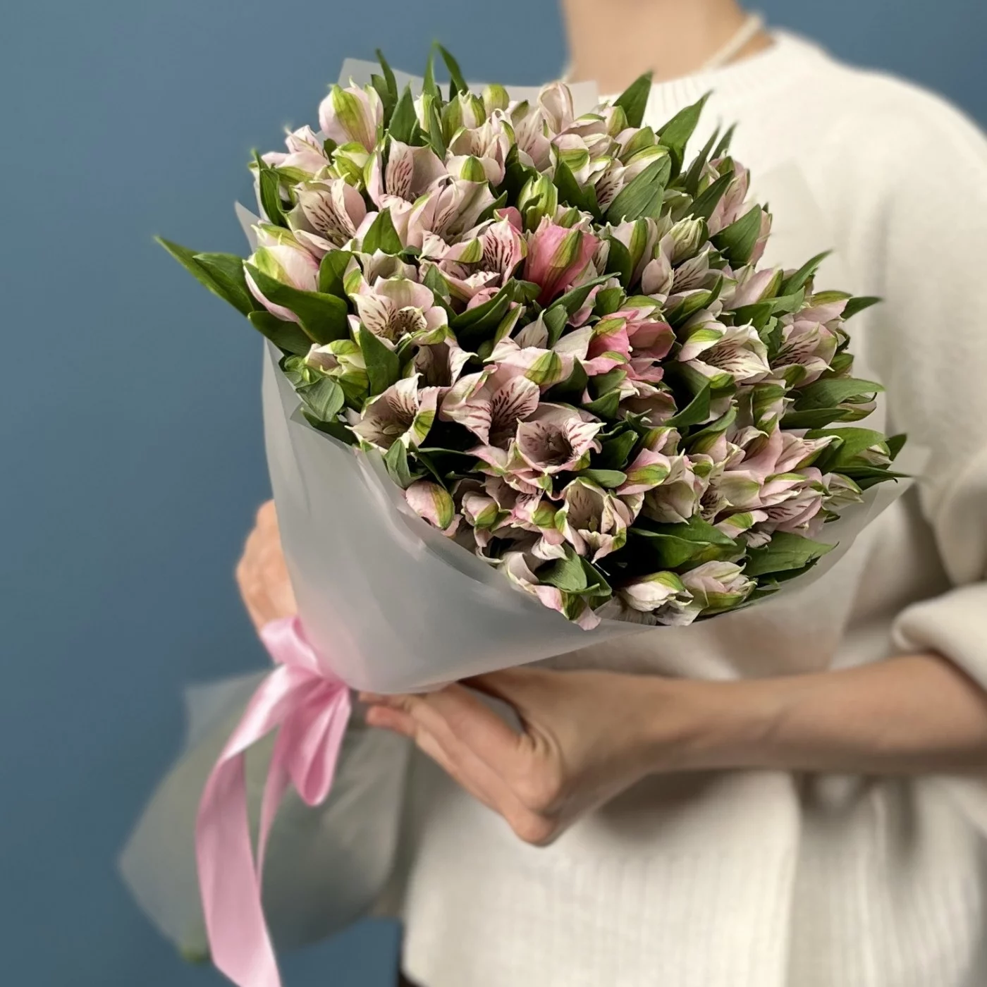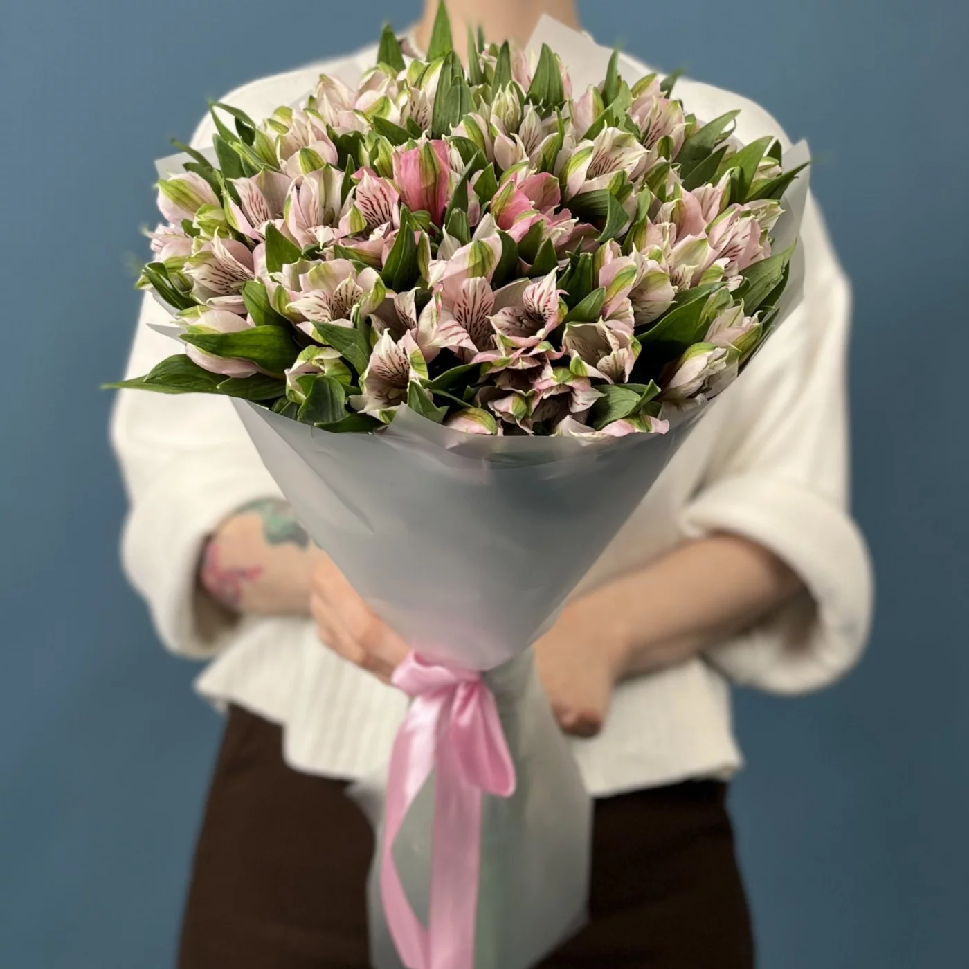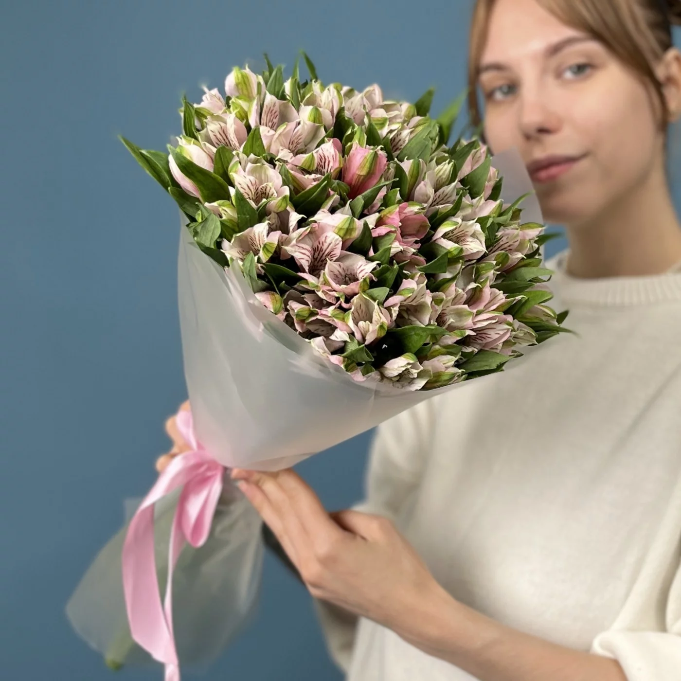 15 бело-розовых альстромерий — это стильный, объёмный и элегантный букет, который подарит радость, тепло и подчеркнёт искренность ваших чувств. Идеальный выбор для тех, кто ценит изящество и свежесть в цветочных подарках.