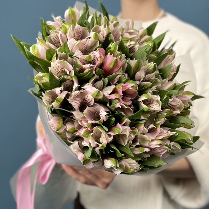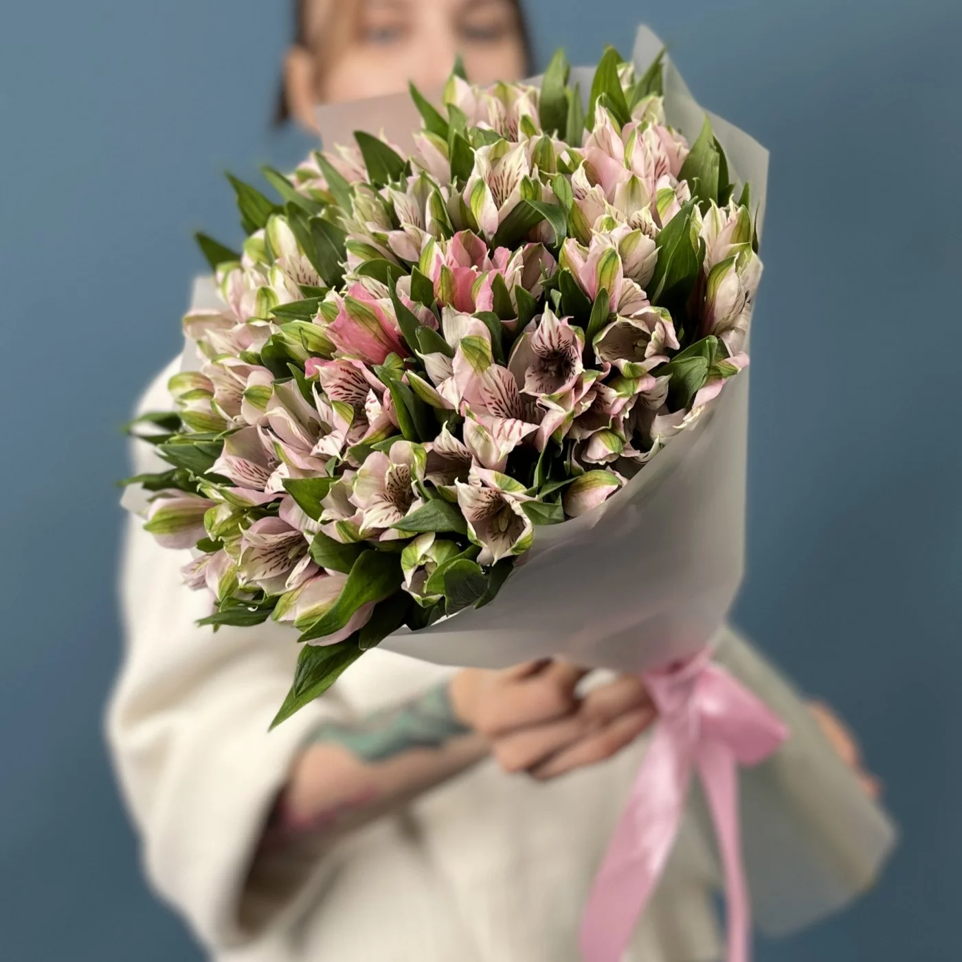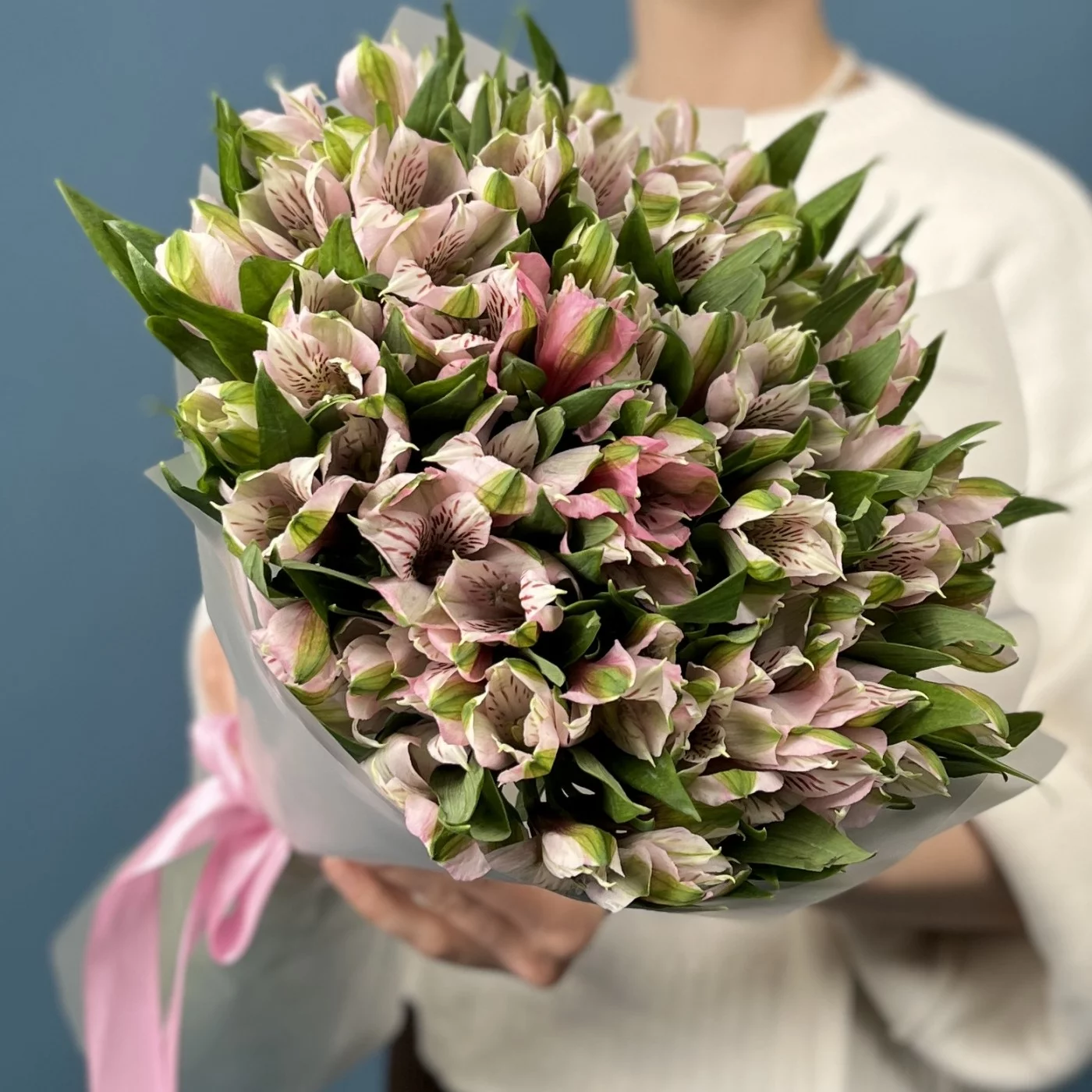 15 бело-розовых альстромерий — это стильный, объёмный и элегантный букет, который подарит радость, тепло и подчеркнёт искренность ваших чувств. Идеальный выбор для тех, кто ценит изящество и свежесть в цветочных подарках.