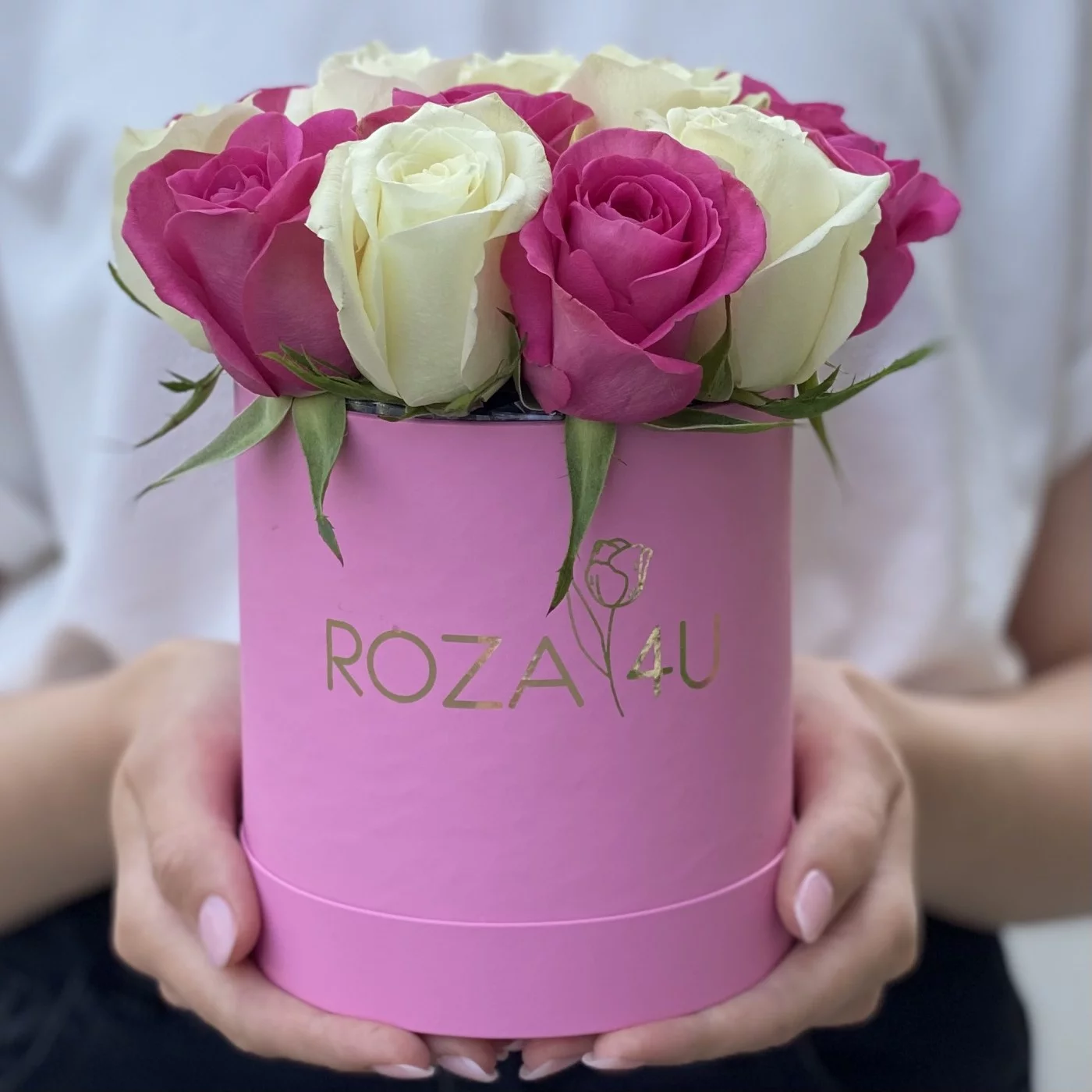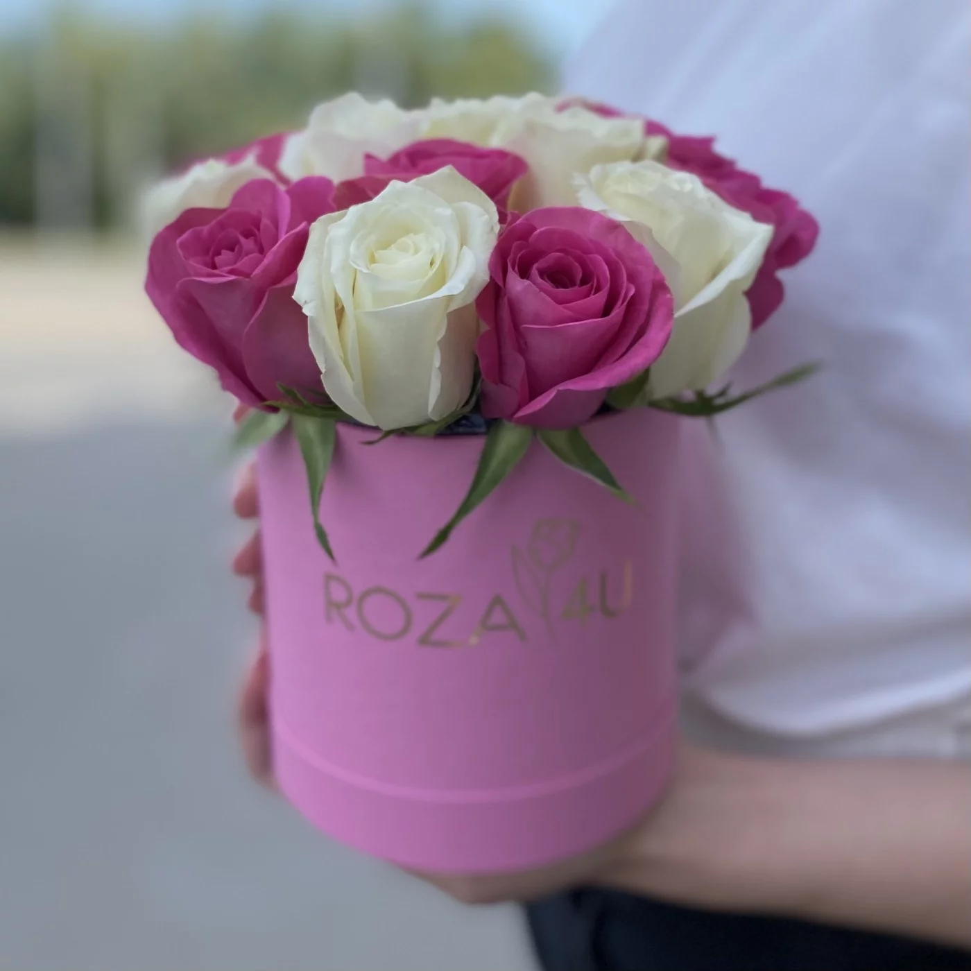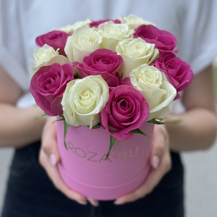 Композиция из нежных роз с крупными, яркими цветочными головками. Преподнесите этот подарок той, которую любите и цените. 15 роз в круглой коробке - изысканный комплимент женской красоте, который создаст радостное настроение!