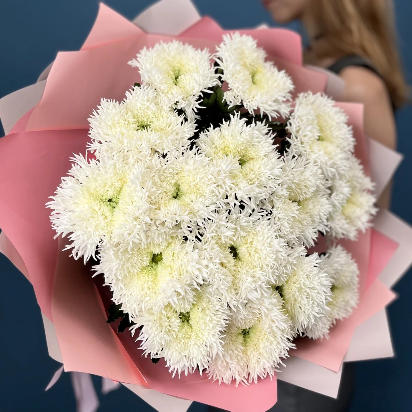 15 белых пушистых хризантем Этруско — это изысканный букет, наполненный нежностью и элегантностью. Эти крупные, объемные соцветия с мягкой пушистой текстурой символизируют чистоту и искренние чувства. Их классический белый цвет идеально подходит для торжественных мероприятий, поздравлений или украшения интерьера. Такой букет подчеркнет утонченность и создаст атмосферу спокойствия и гармонии, делая любой момент особенным и запоминающимся.