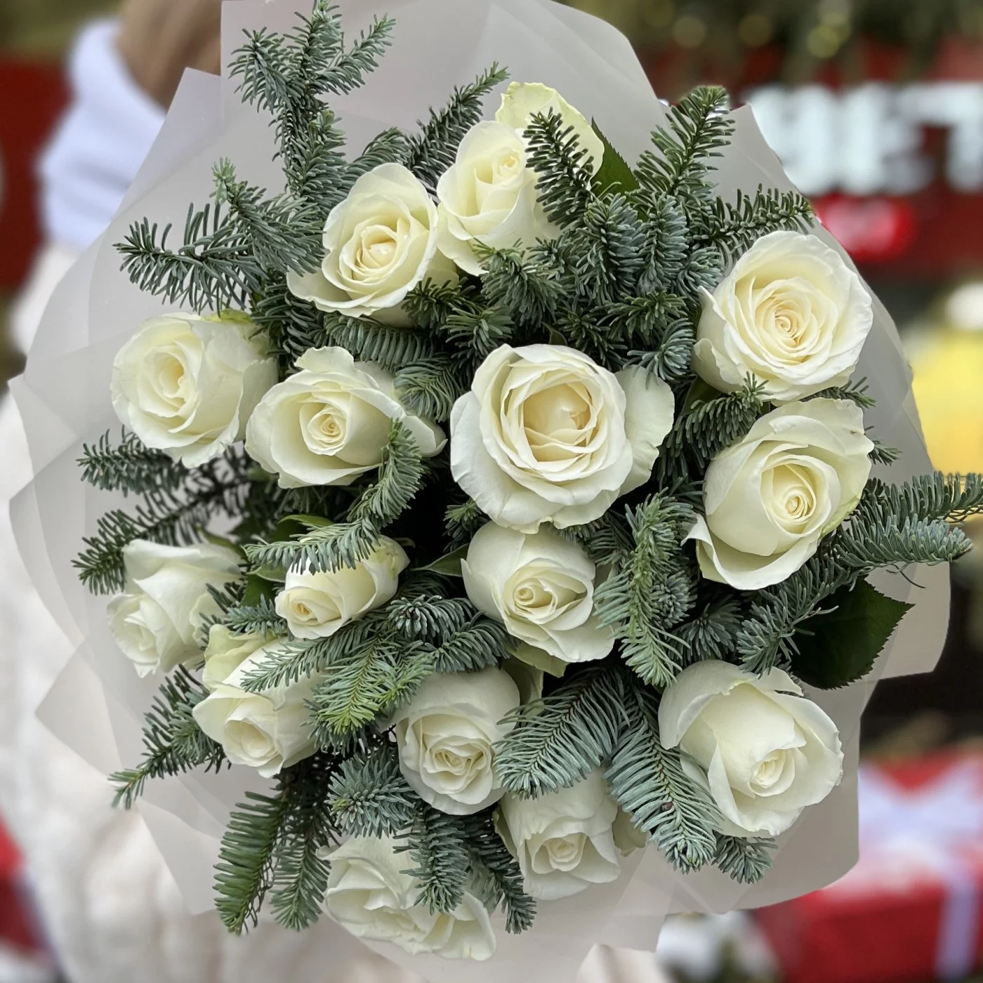 15 белых роз с нобилисом