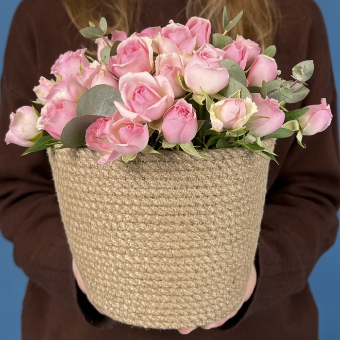 Этот аккуратный и стильный комплект включает 15 кустовых роз сорта Динара в кашпо. Нежные розовые оттенки и пышные соцветия создают атмосферу уюта и нежности. Такой дизайн идеально подходит для украшения интерьера, балкона или террасы, добавляя свежести и красоты в любое пространство. Простота ухода и привлекательный внешний вид делают этот комплект отличным подарком или самостоятельным украшением дома.