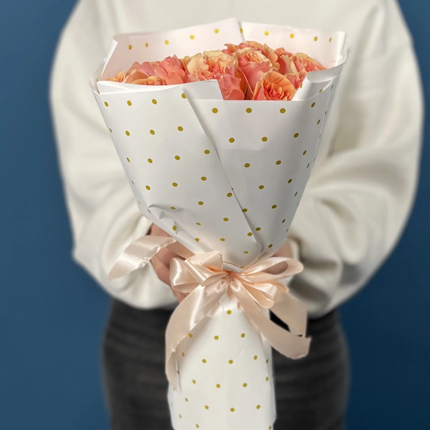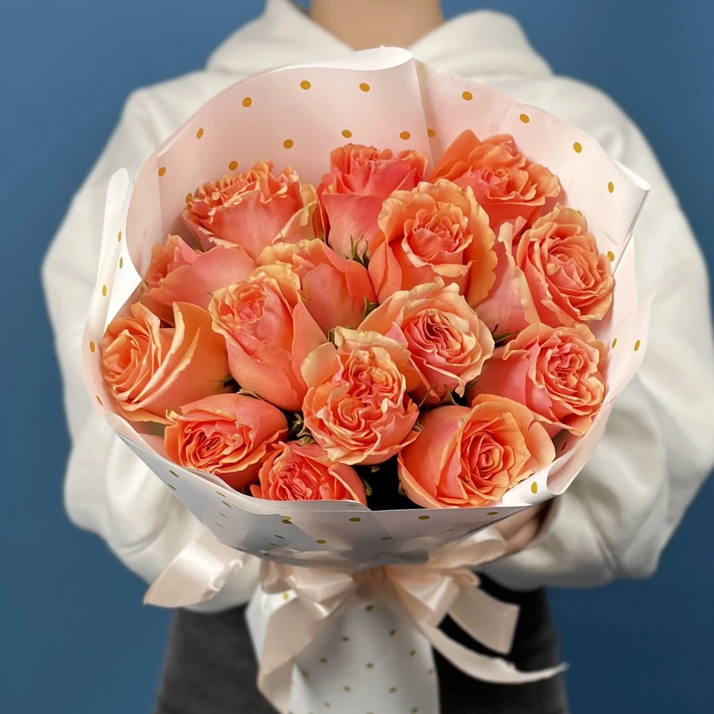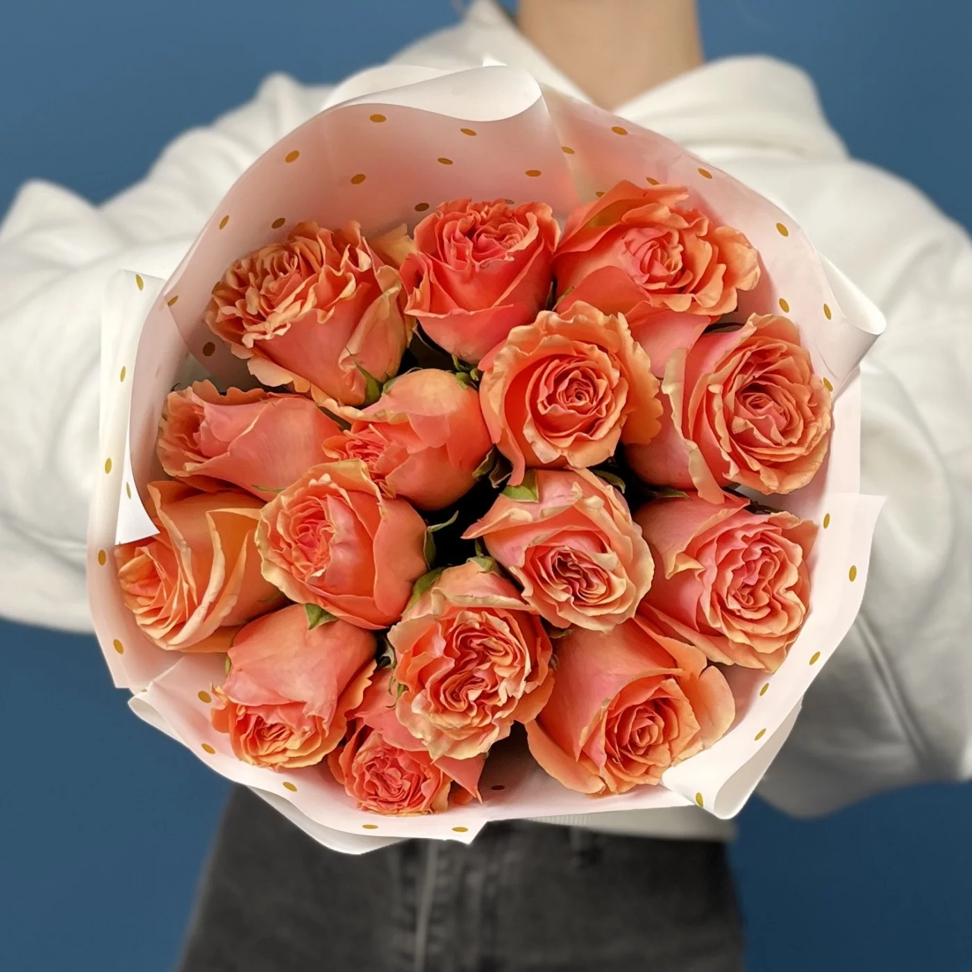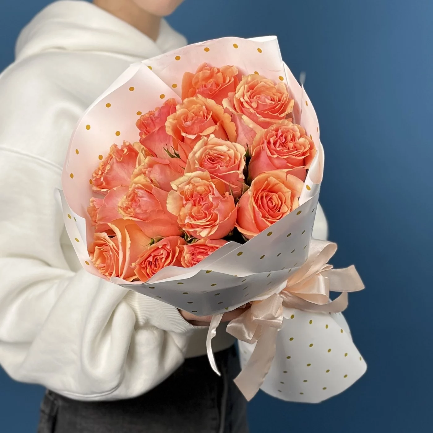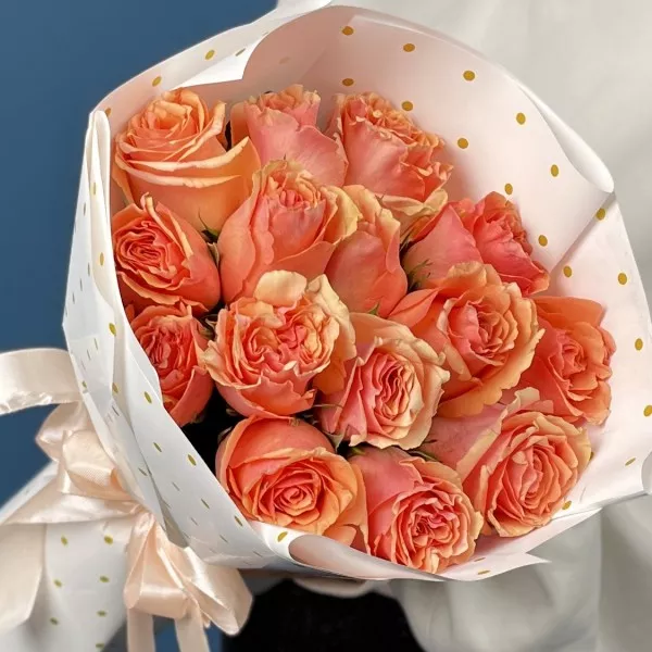Изящный букет из 15 роз сорта Верона с длиной стебля 40 см. Нежные кораллово-кремовые оттенки создают теплую, романтичную атмосферу. Идеальный подарок для особых событий или украшения интерьера, наполненного утонченностью и светом.