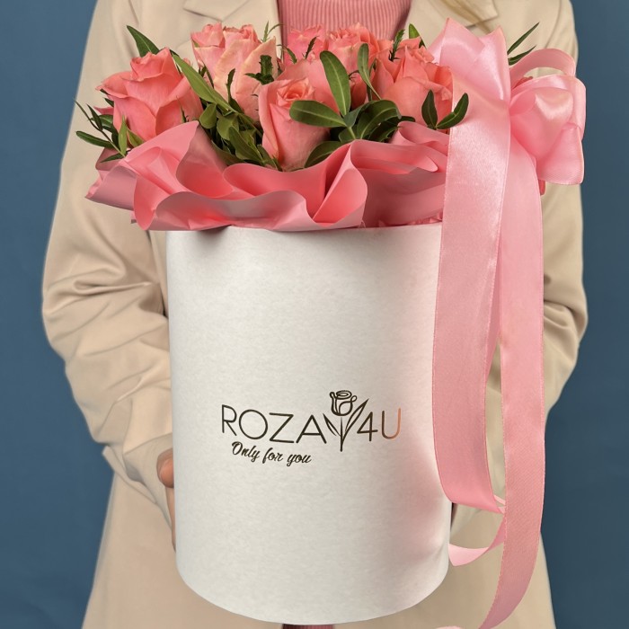 Букет из 15 коралловых роз сорта Эйс Пинк в коробке — это яркая и стильная композиция, которая станет замечательным подарком для любого случая.
