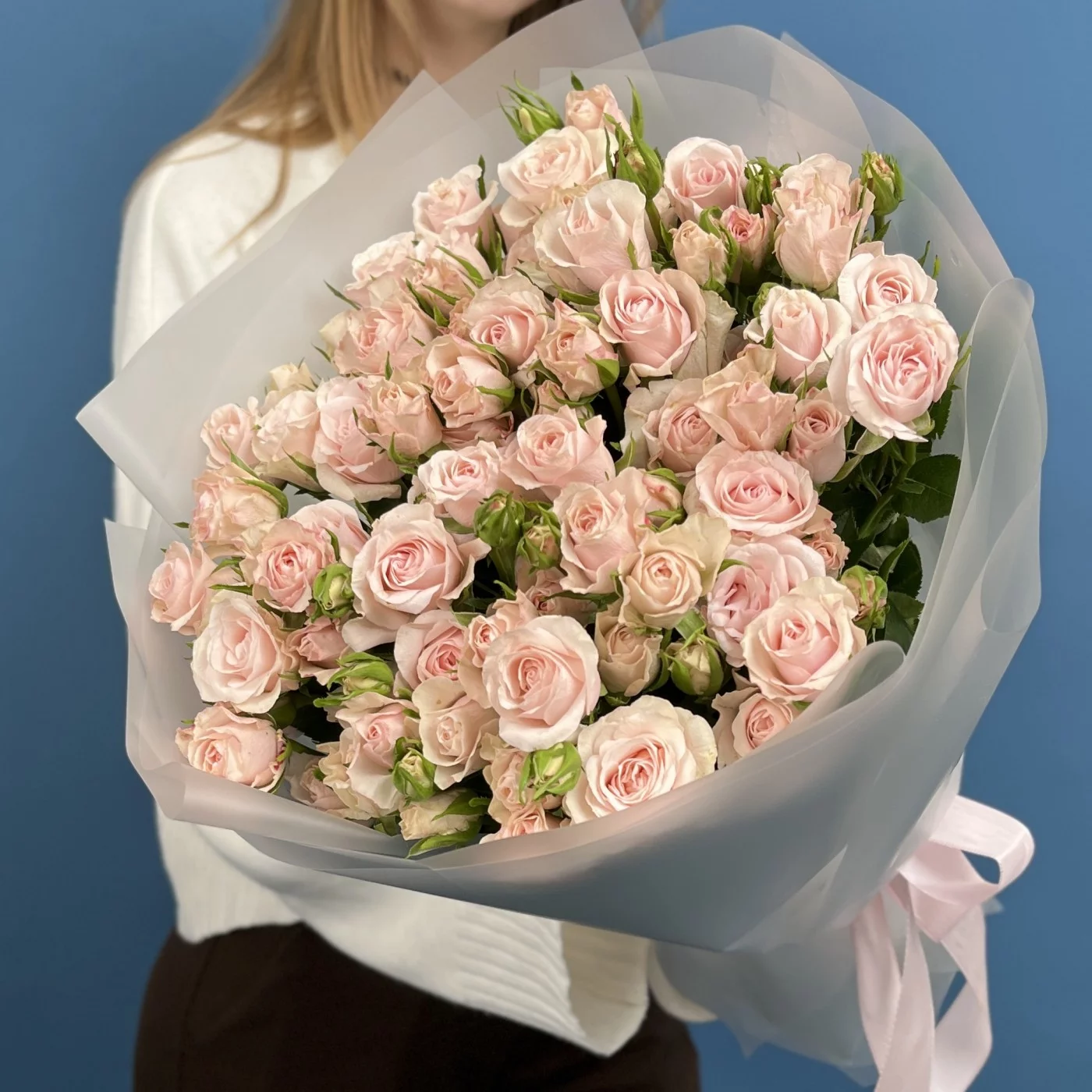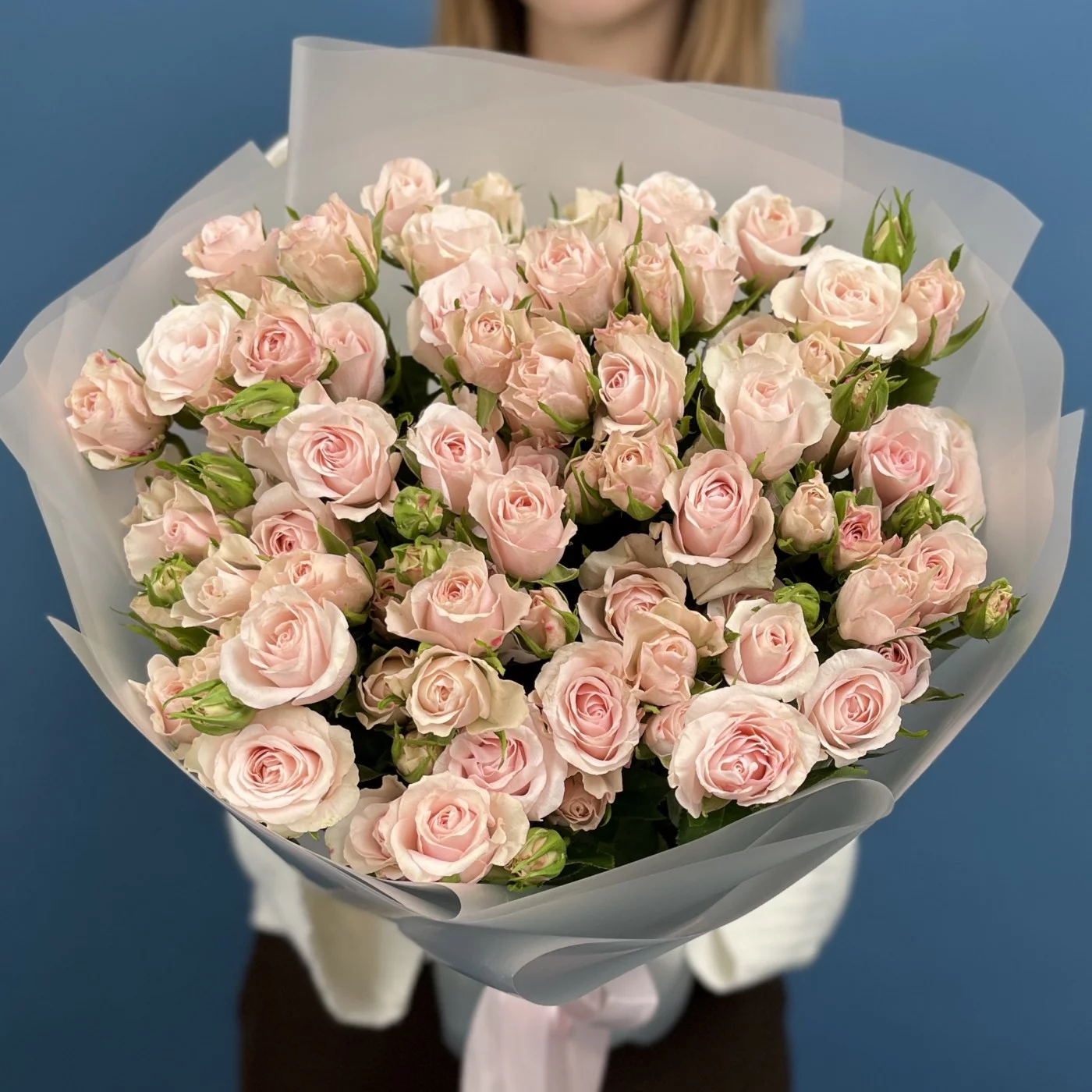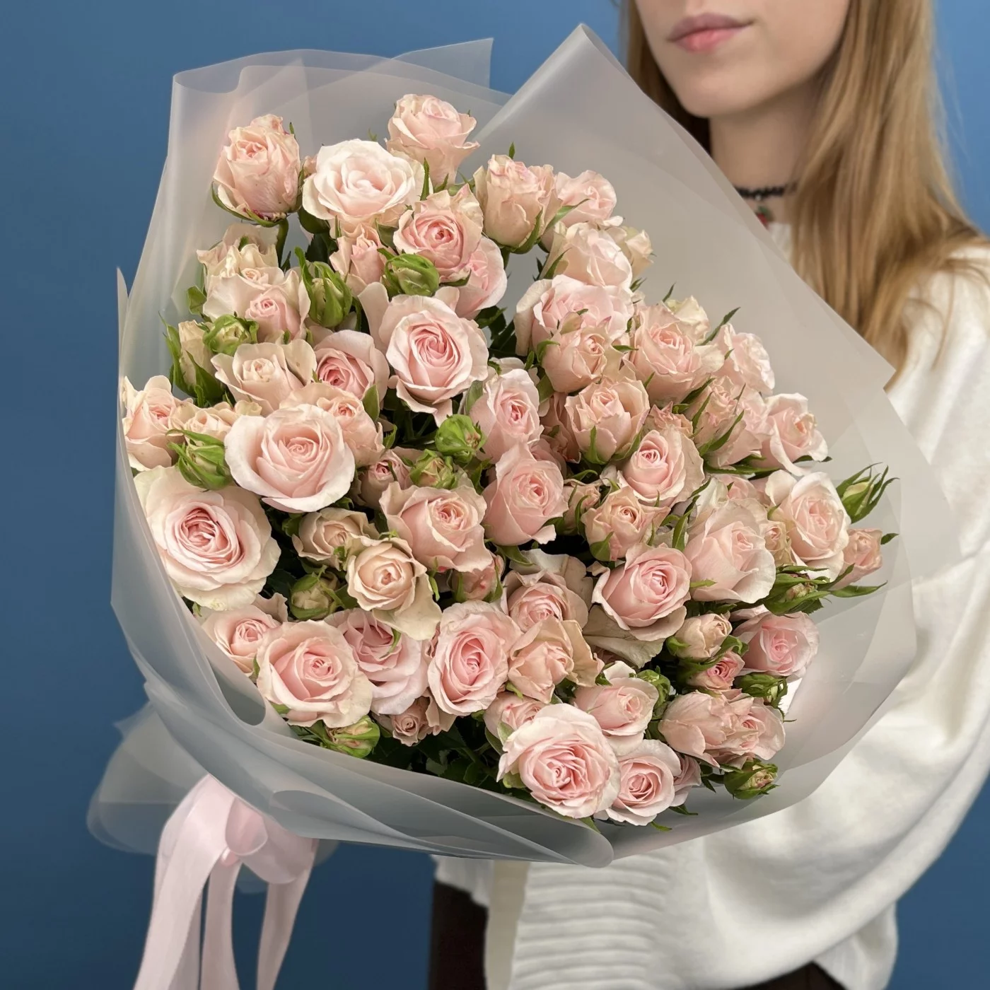 Кремово-розовые розы передают чувства нежности, любви и уважения. Такой букет отлично подходит для романтических и дружеских поздравлений.