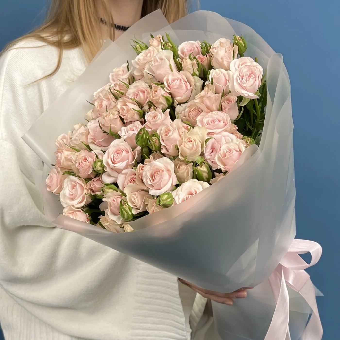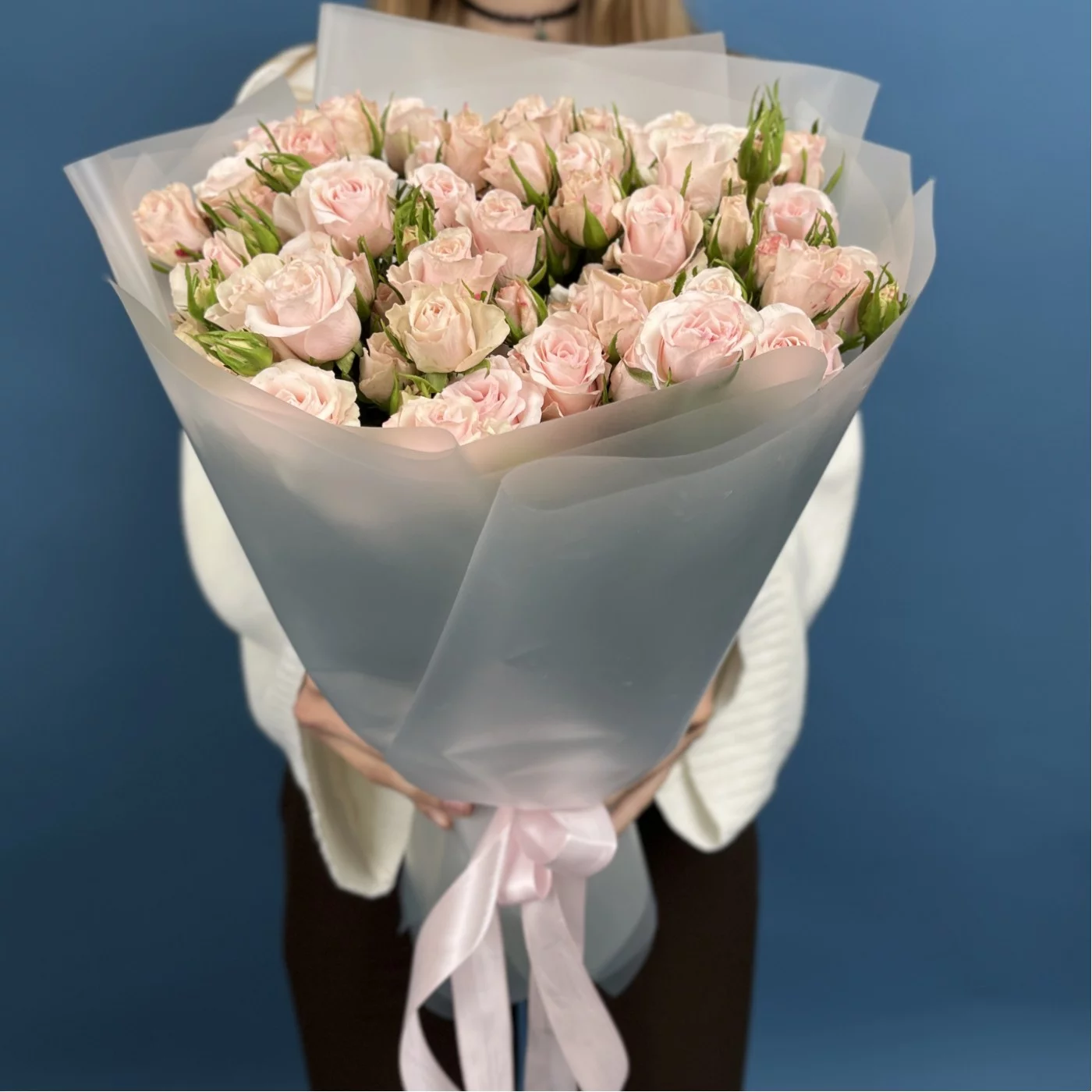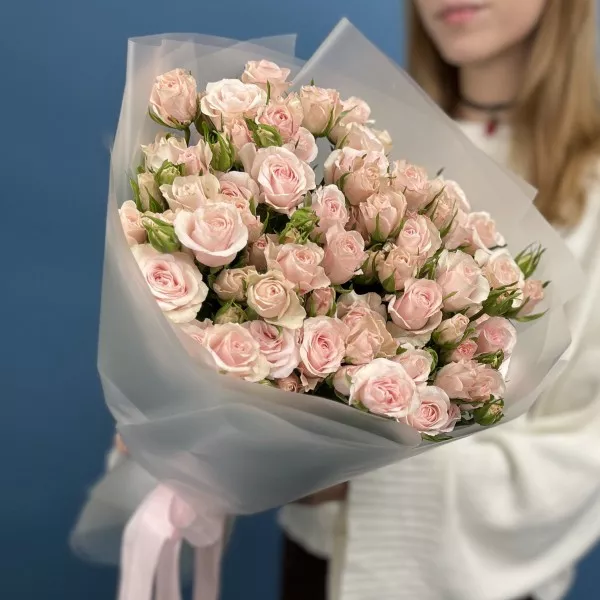 Кремово-розовые розы передают чувства нежности, любви и уважения. Такой букет отлично подходит для романтических и дружеских поздравлений.