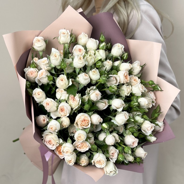 Подарите букет из 15 кустовых кремовых роз Сансер 60 см и позвольте его нежности и элегантности создать атмосферу любви и счастья.