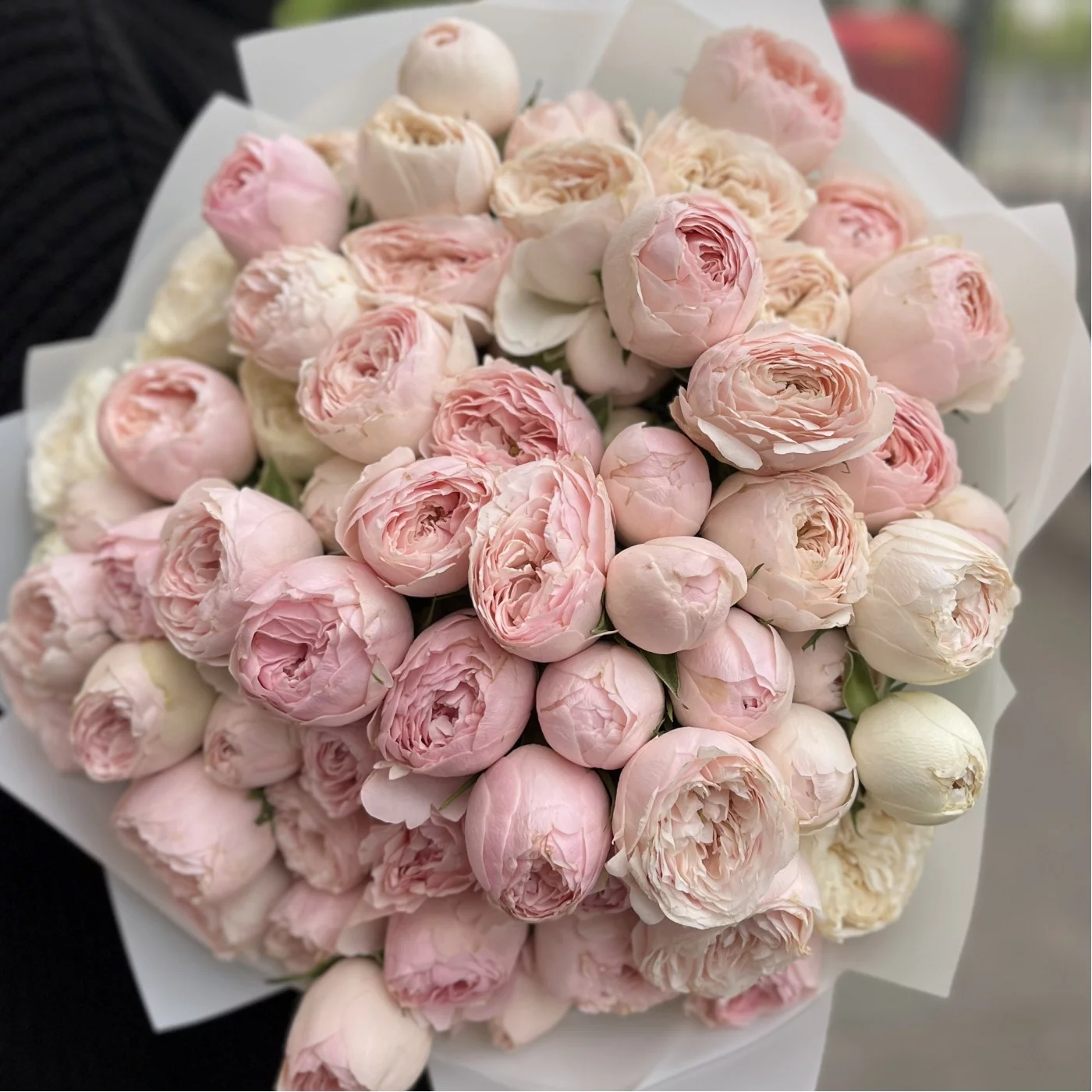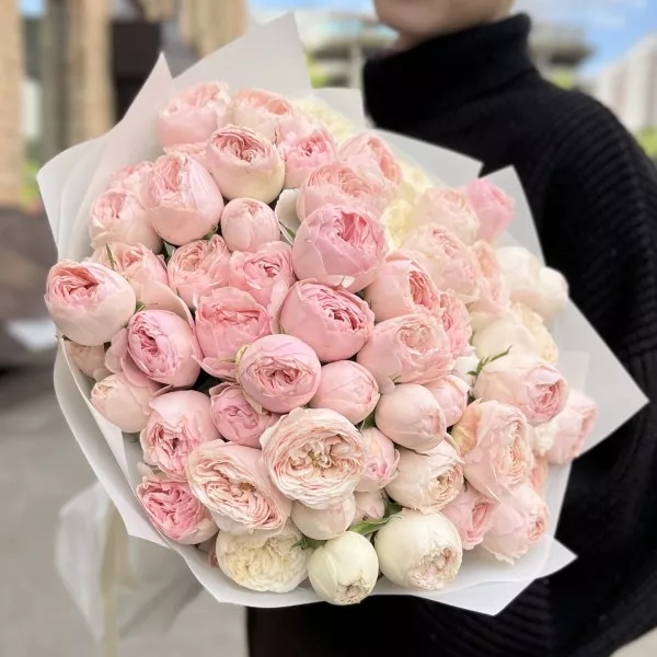Букет из 15 кустовых пионовидных роз Мансфилд Парк высотой 50 см — это роскошная композиция, которая завораживает своей красотой и изяществом. Эти розы с нежными оттенками создают атмосферу романтики и уюта. Такой букет станет великолепным подарком для особых случаев или элегантным украшением интерьера, подчеркивая важность момента и ваши искренние чувства.