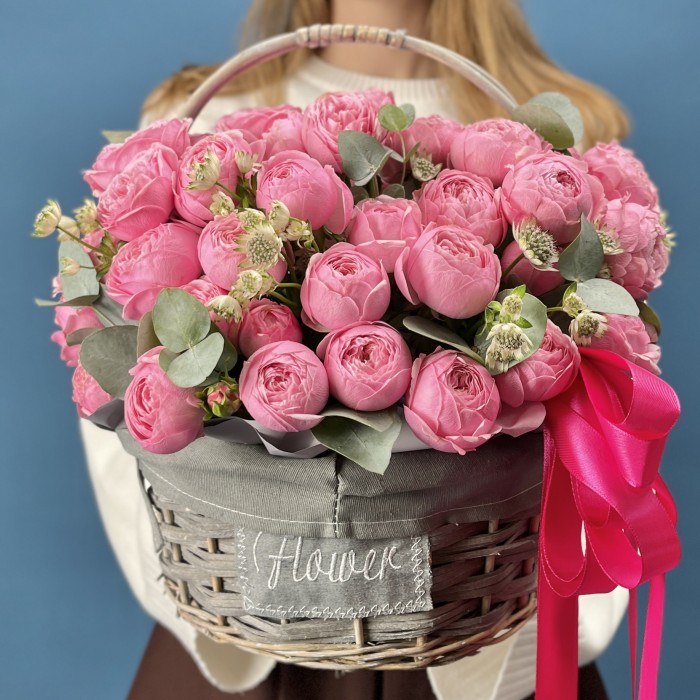 15 кустовых пионовидных роз Мансфилд Пинк Парк в корзине — это не только красивый элемент декора, но и способ выразить свои чувства и создать незабываемые моменты.