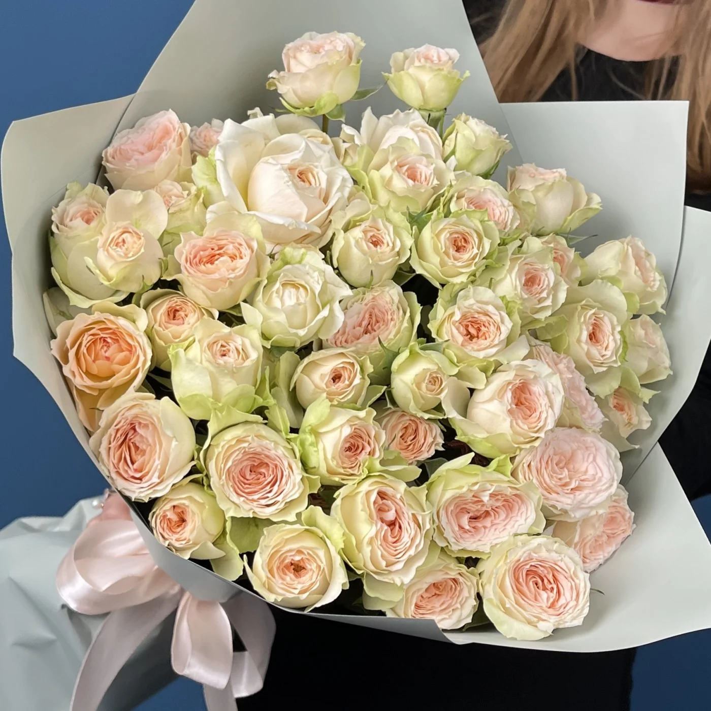 Букет из 15 кустовых персиково-зелёных роз Павлова высотой 50 см — это воплощение утончённости, гармонии и природной свежести. Нежные бутоны с мягким переходом оттенков от зелёного к персиковому создают ощущение лёгкости и внутреннего света. Каждая роза словно создана, чтобы напоминать о тепле, нежности и искренних чувствах. Композиция выглядит безупречно и естественно, излучая спокойствие и элегантность, а её нежные тона наполняют день радостью и вдохновением. Такой букет станет идеальным подарком для любимой, мамы, невесты, подруги или коллеги, прекрасно подойдёт к дню рождения, годовщине, свадьбе или просто как знак внимания. Мы осуществляем доставку по Москве и области круглосуточно, гарантируем свежесть и отличное качество цветов. Наши клиенты отмечают лучшие цены и отличные отзывы о нас во всех поисковиках — ведь истинная красота, выраженная в цветах, всегда говорит без слов.