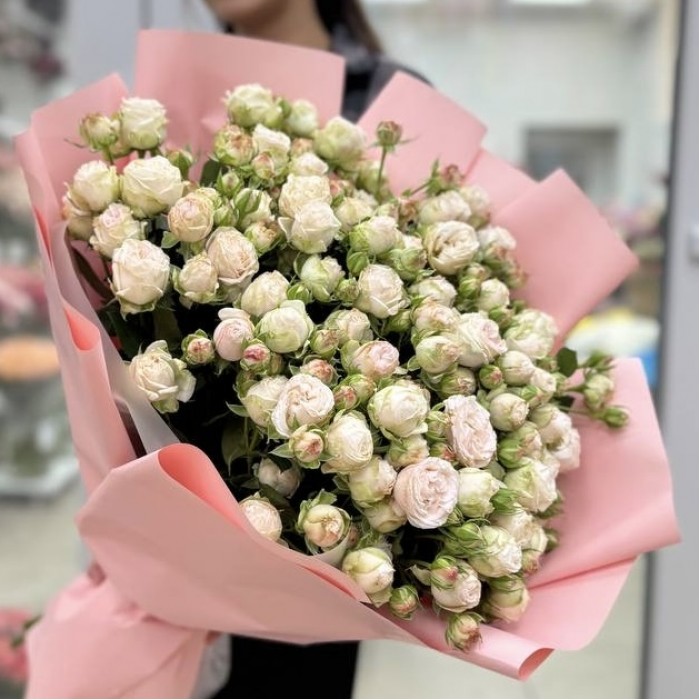 Букет из 15 кустовых пионовидных роз сорта Принцесс Бомбастик 70 см — это великолепный и роскошный подарок, который станет настоящим украшением любого события.