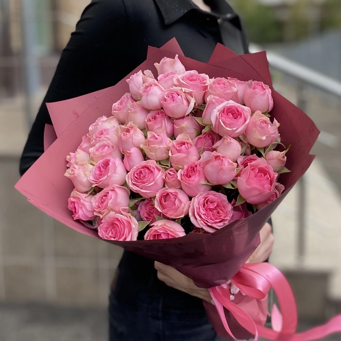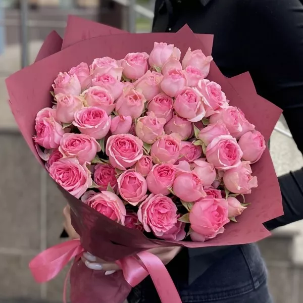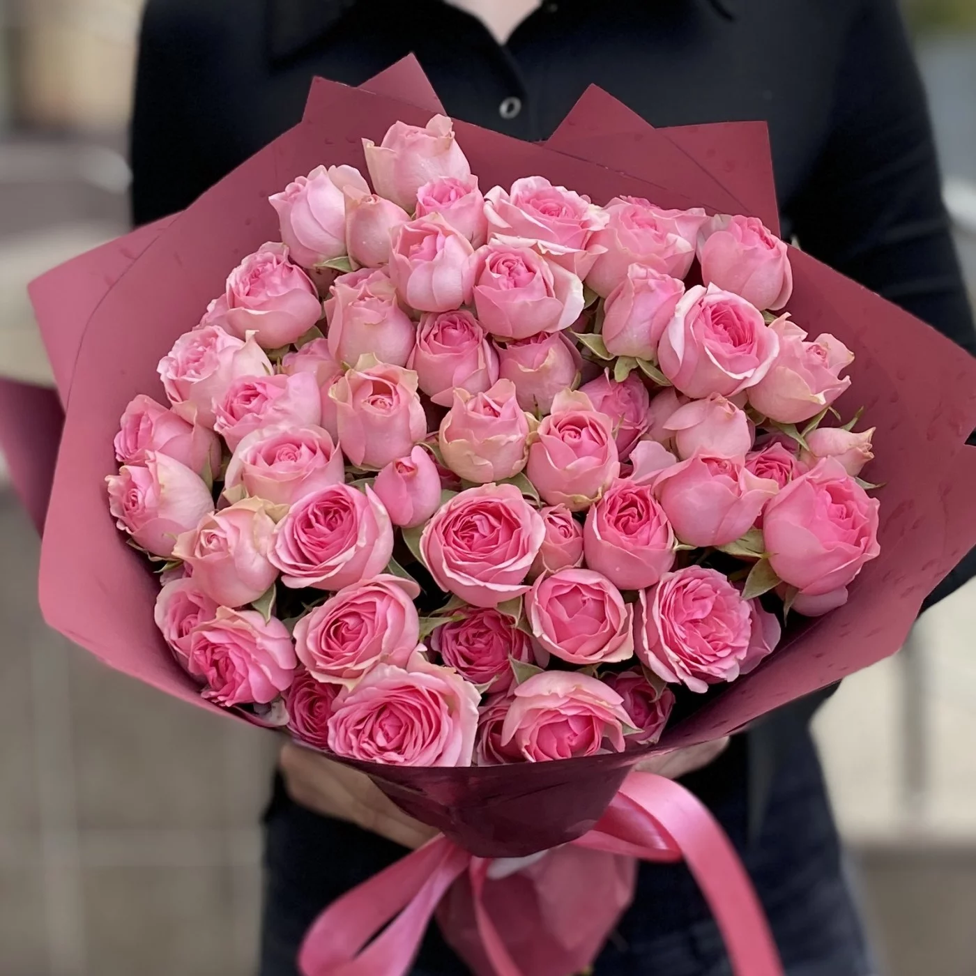 Букет из кустовых роз Динара - пышные розовые бутоны обязательно оценят те, кому Вы преподнесёте их в подарок.