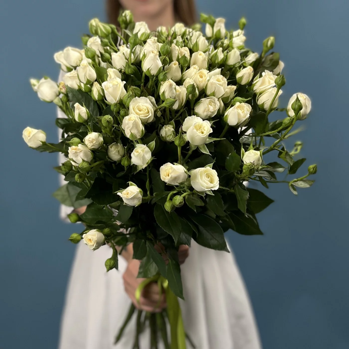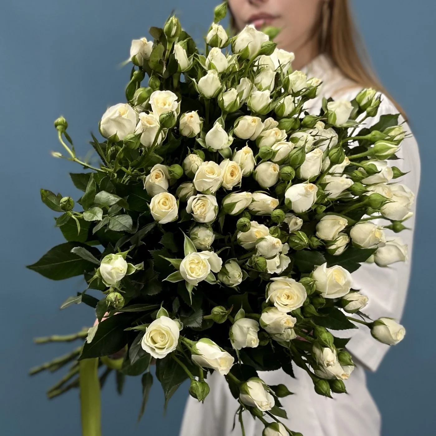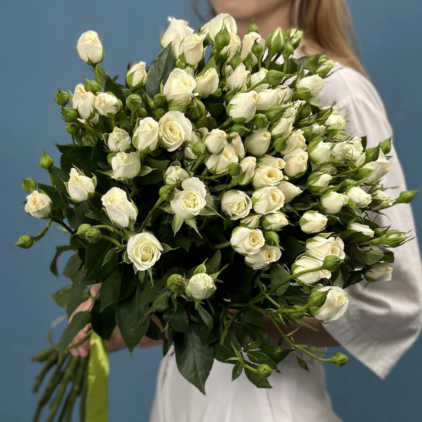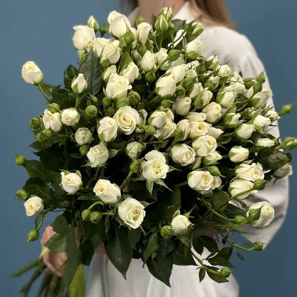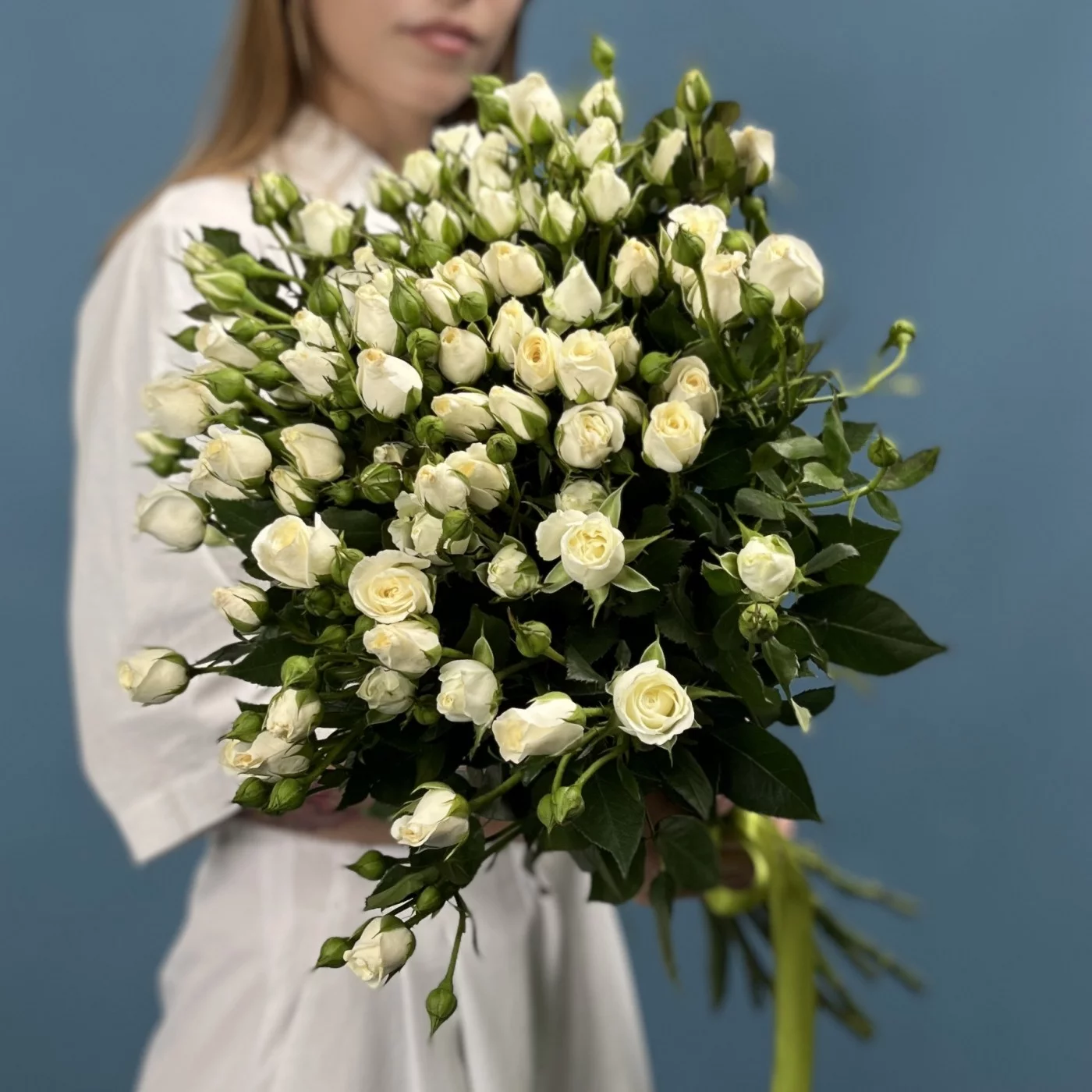 Очаровательный букет из 15 кустовых роз сорта Сноу Бабл высотой 70 см — это роскошная и элегантная композиция, которая подчеркнет ваши искренние чувства.