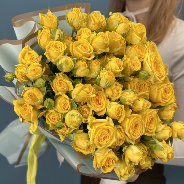 15 кустовых желтых роз Еллоу Бейби 50 см