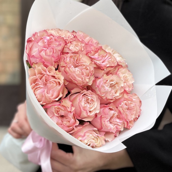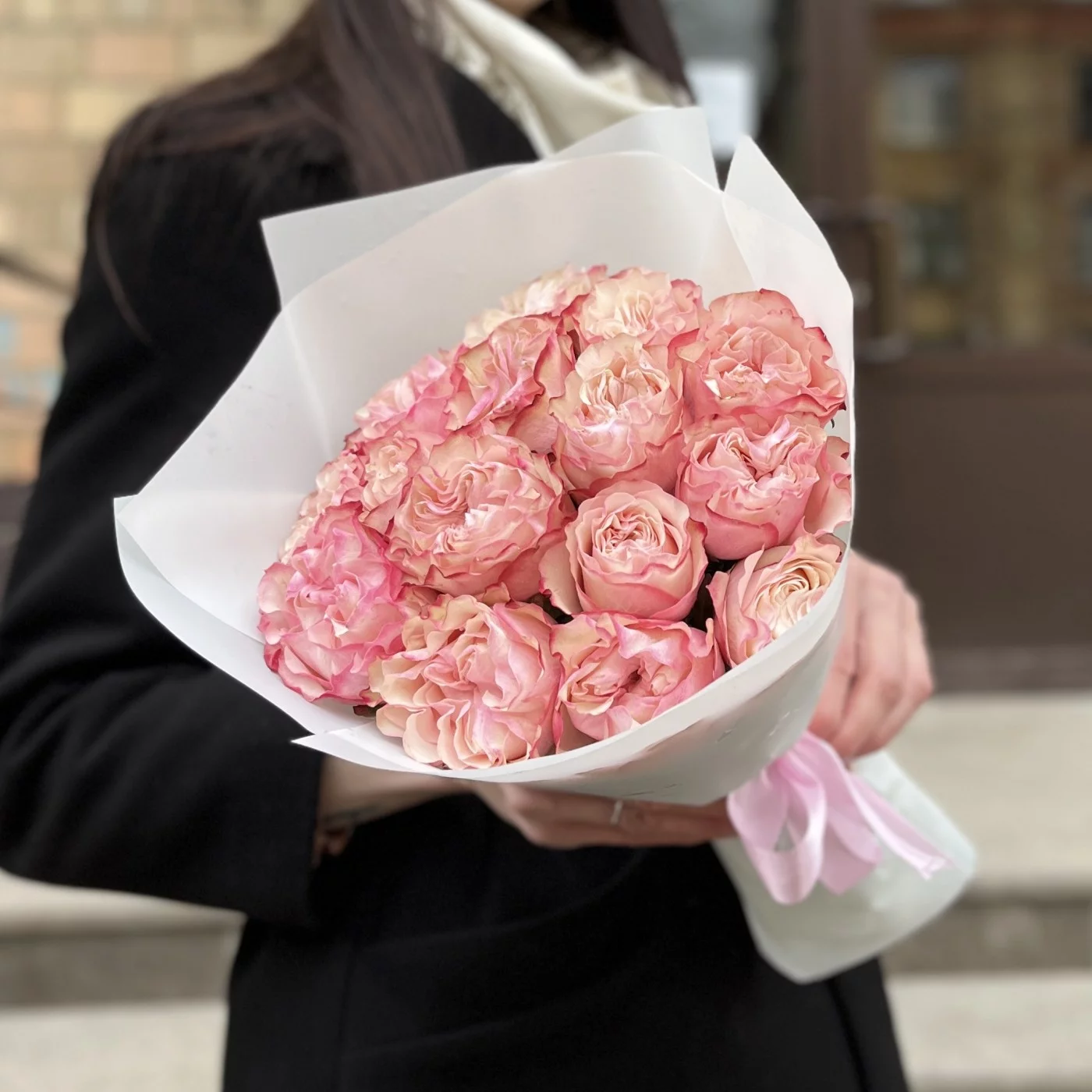 Букет из 15 малиново-белых роз "Кантри Кэнди" — это стильный и выразительный подарок. Эти пионовидные розы с мягкими переходами цвета привносят в атмосферу нежность и утонченность. Идеально подходит для романтических моментов и особых событий, подчеркивая ваши искренние чувства.