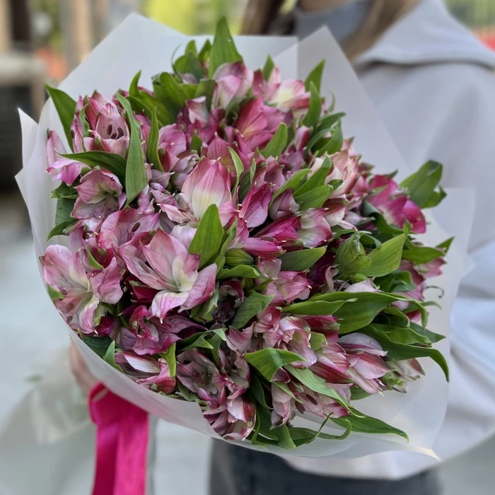 Очаровательный букет из 15 малиновых альстромерий — яркое выражение страсти и искренних чувств. Эти насыщенные цветы создают атмосферу тепла и радости, делая любой праздник особенным. Идеальный подарок для тех, кто ценит яркость и эмоциональную выразительность в каждом цветке.