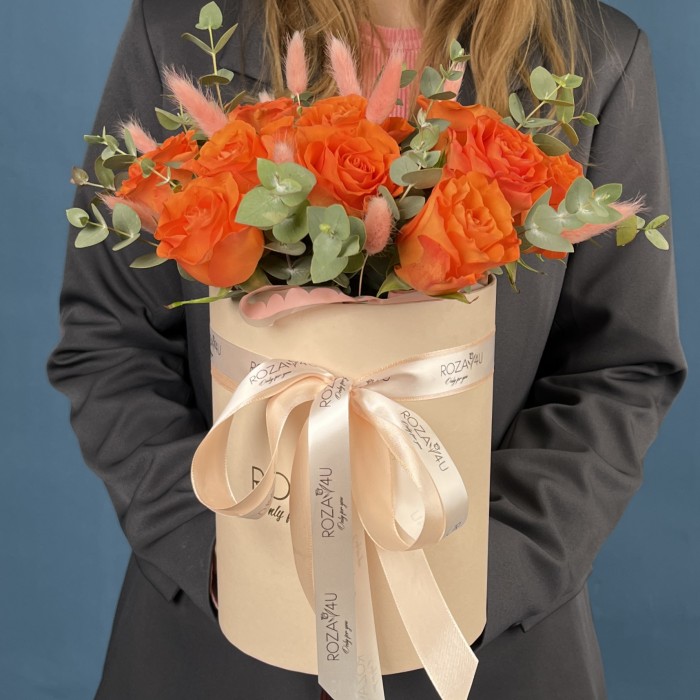 Букет из 15 оранжевых роз Копакабана с лагурусом в коробке станет замечательным подарком. Он создаст атмосферу радости и позитива, подчеркивая ваши искренние чувства и заботу.